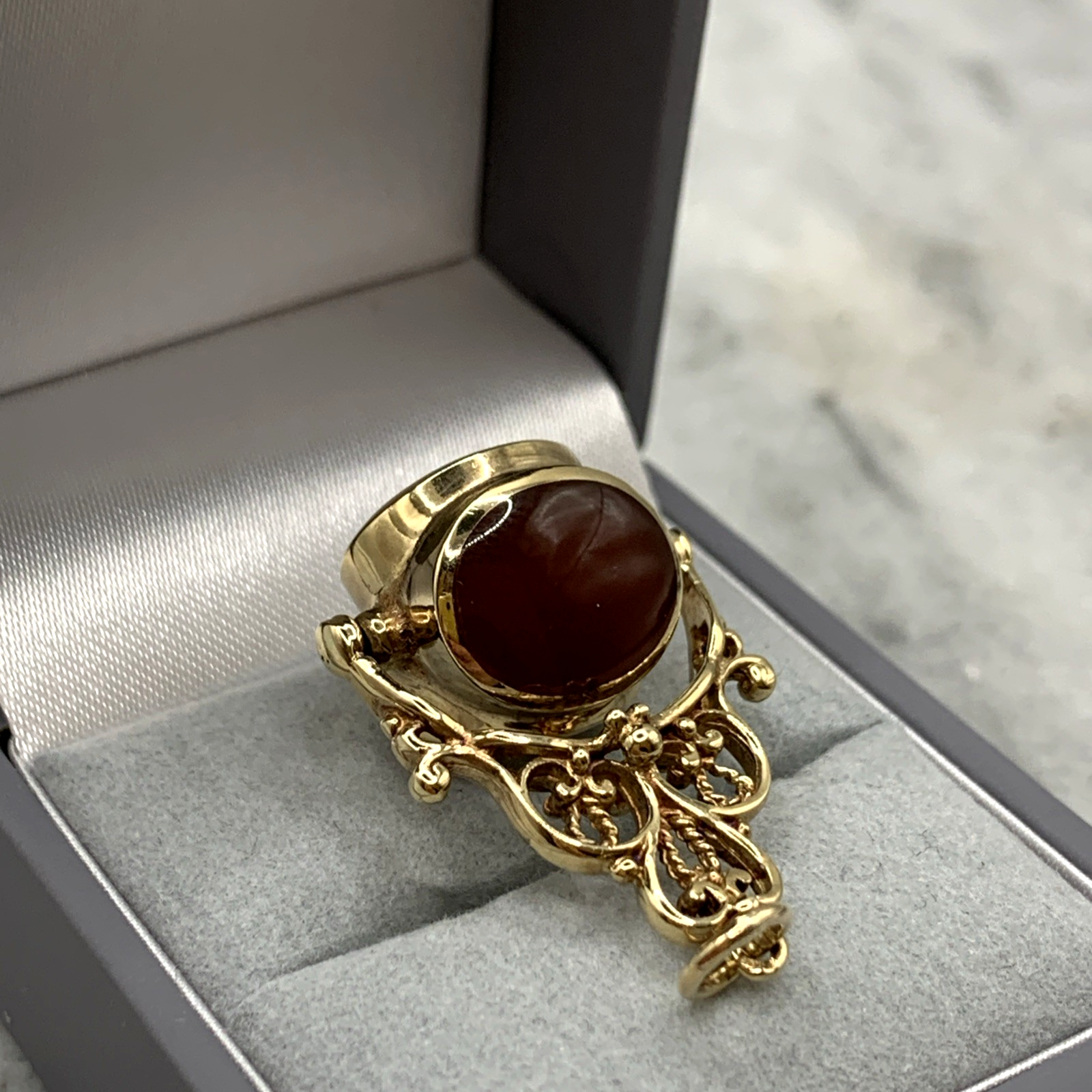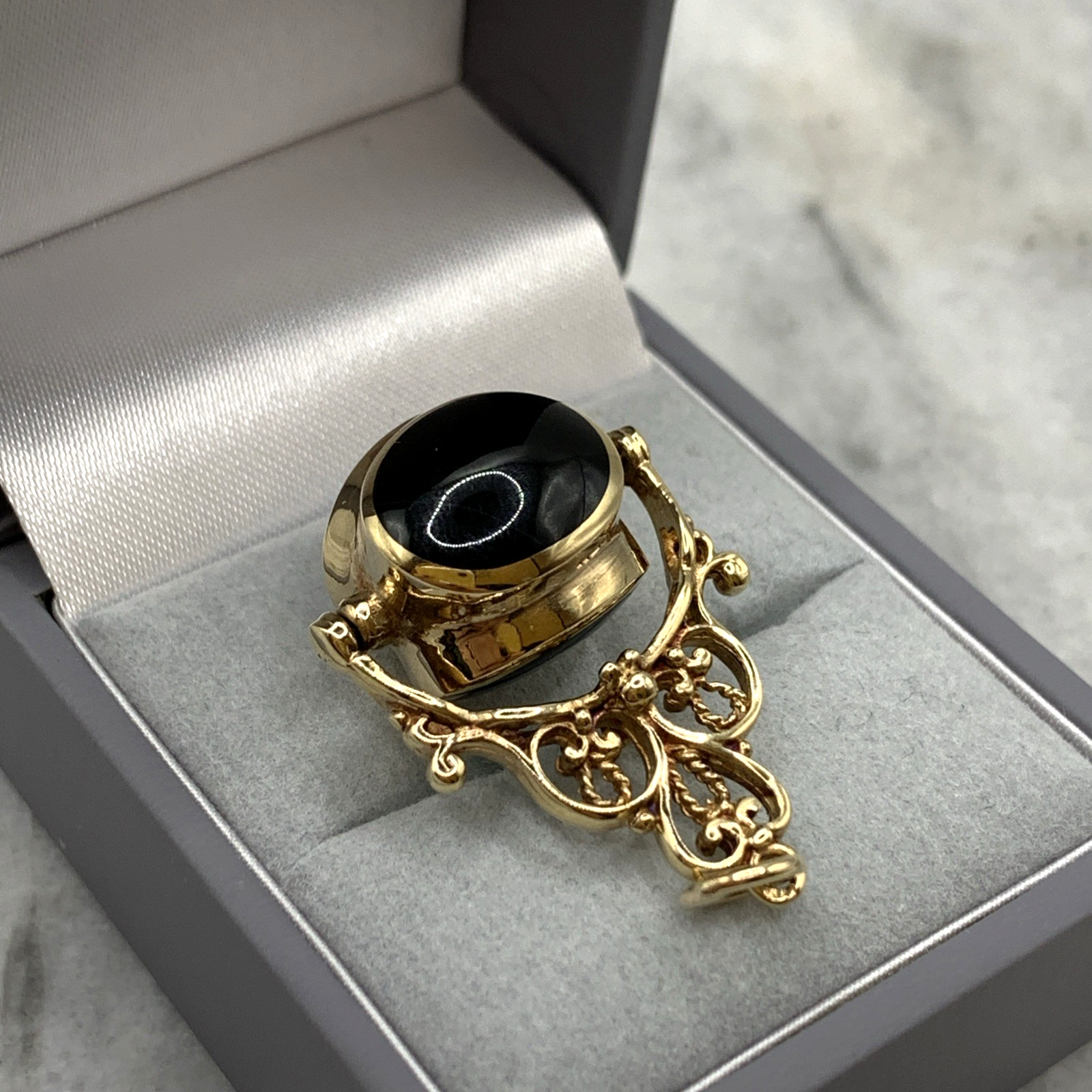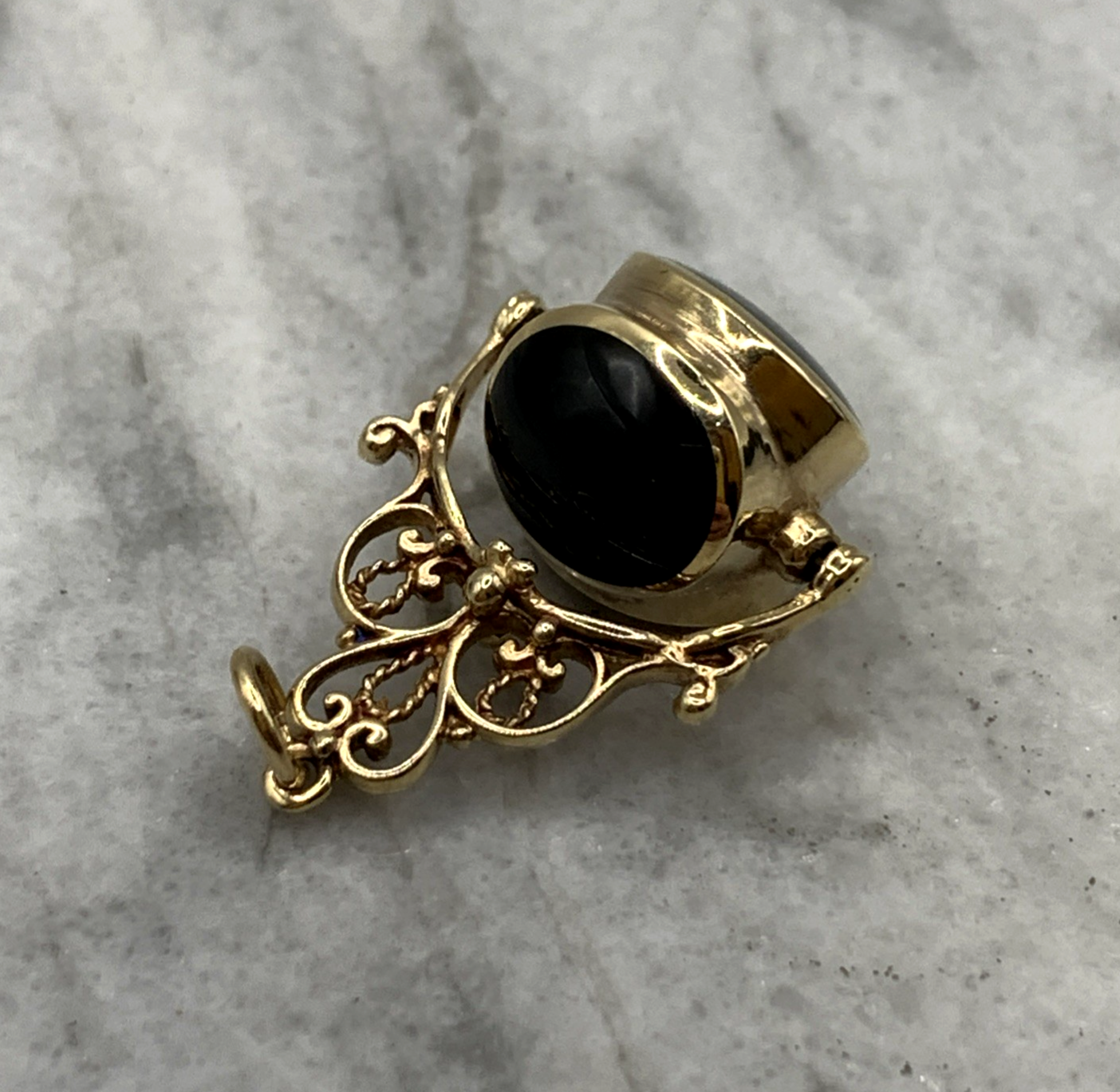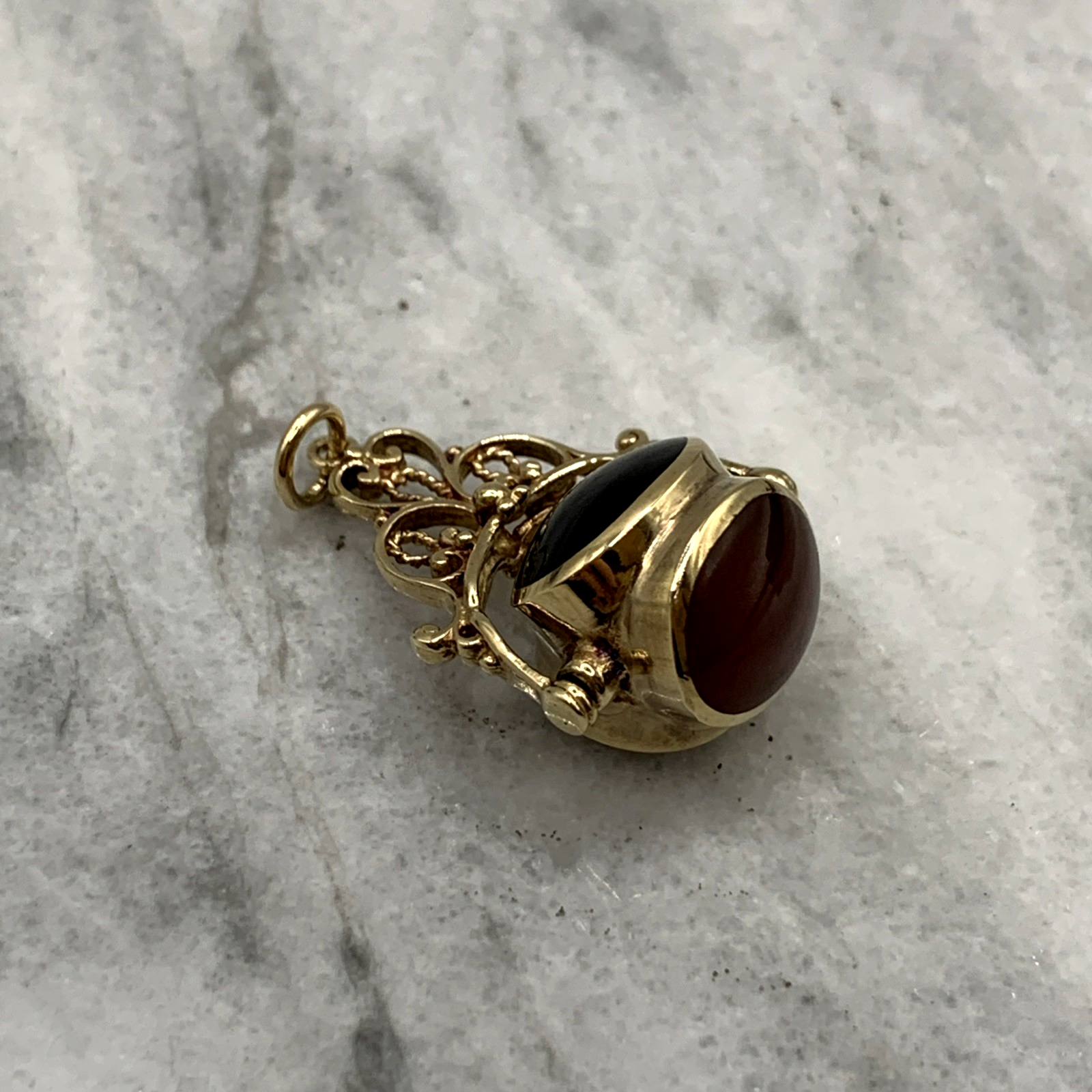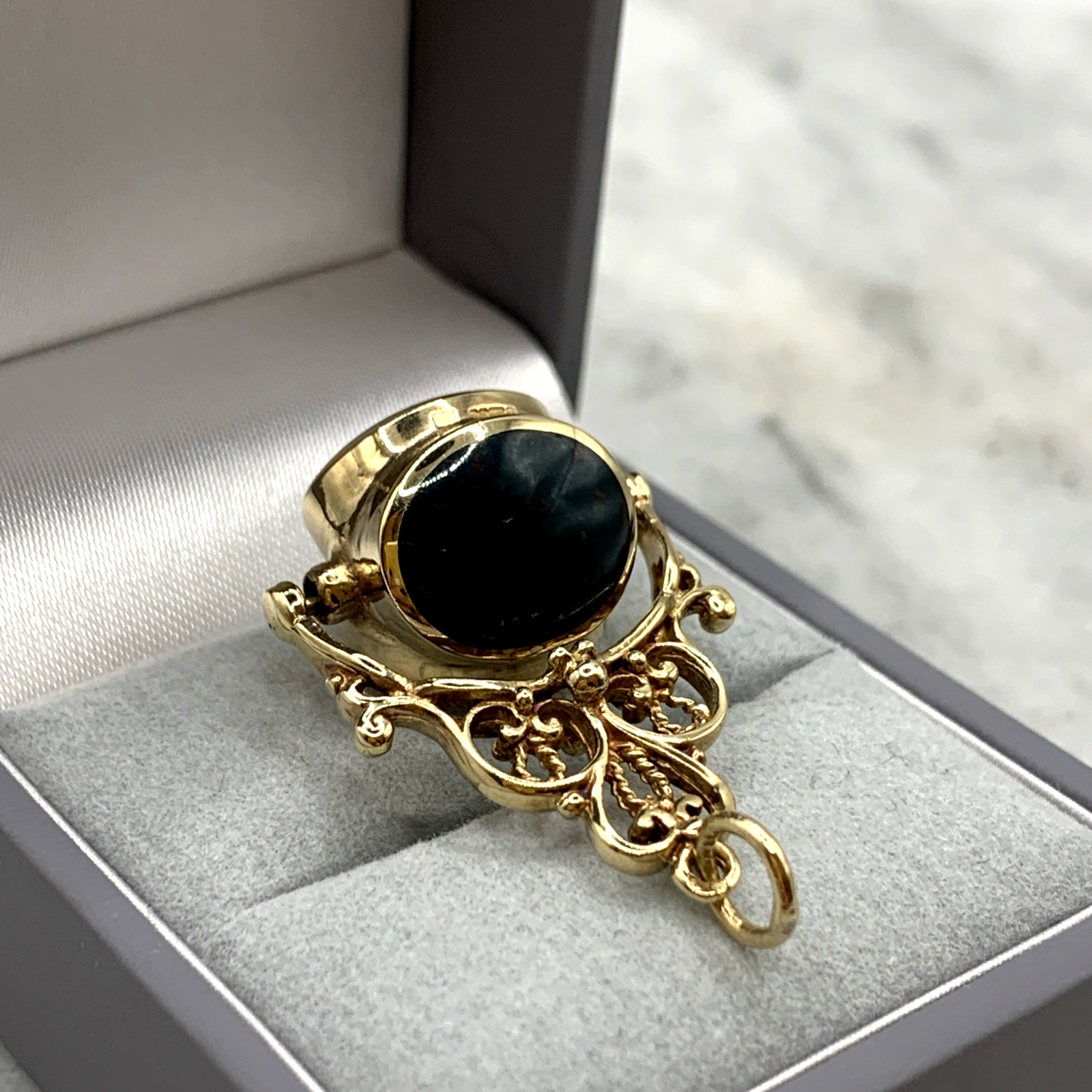 9 ct Gold Bloodstone Onyx & Carnelian Swivel Fob Pendant 9k 375 Yellow Gold