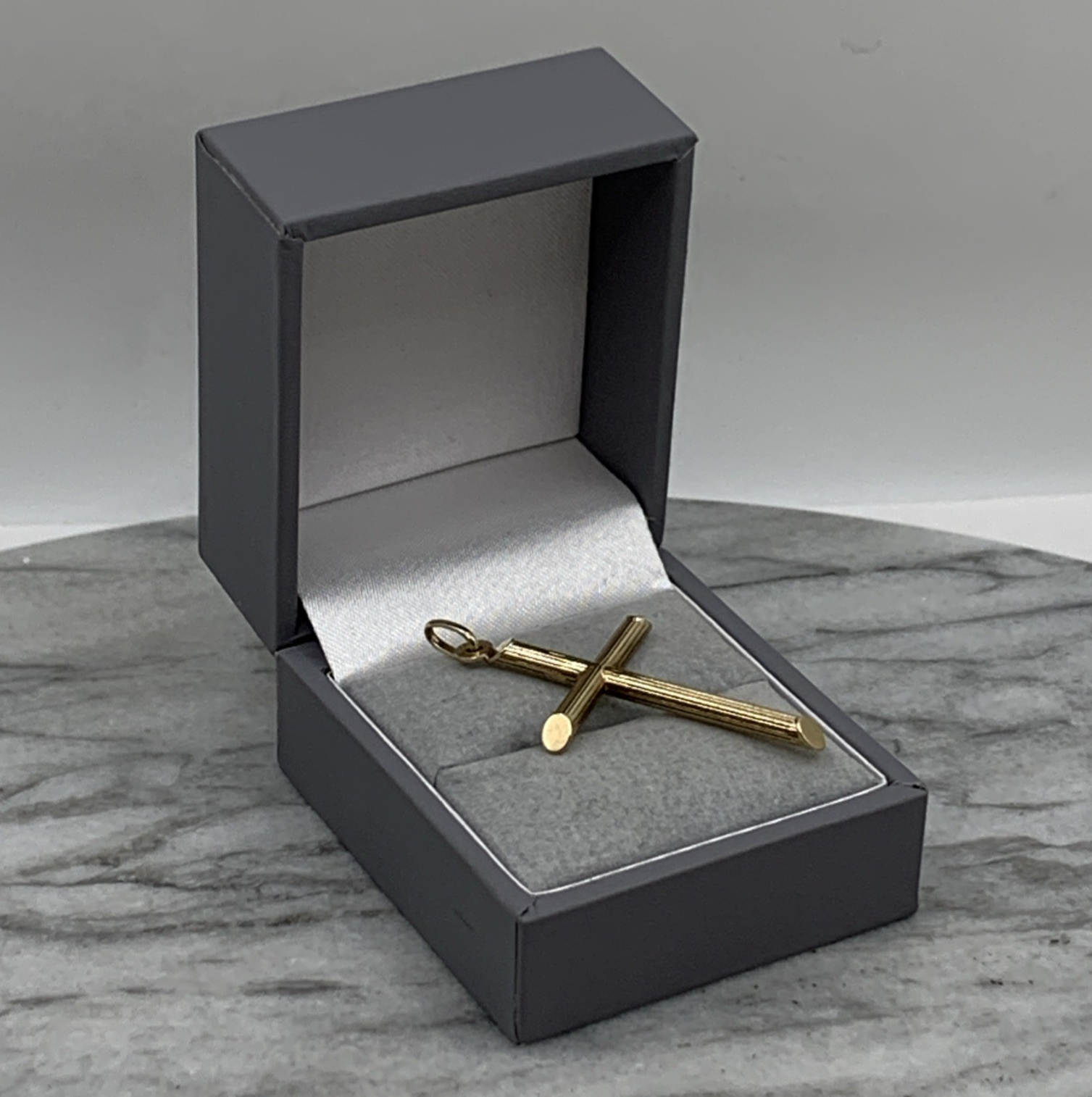 A timeless gold crucifix pendant.