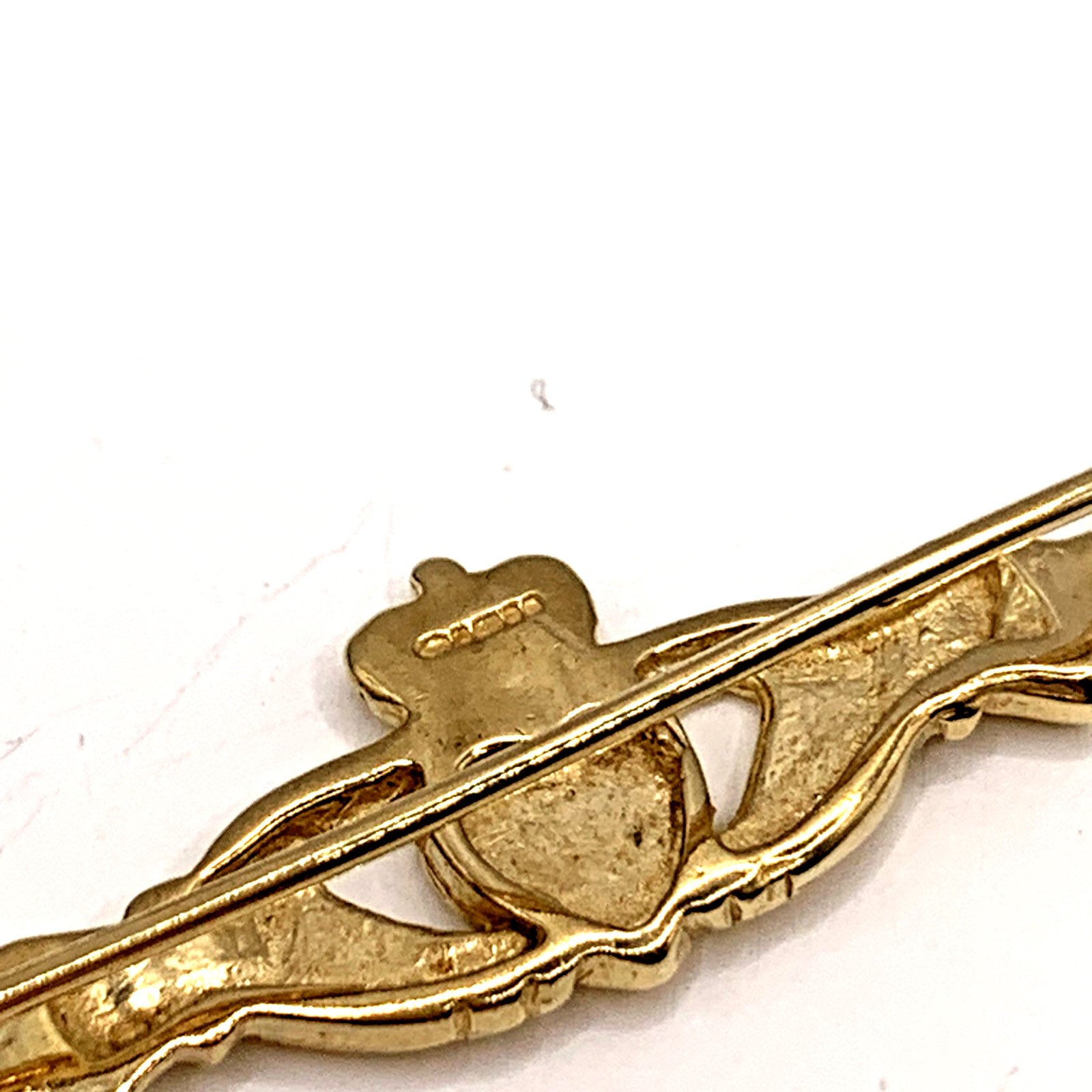 9 ct Gold Diamond Irish Claddagh Heart Brooch Pendant 9k 375 Yellow Gold