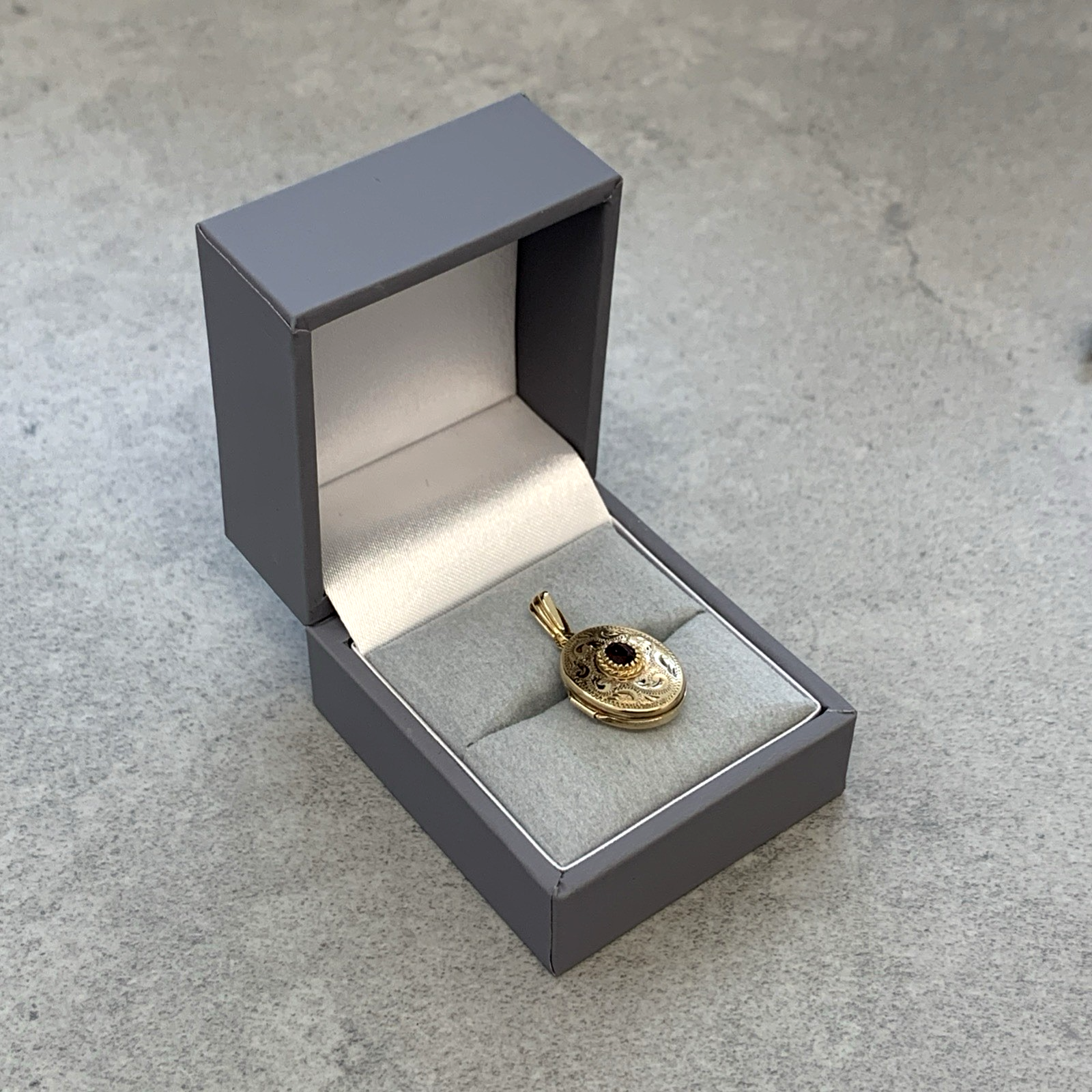 9 ct Gold Garnet Patterned Locket Pendant 9k 375 Yellow Gold