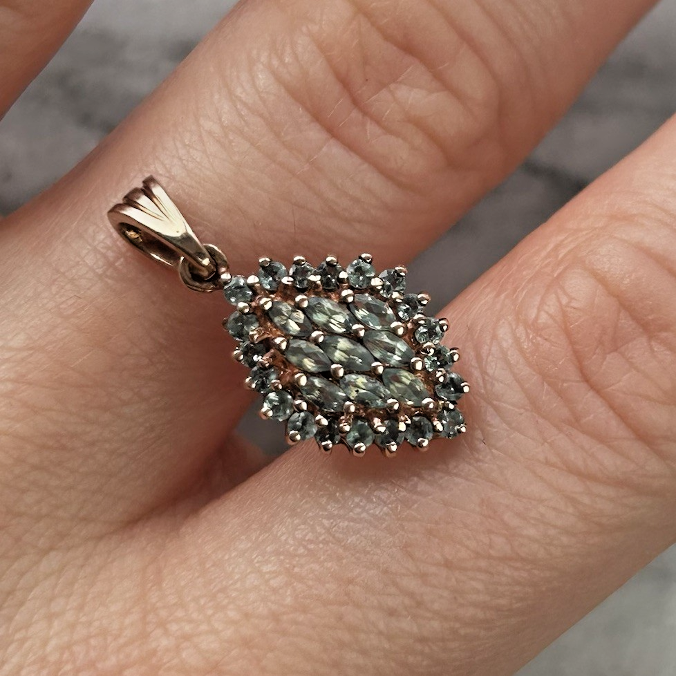 9 ct Gold Green Spinel Marquise Pendant 9ct 9k Rose Gold