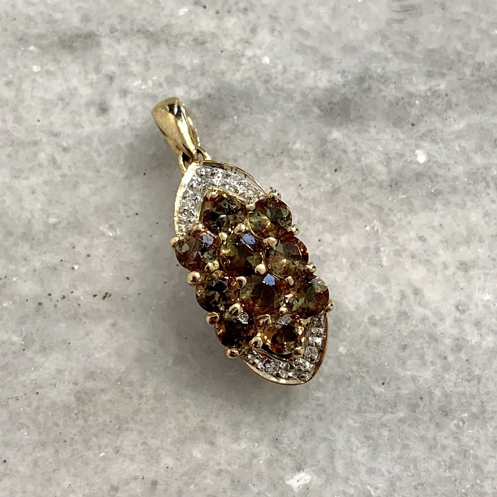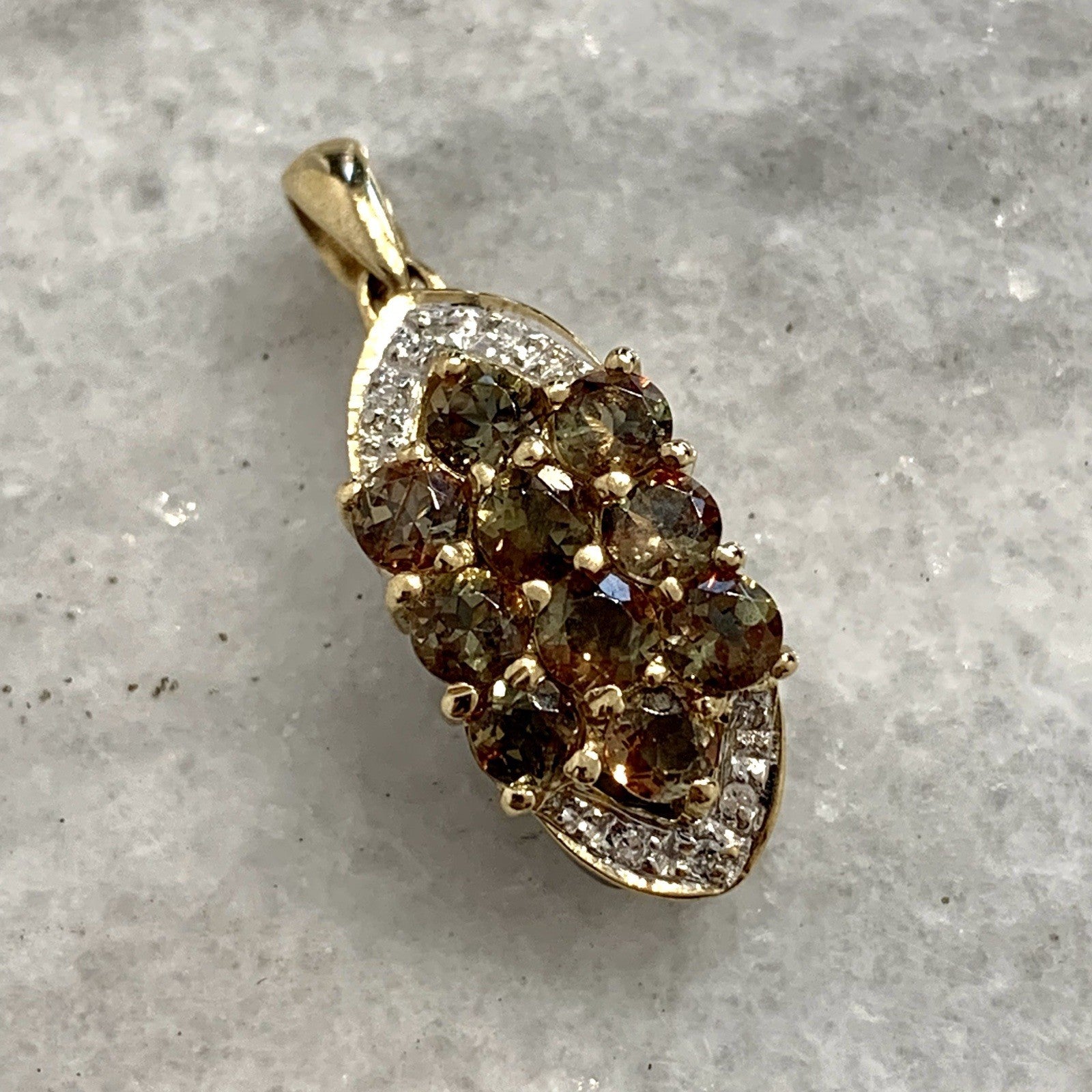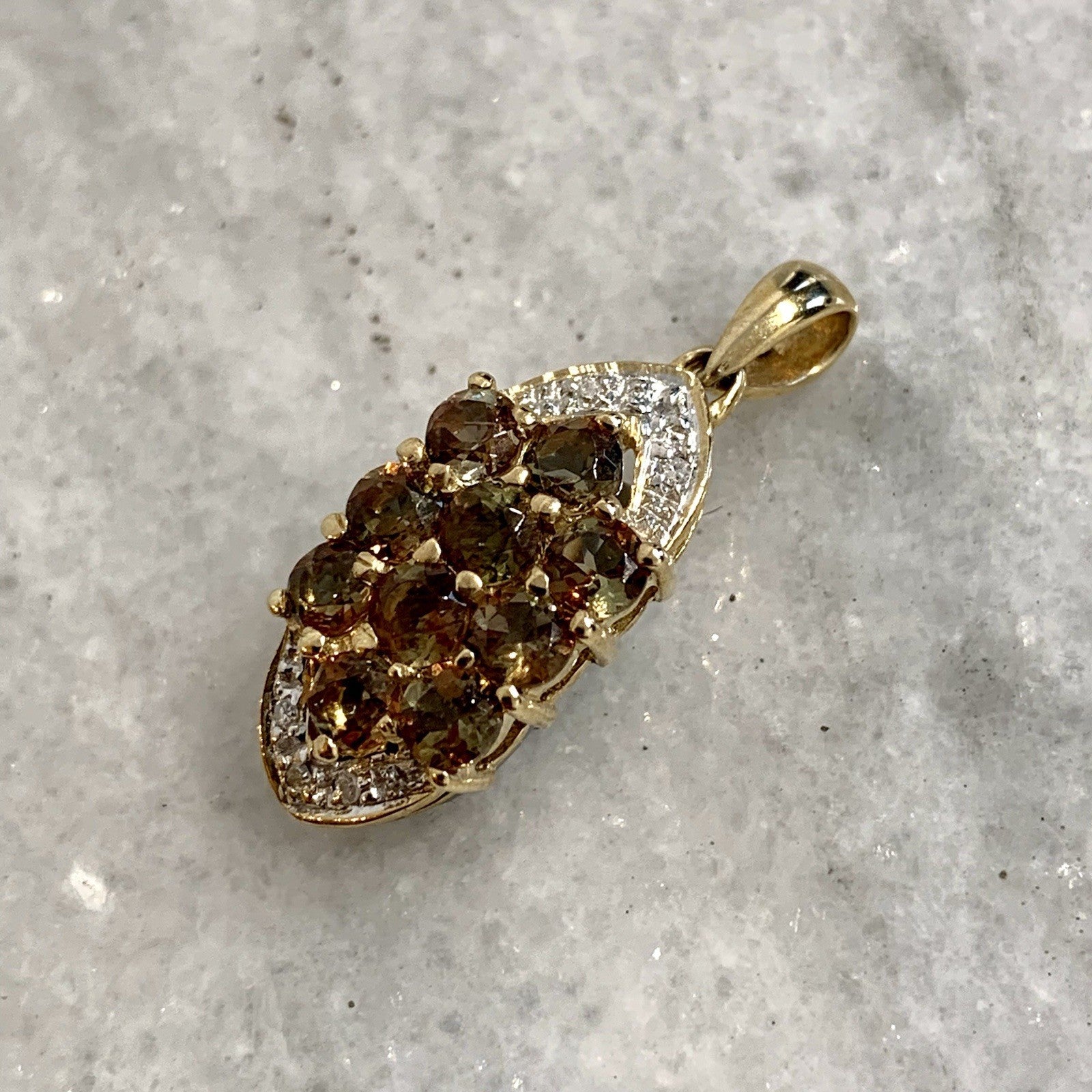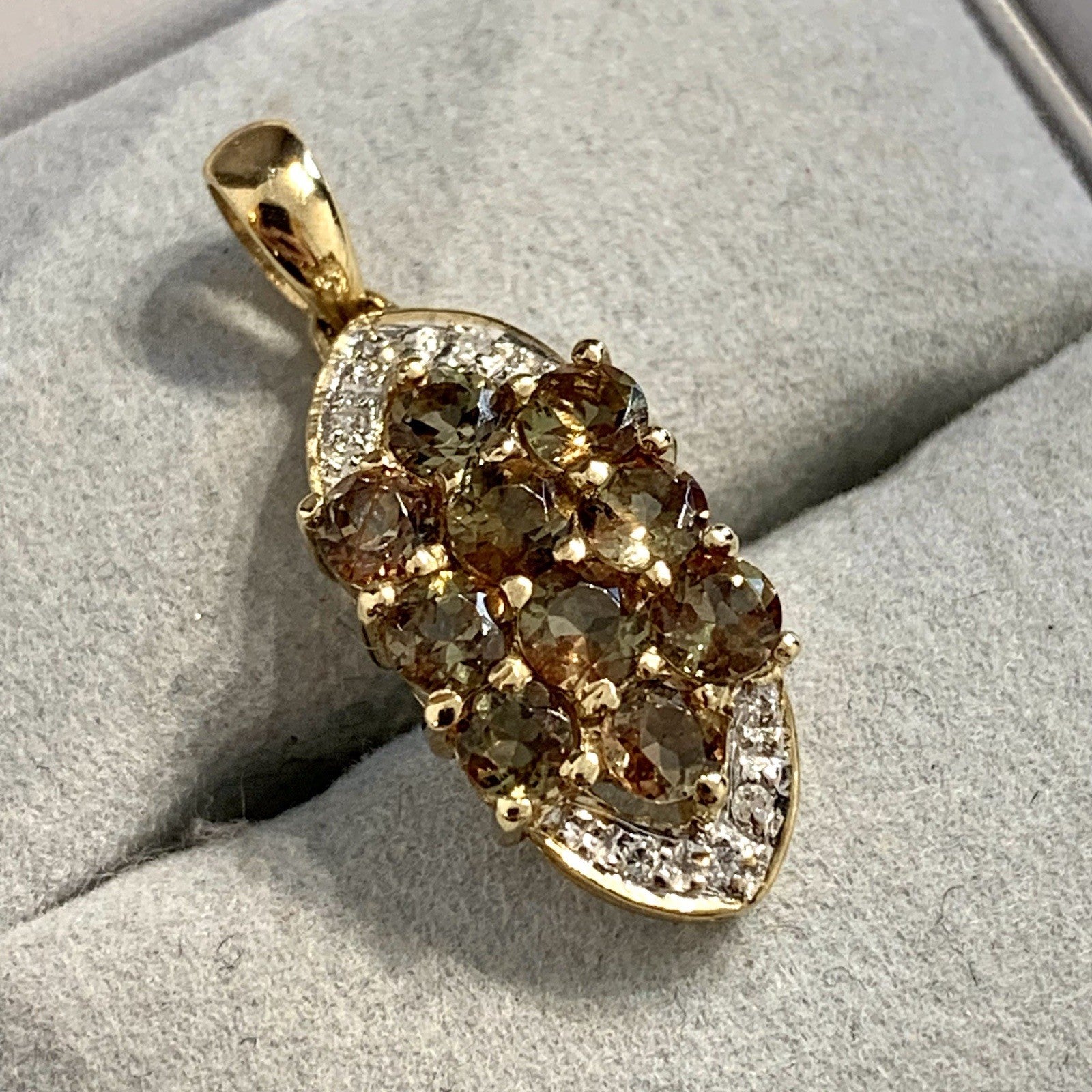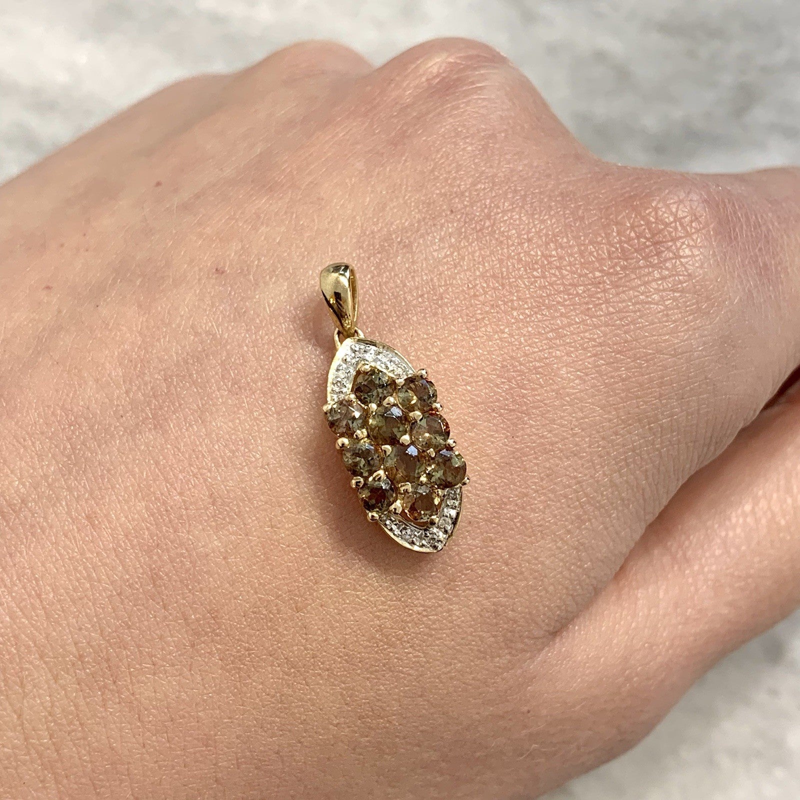 9 ct Gold Pendant Andalusite & Diamond Cluster 375 Yellow Gold