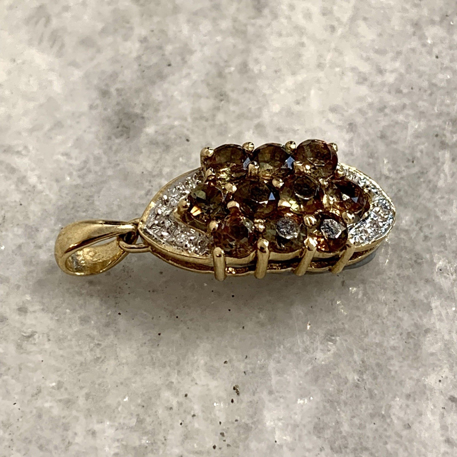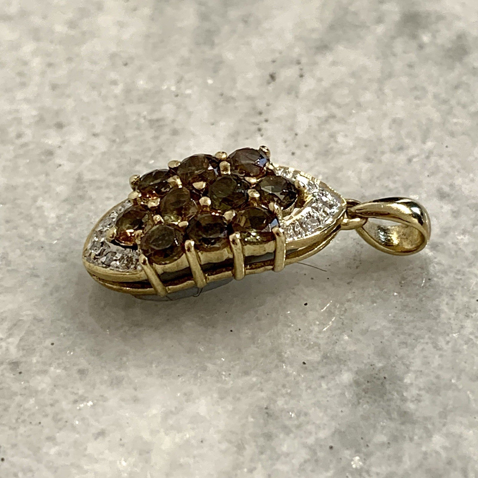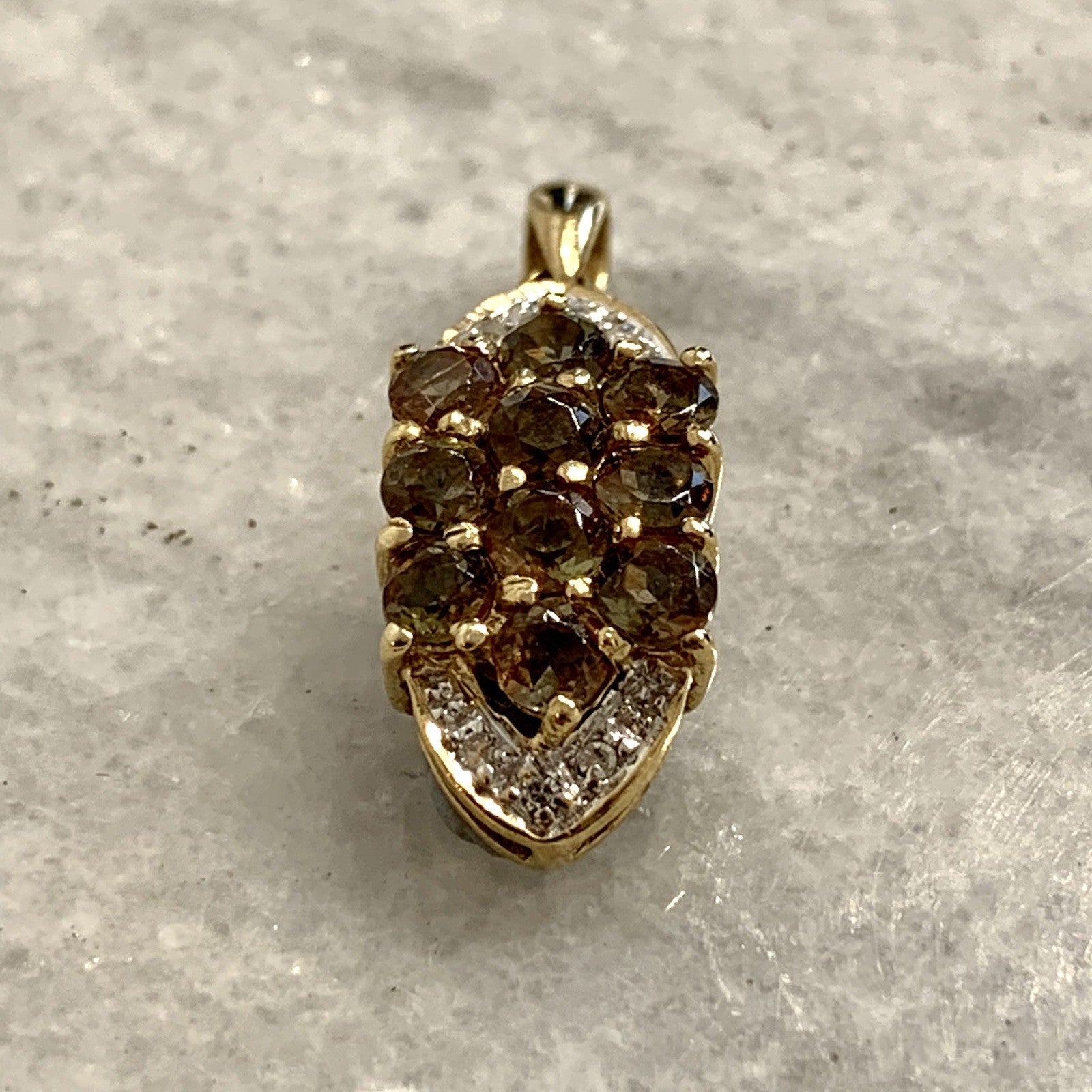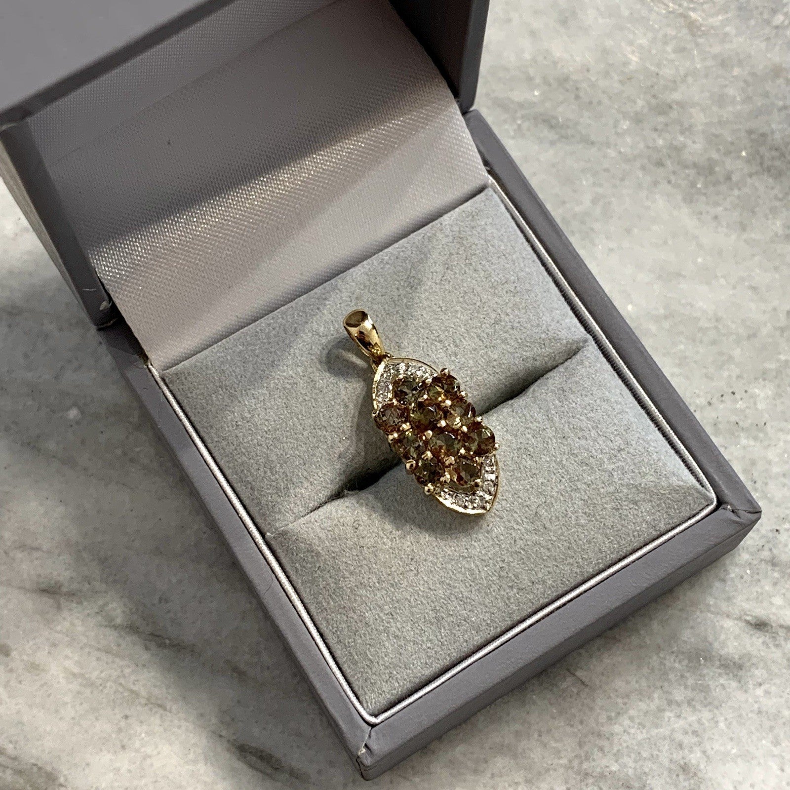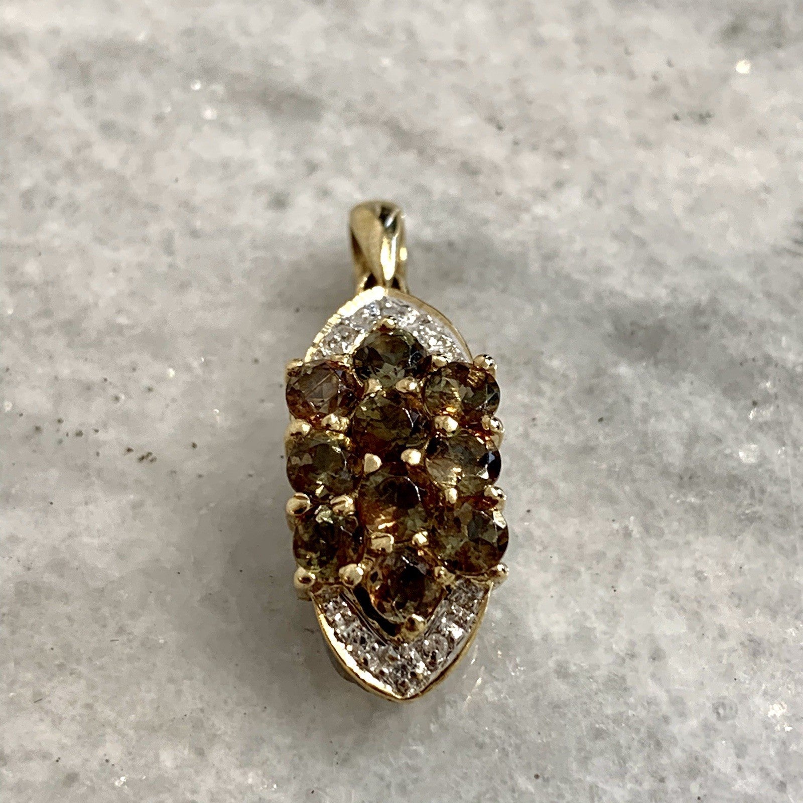 9 ct Gold Pendant Andalusite & Diamond Cluster 375 Yellow Gold
