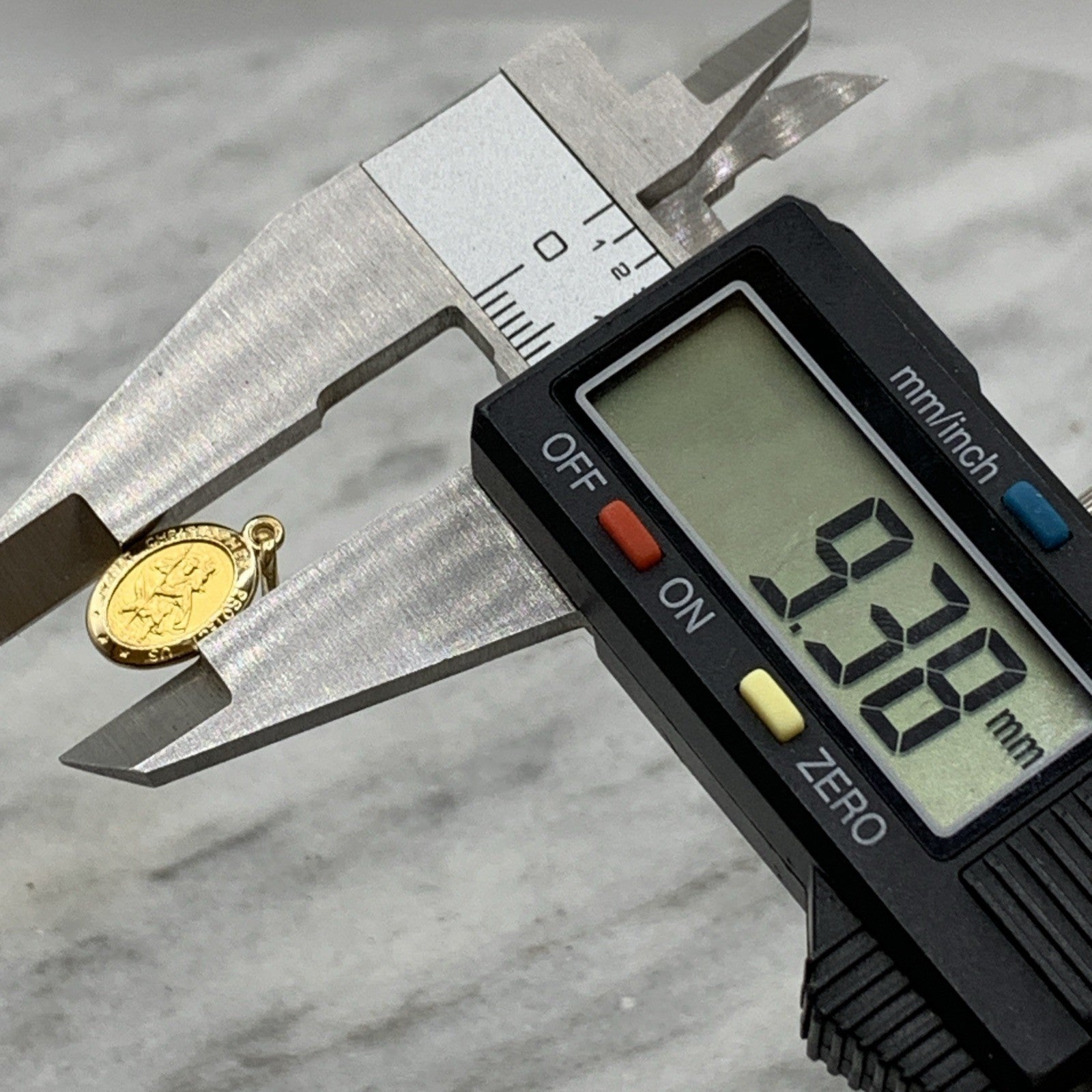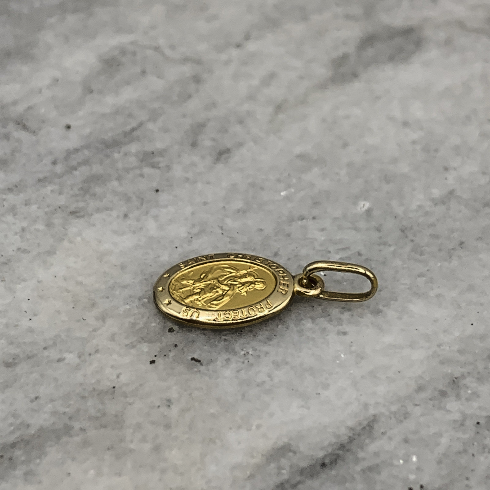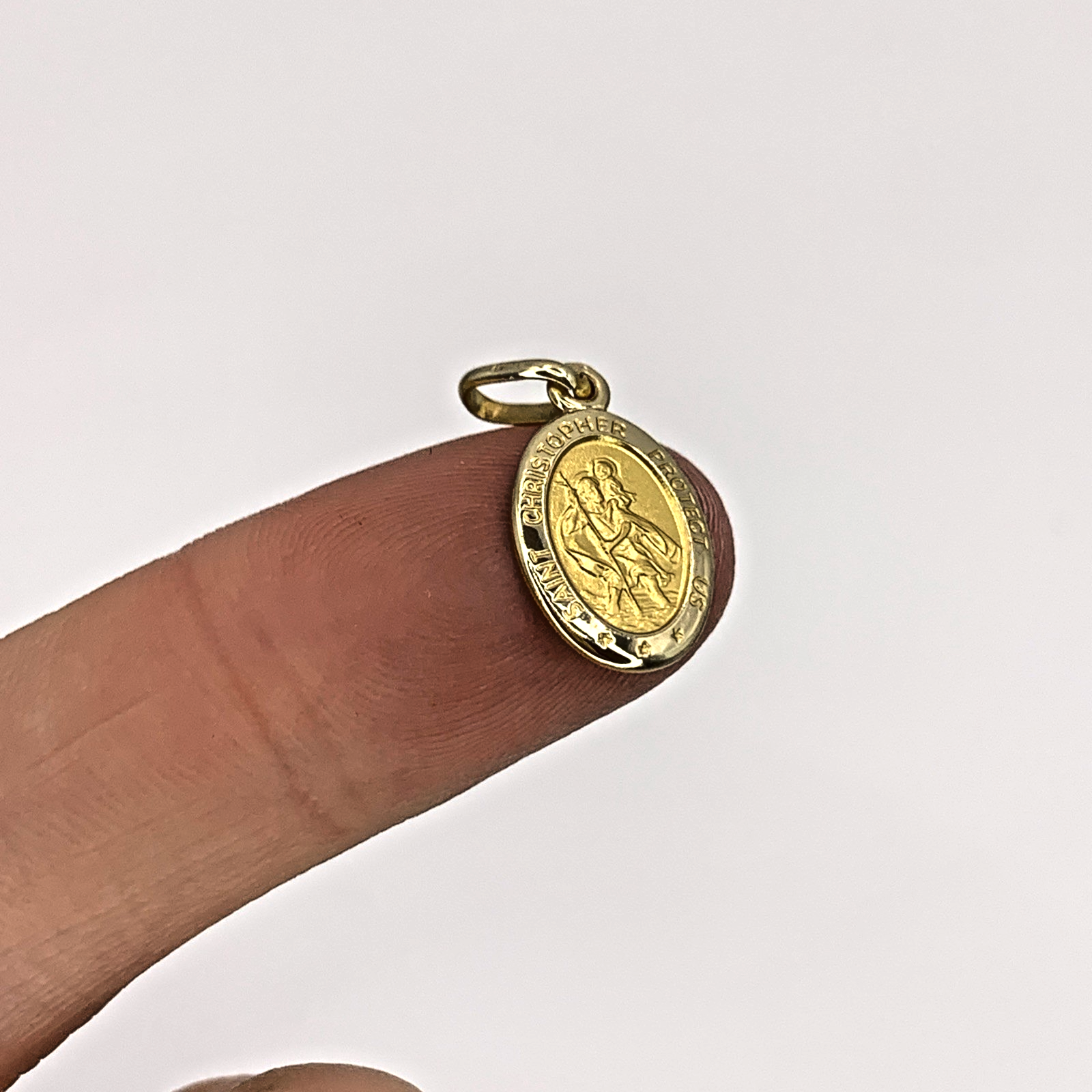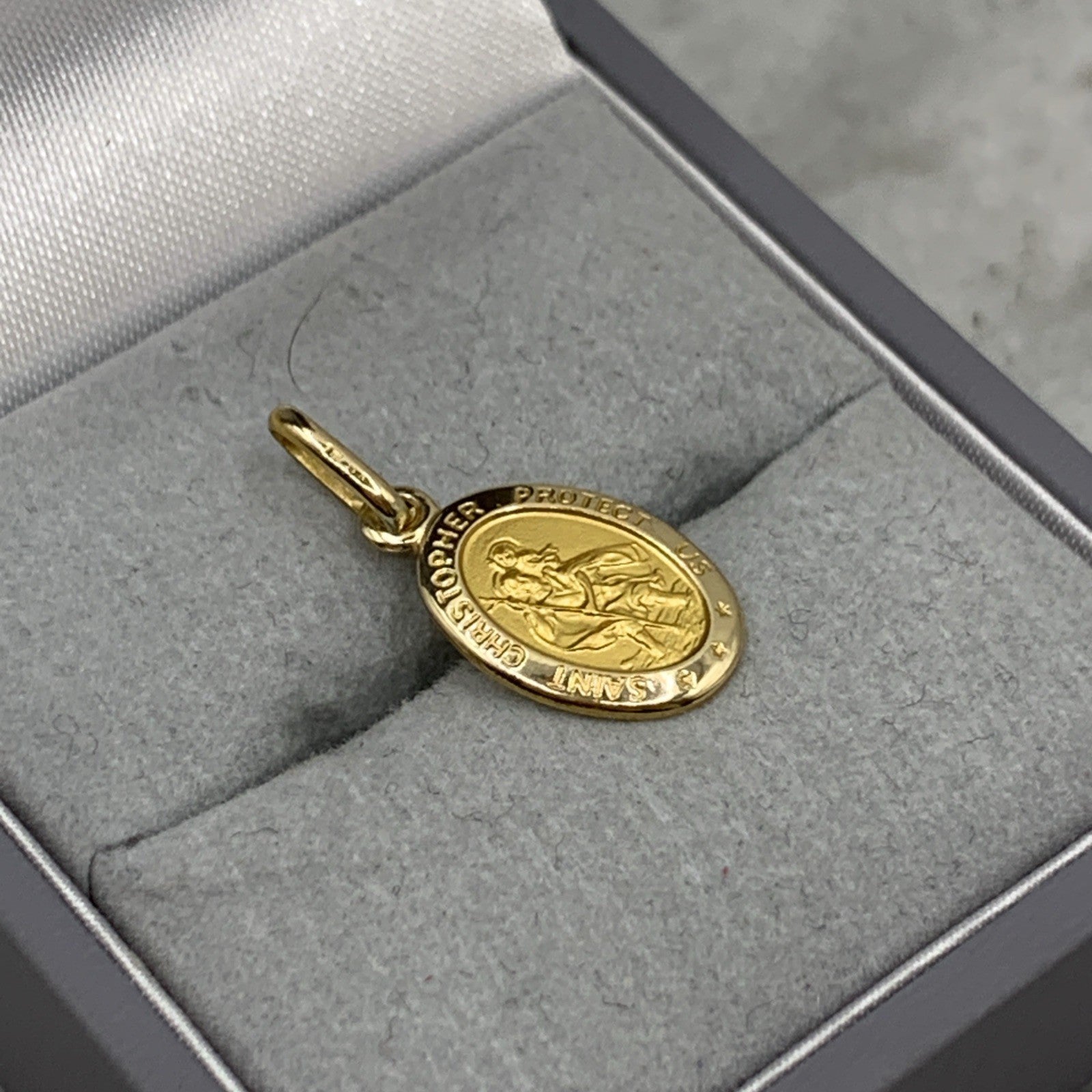 A timeless petite St Christopher oval shaped coin pendant. Perfect for charm bracelets or a dainty chain necklace.