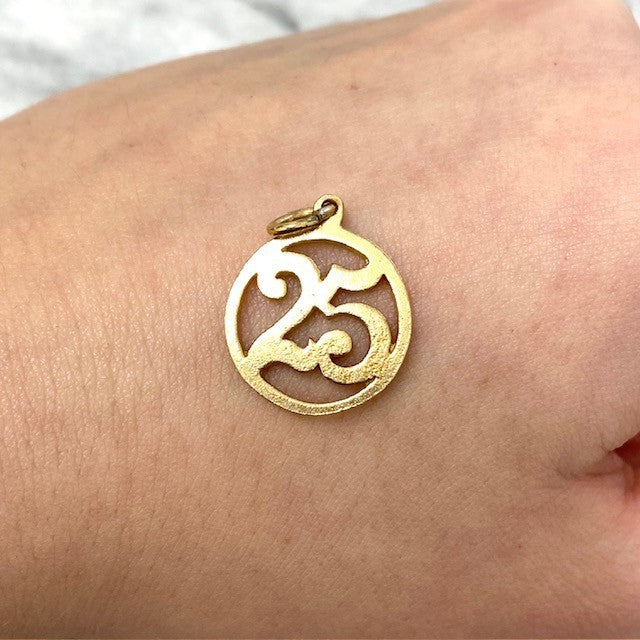 solid 9ct yellow gold "25" pendant