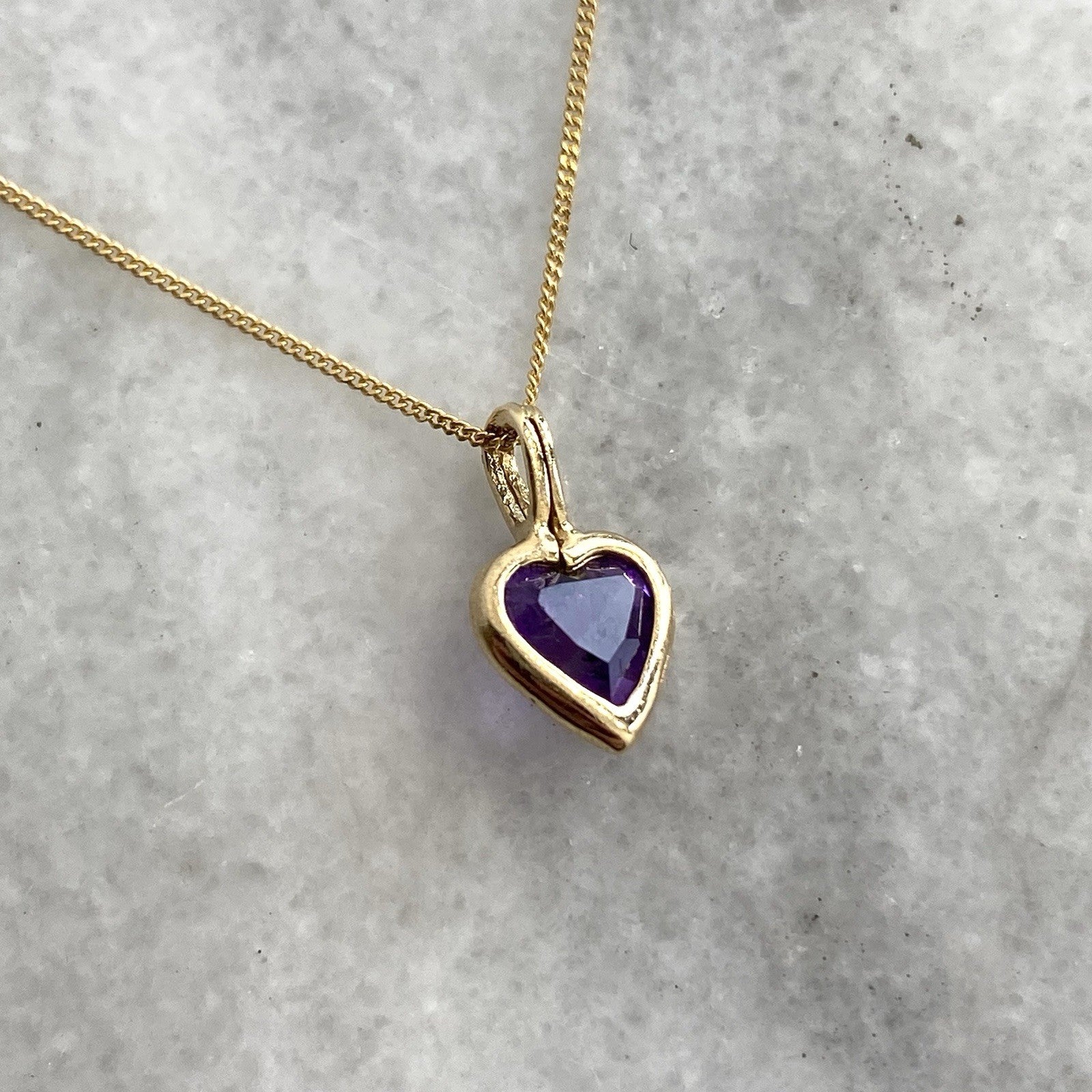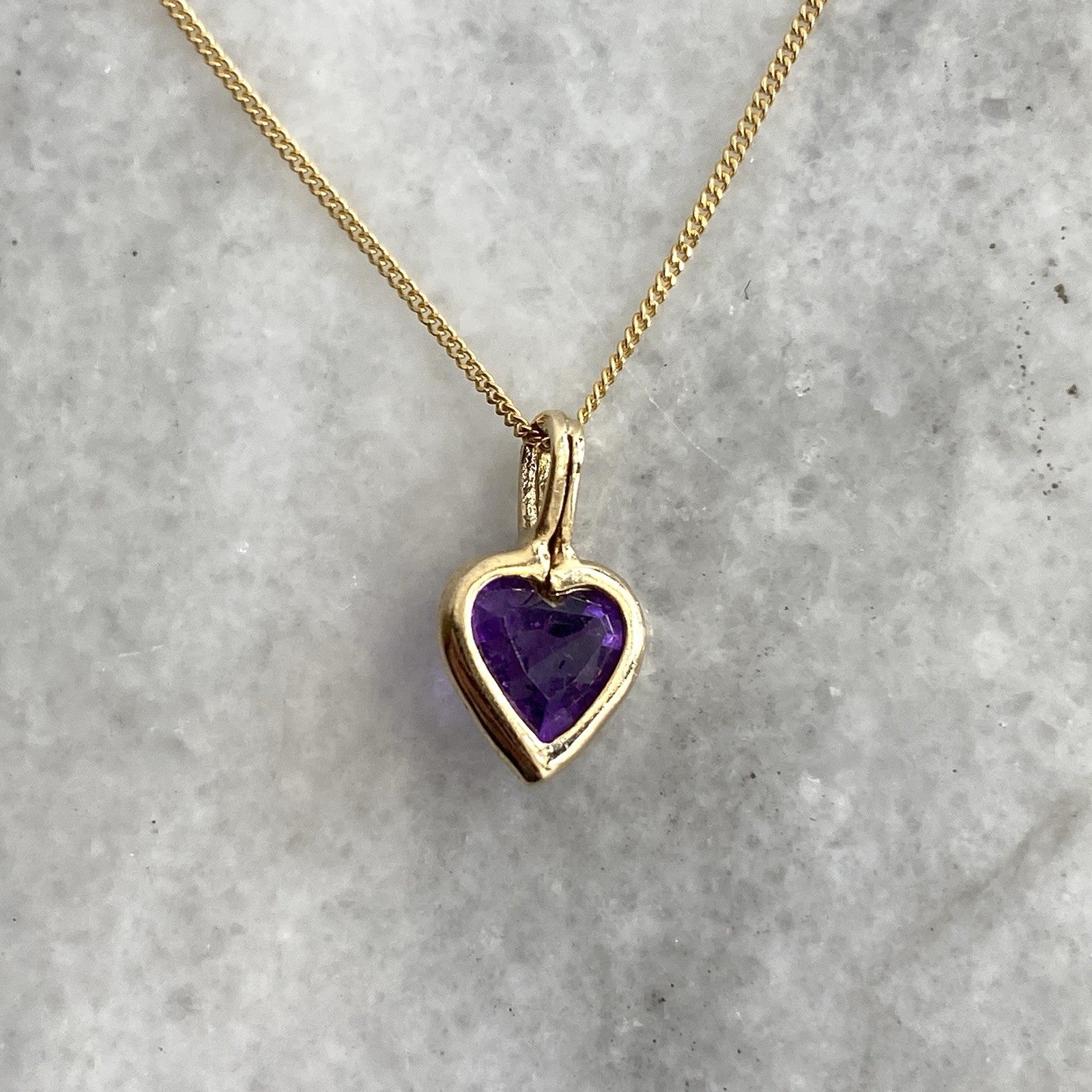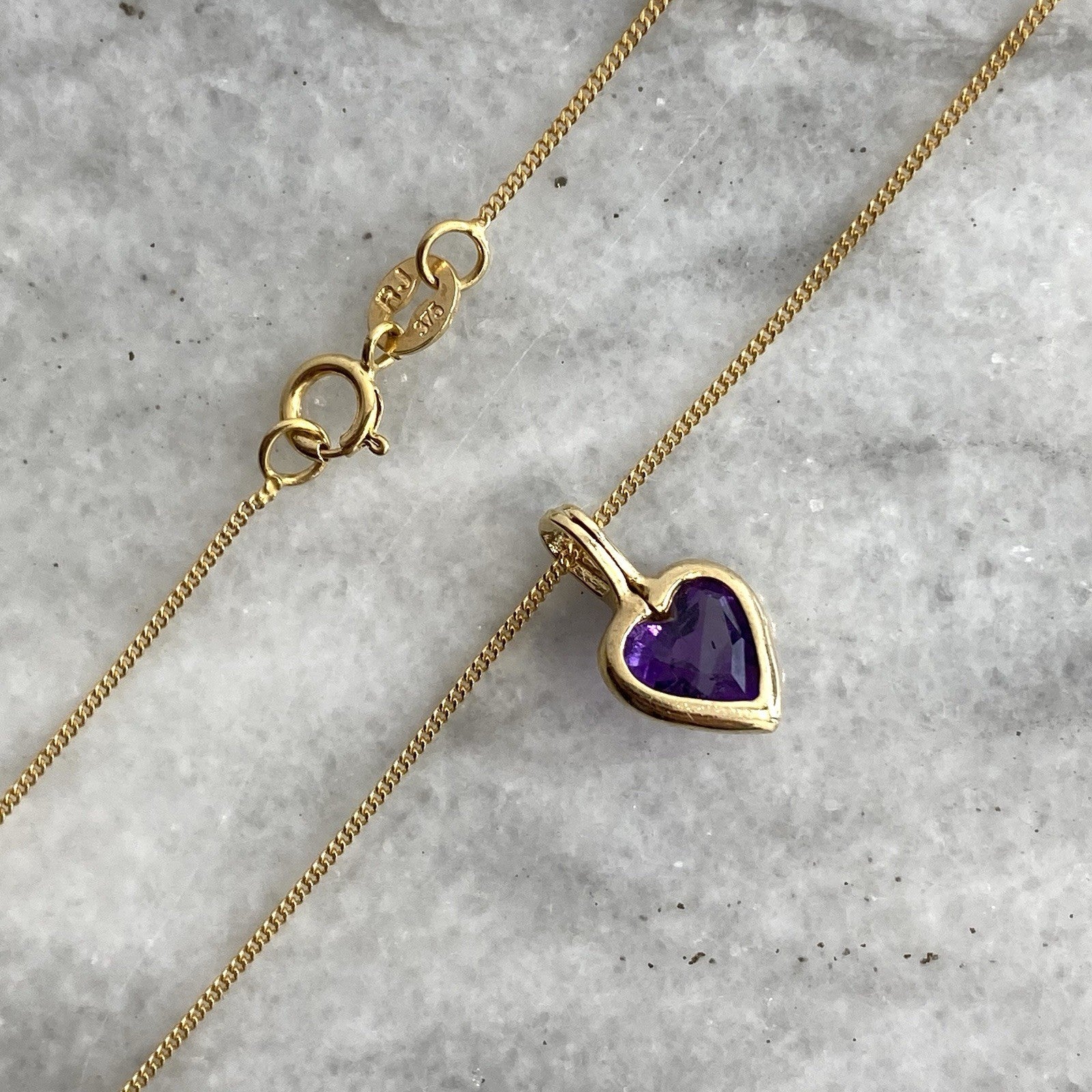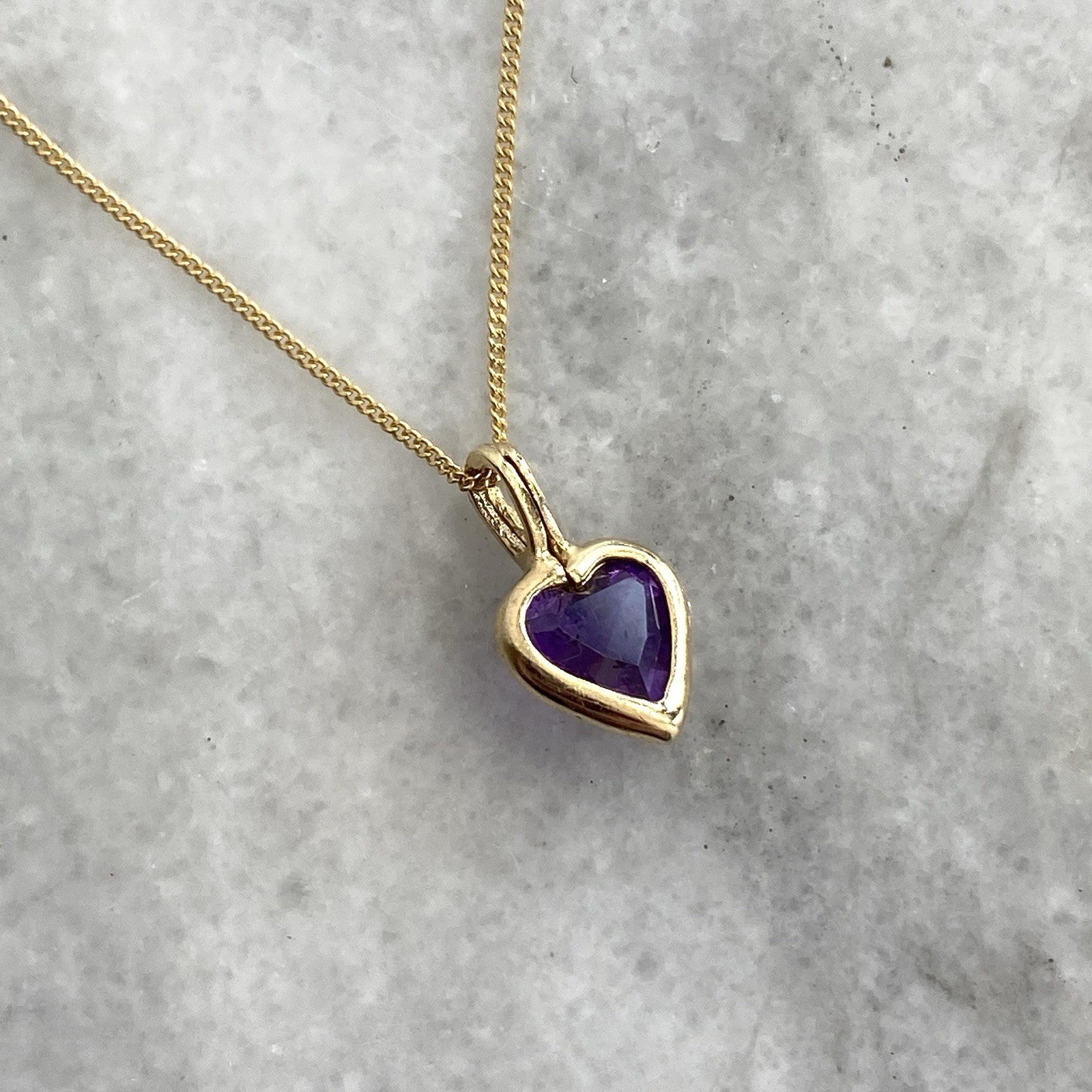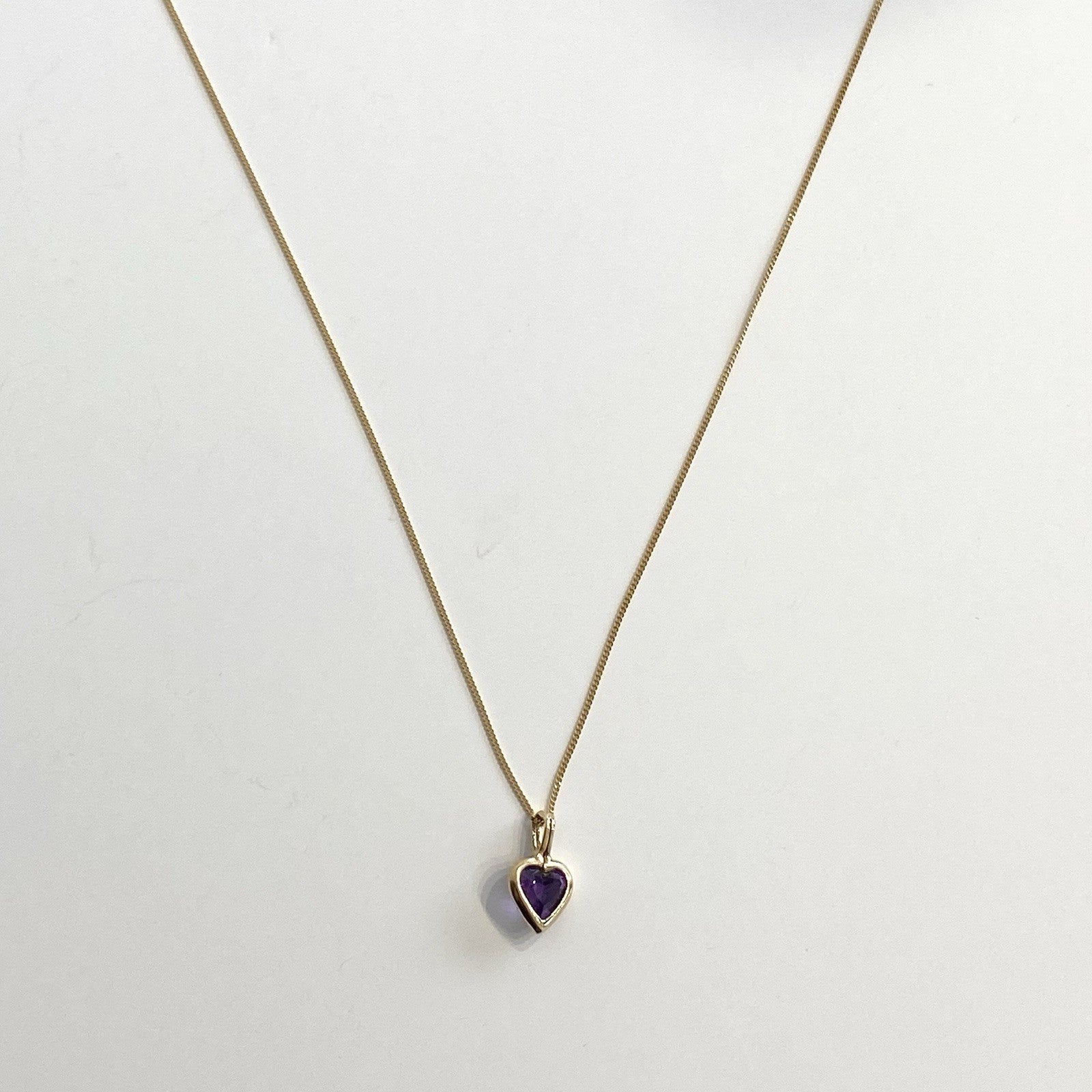 Amethyst Heart Necklace 9 ct Gold Pendant & Curb Chain 375 Yellow Gold - 18"