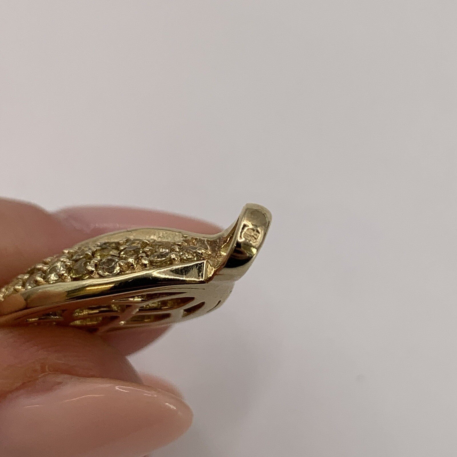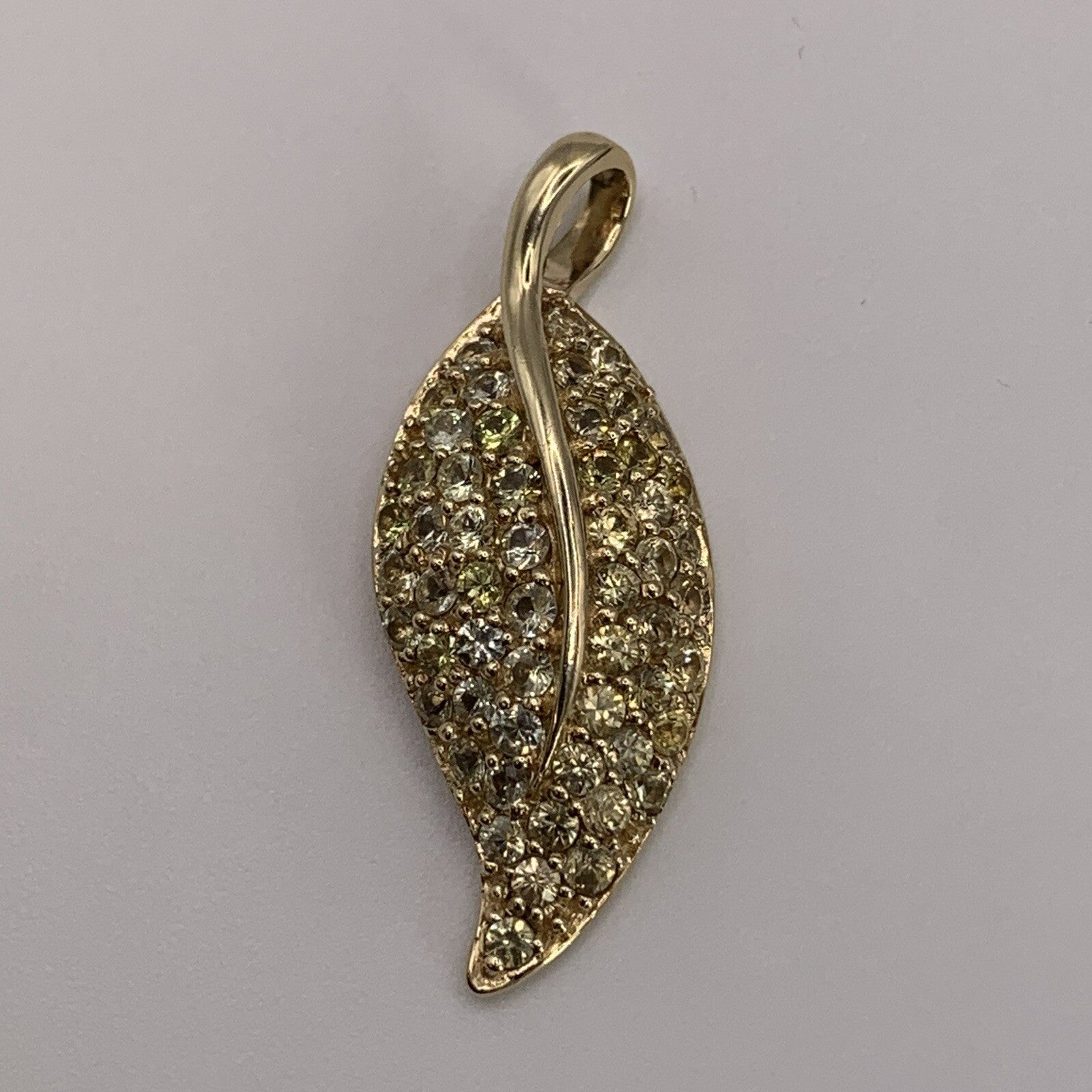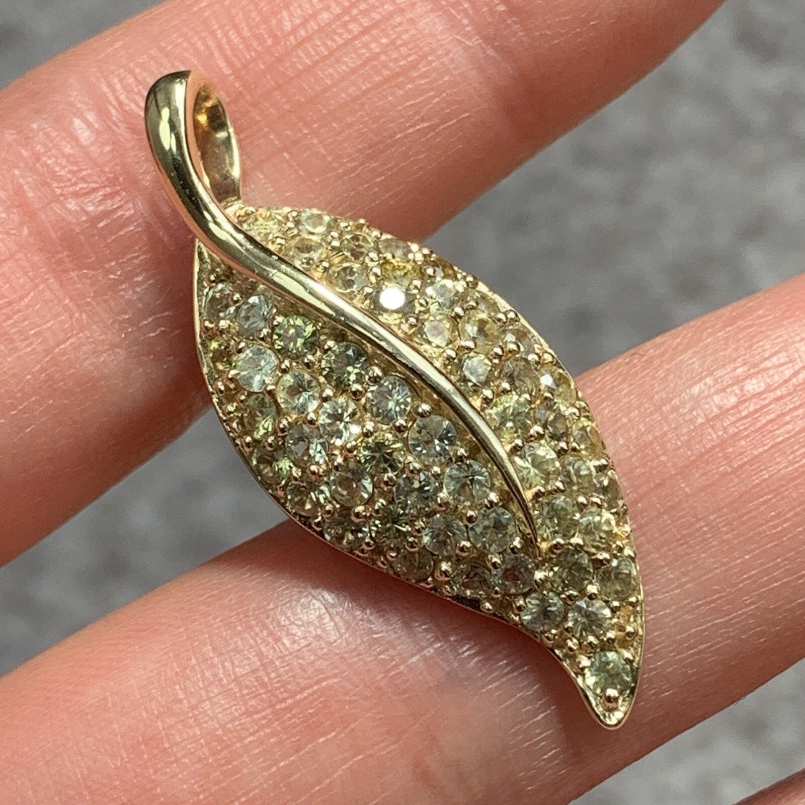 Beryl Leaf Pave Set Multi Tonal Gemstone Pendant 9ct 9k Yellow Gold