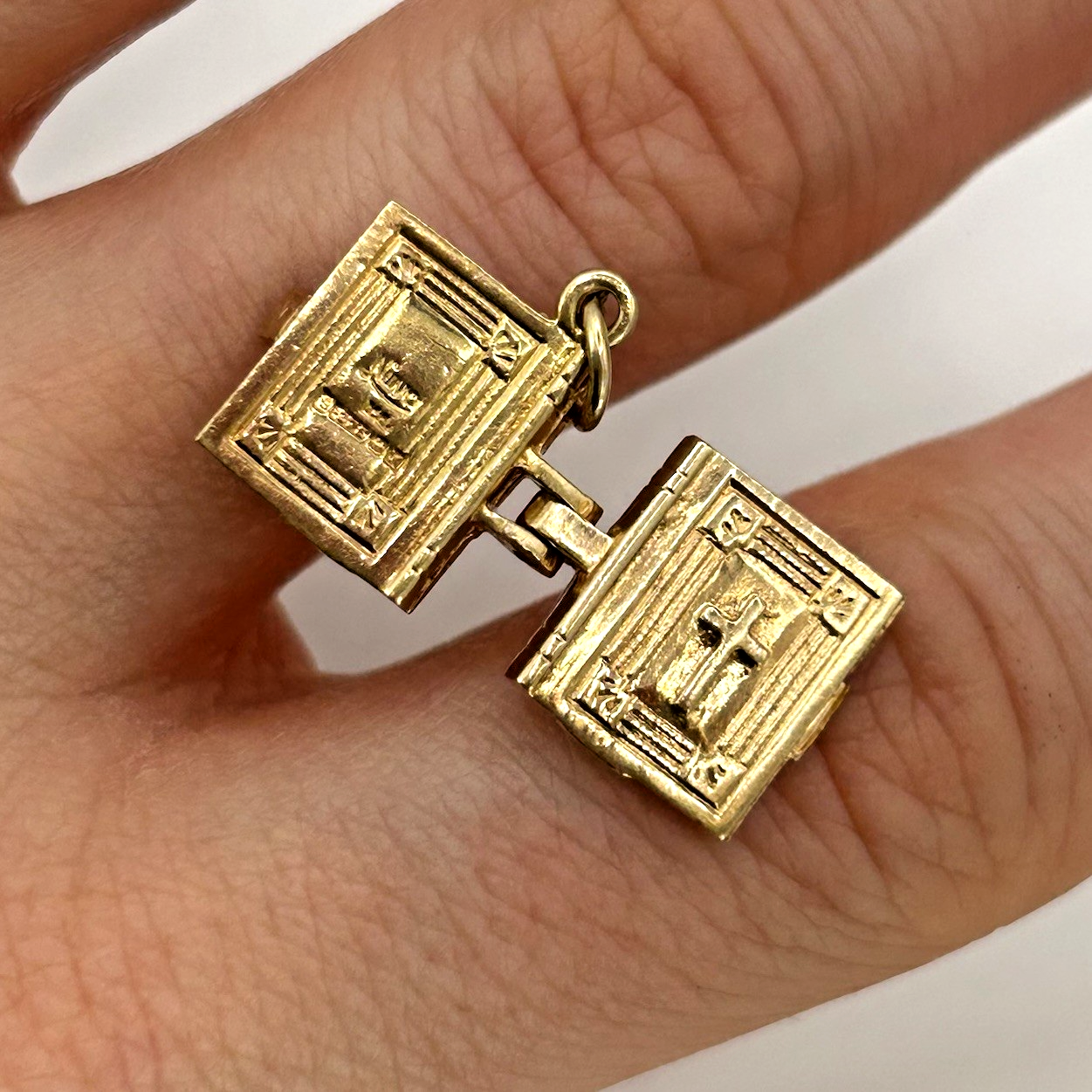 A lovely hinged Bible book charm, with engraved detailing on both sides.