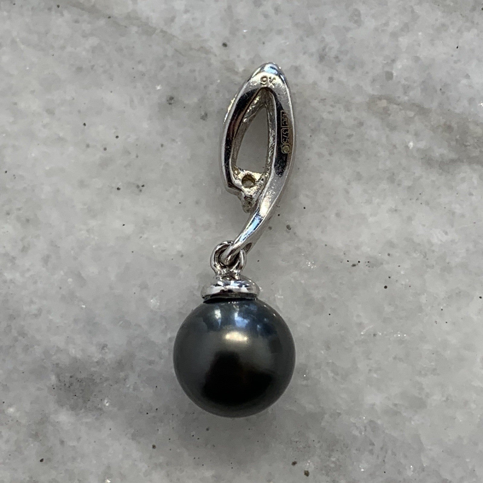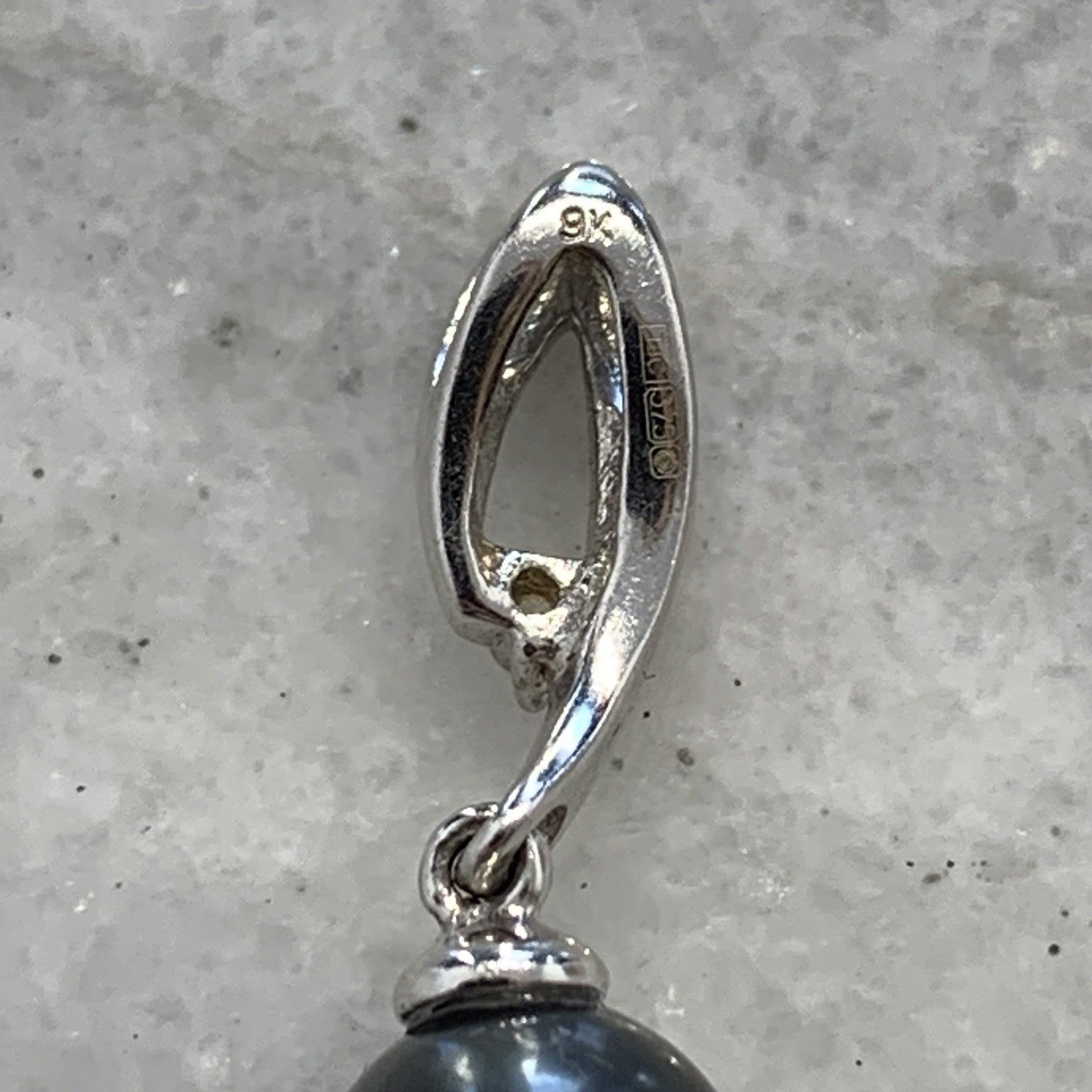 Black Pearl Diamond Drop Pendant 9 ct 375 White Gold