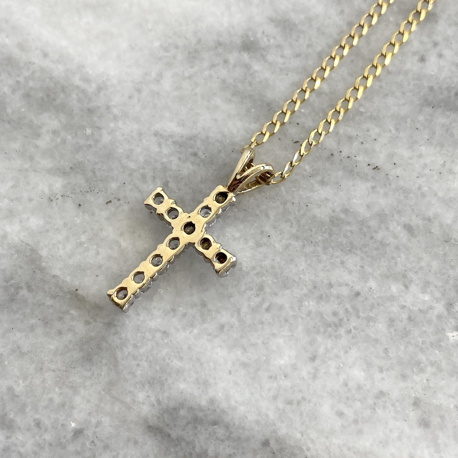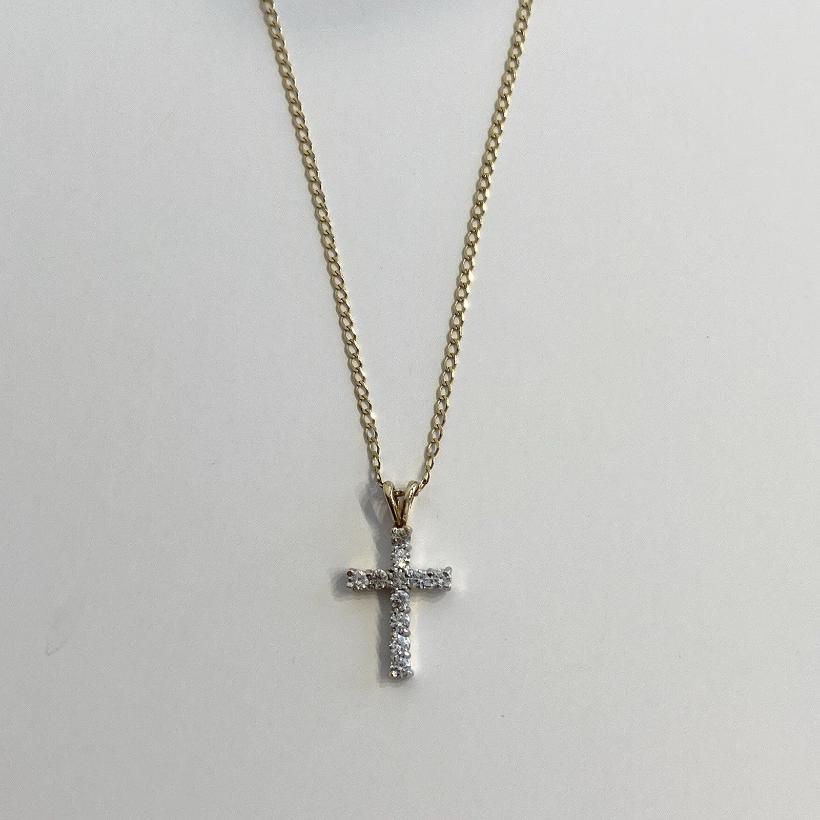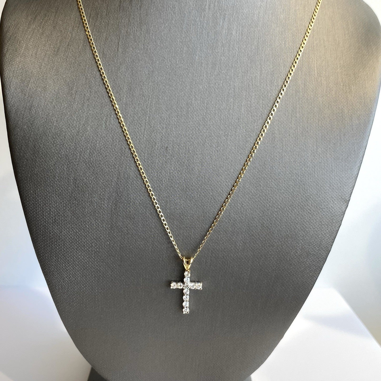 Cross Necklace 9 ct Gold CZ Crucifix Pendant Curb Chain 375 Yellow Gold - 18"
