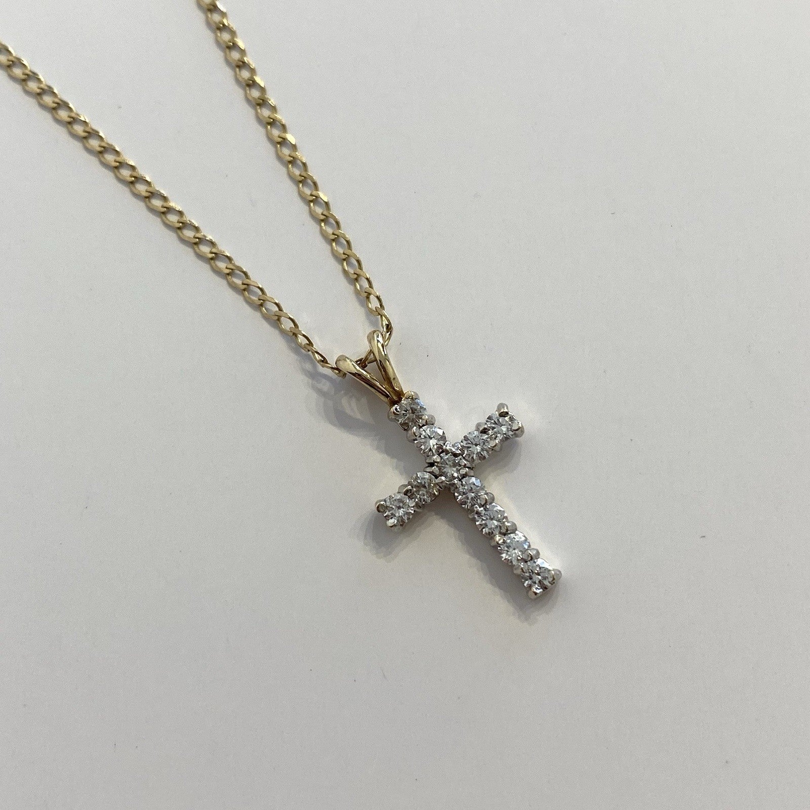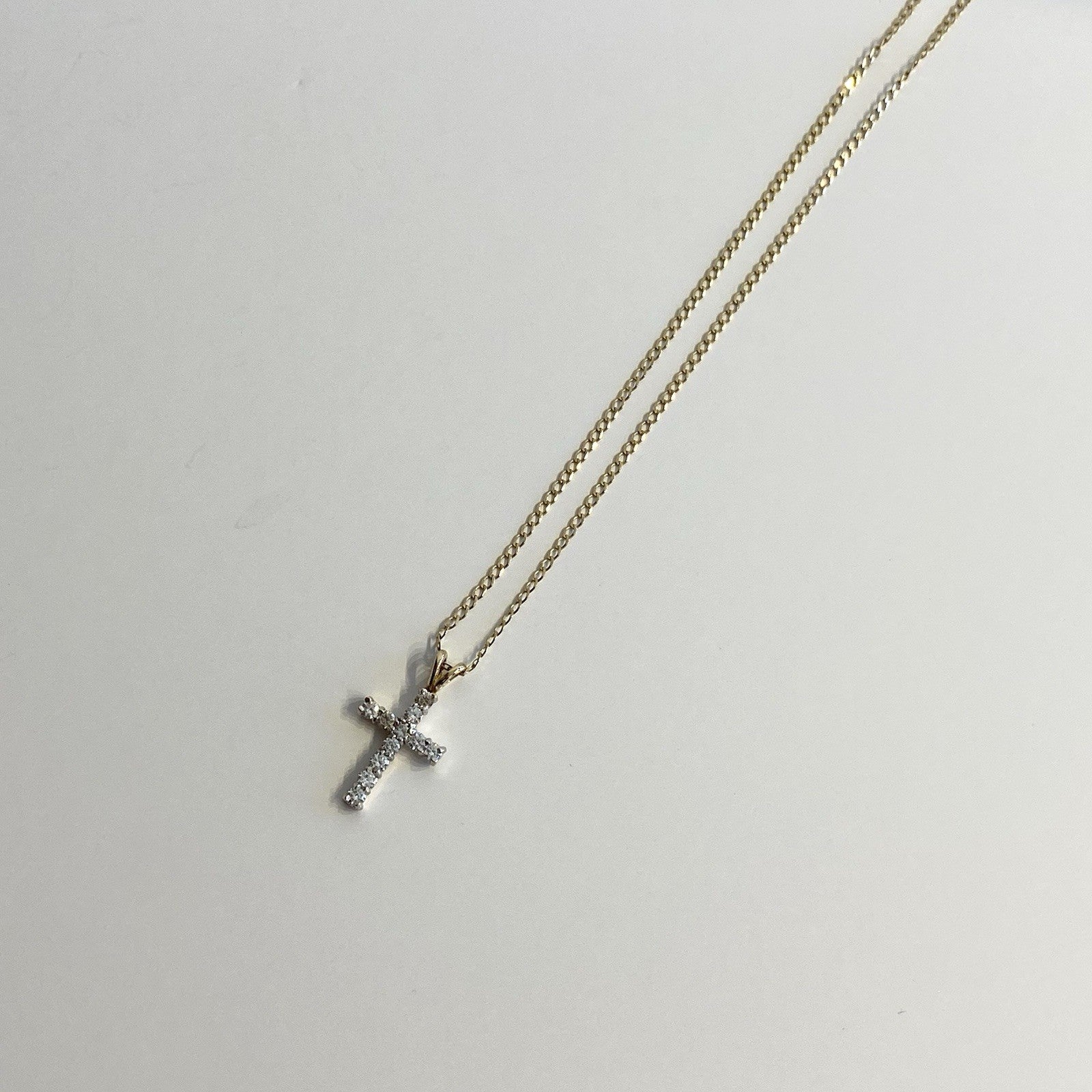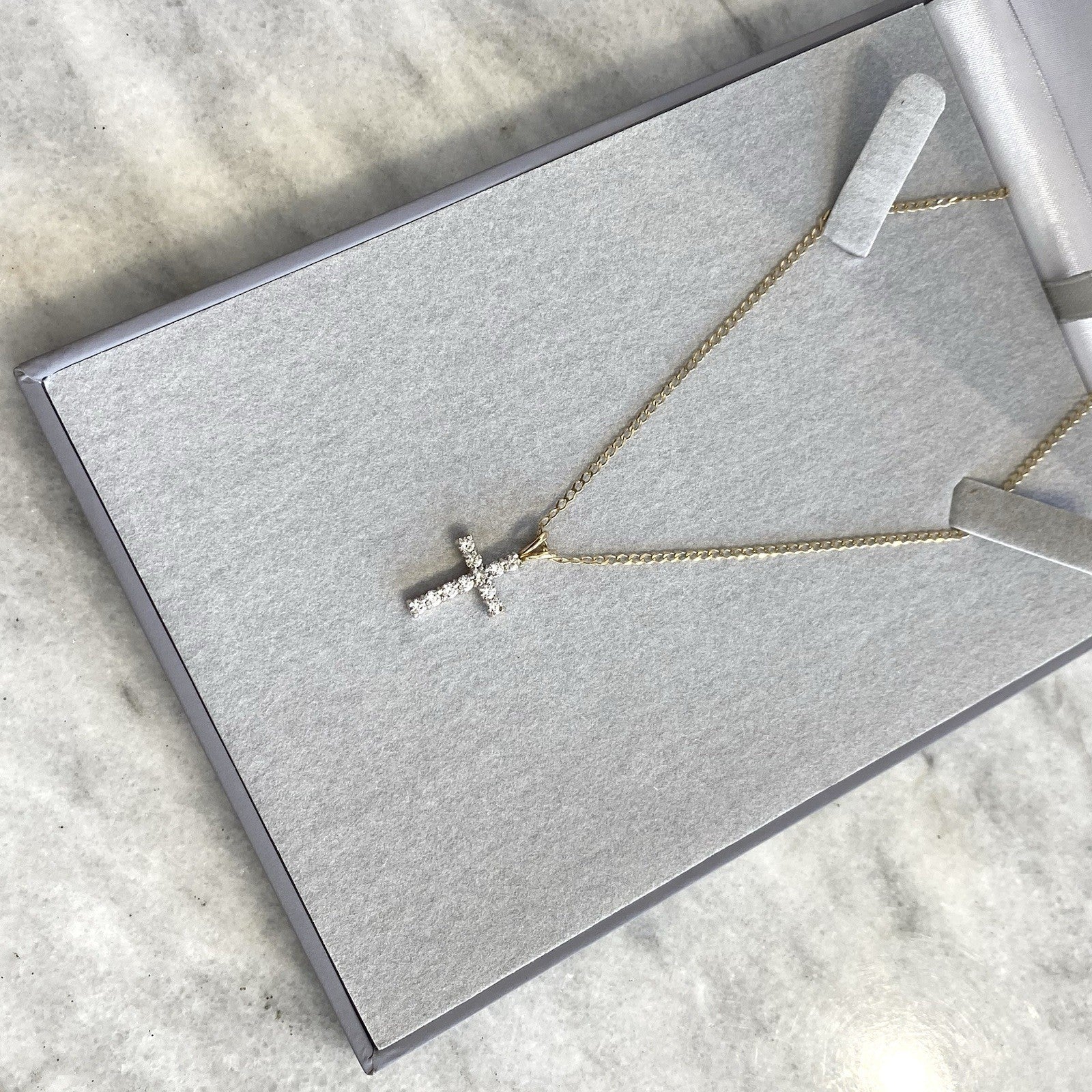 Cross Necklace 9 ct Gold CZ Crucifix Pendant Curb Chain 375 Yellow Gold - 18"
