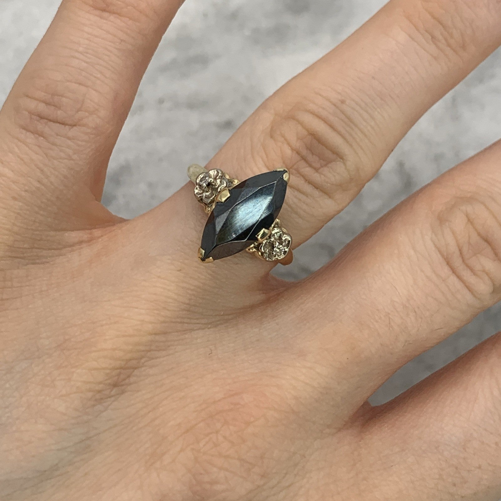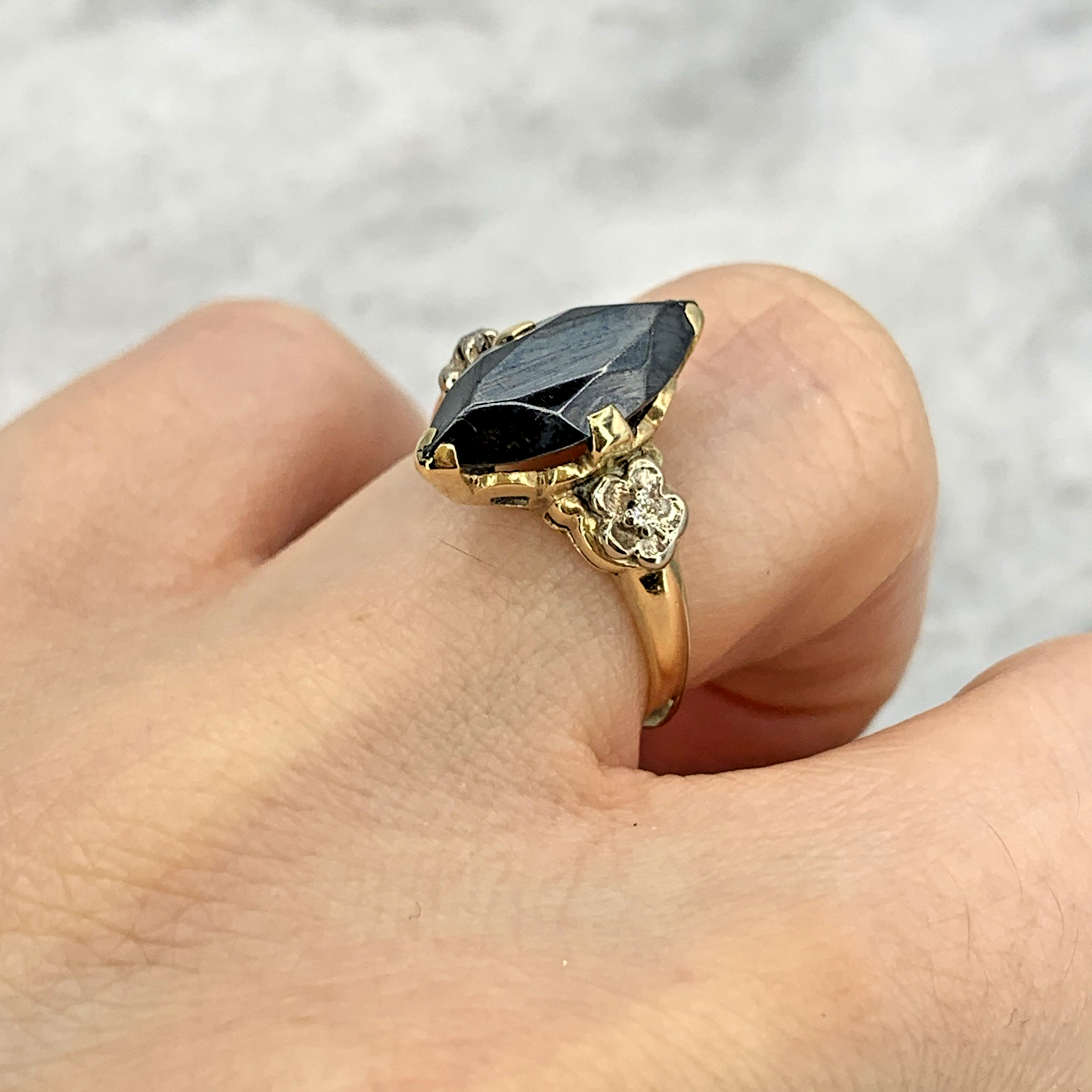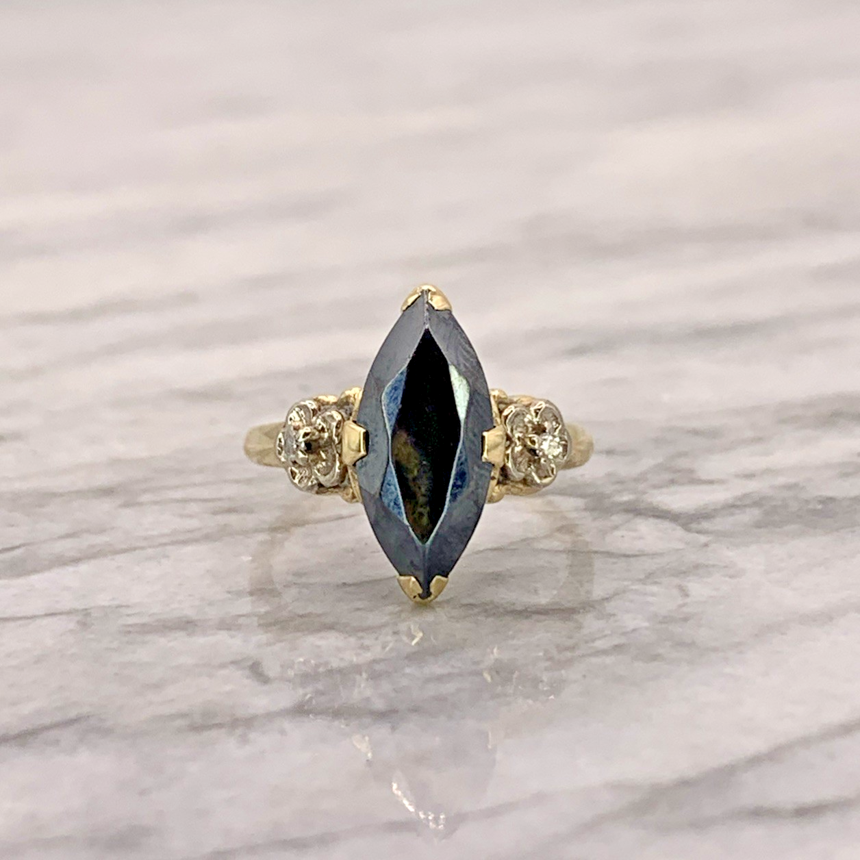 10 ct Gold Hematite & Diamond Marquise Cut Ring 10ct 10k 417 Yellow Gold- Size K