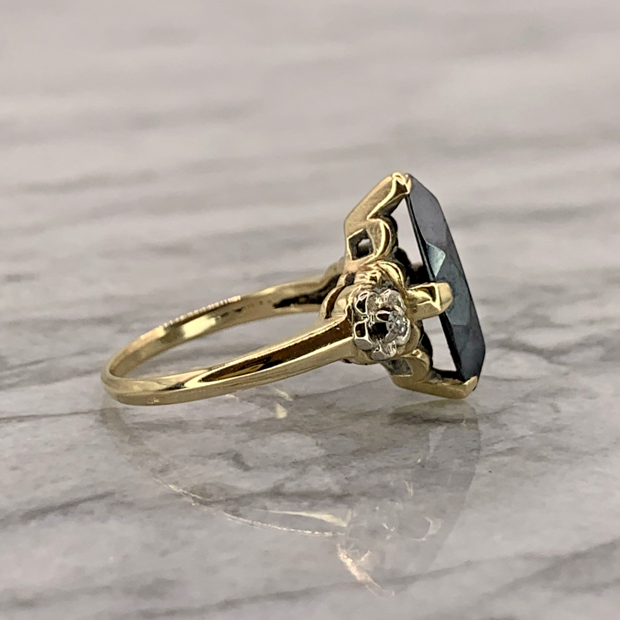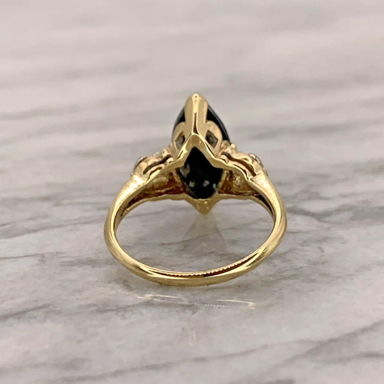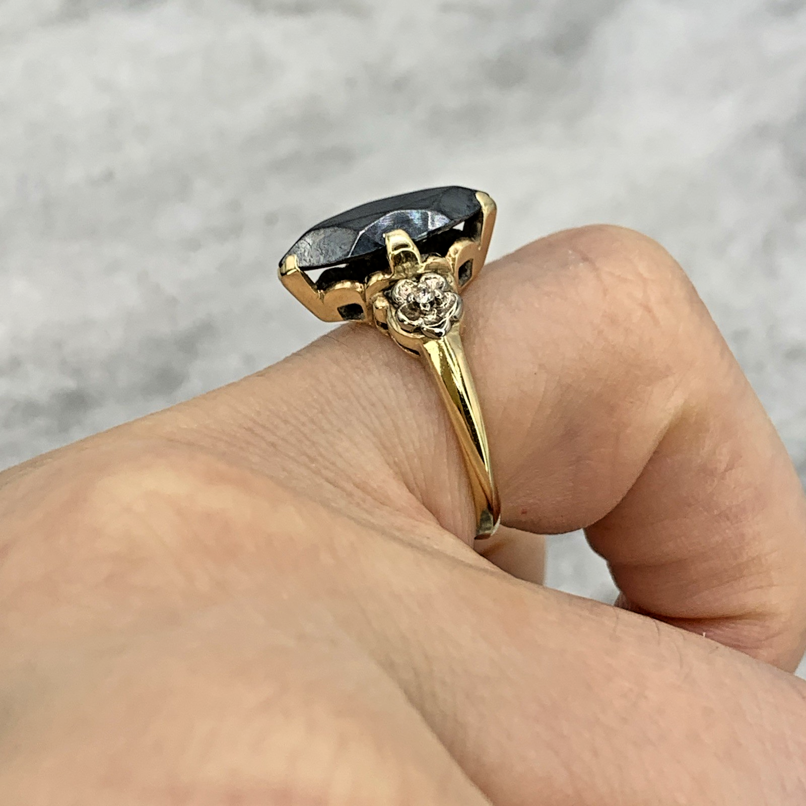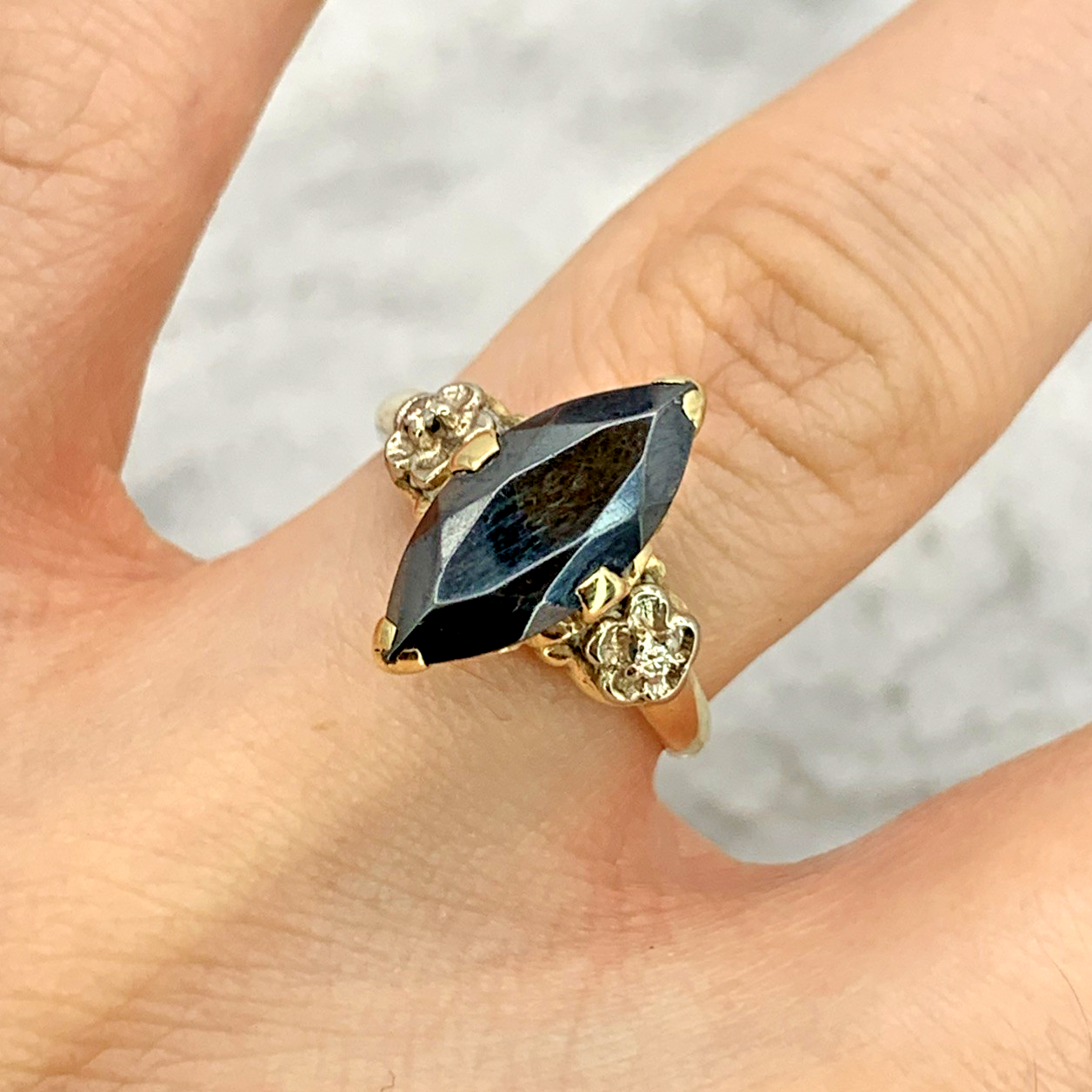 10 ct Gold Hematite & Diamond Marquise Cut Ring 10ct 10k 417 Yellow Gold- Size K