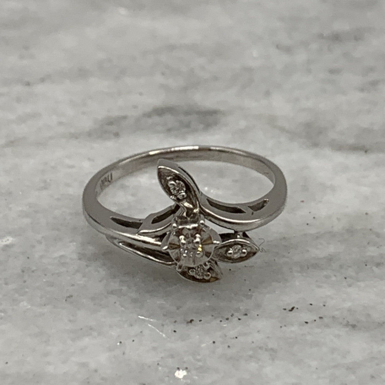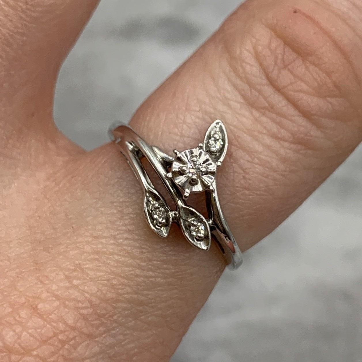 10ct Gold Diamond Foliate Twist Ring 417 White Gold - Size M