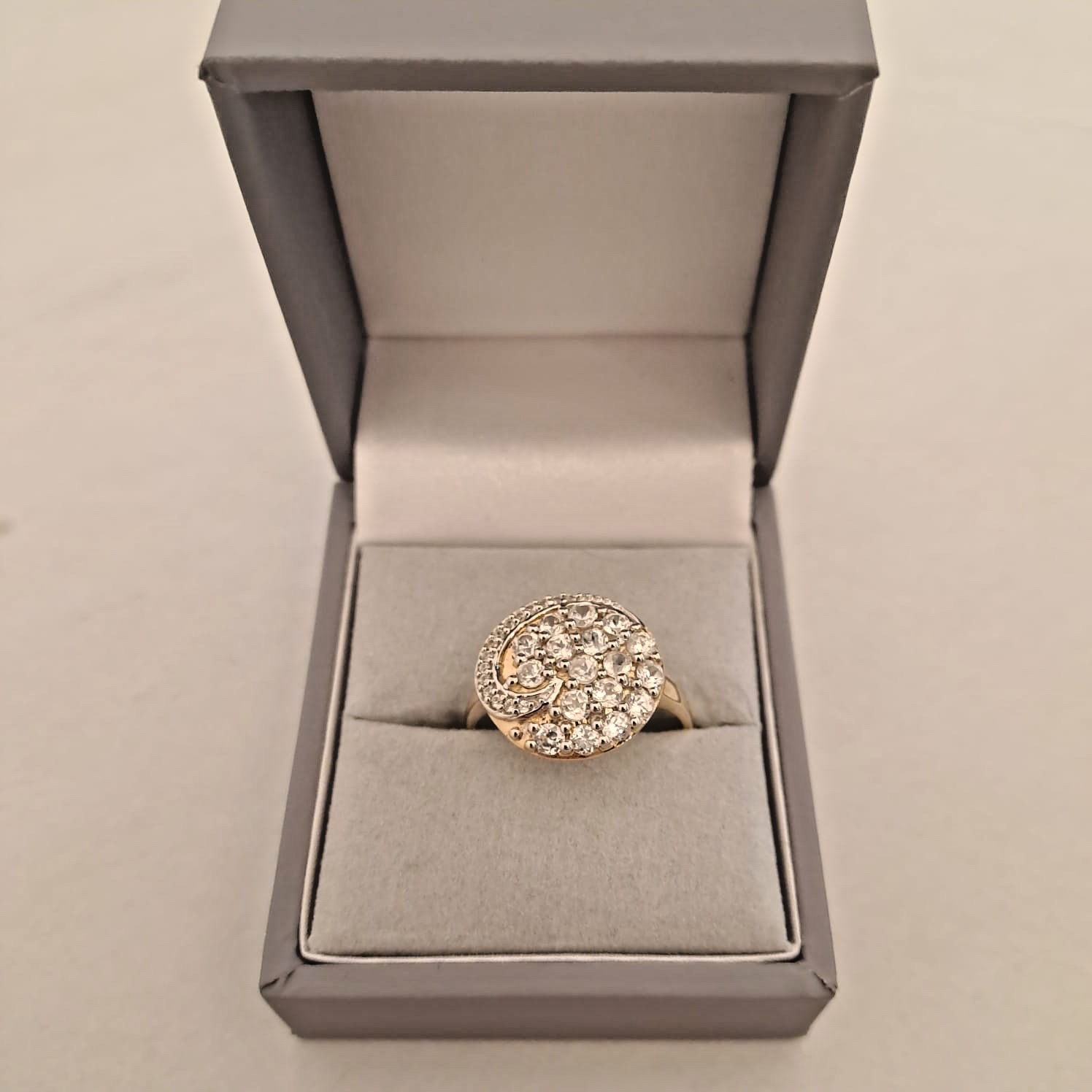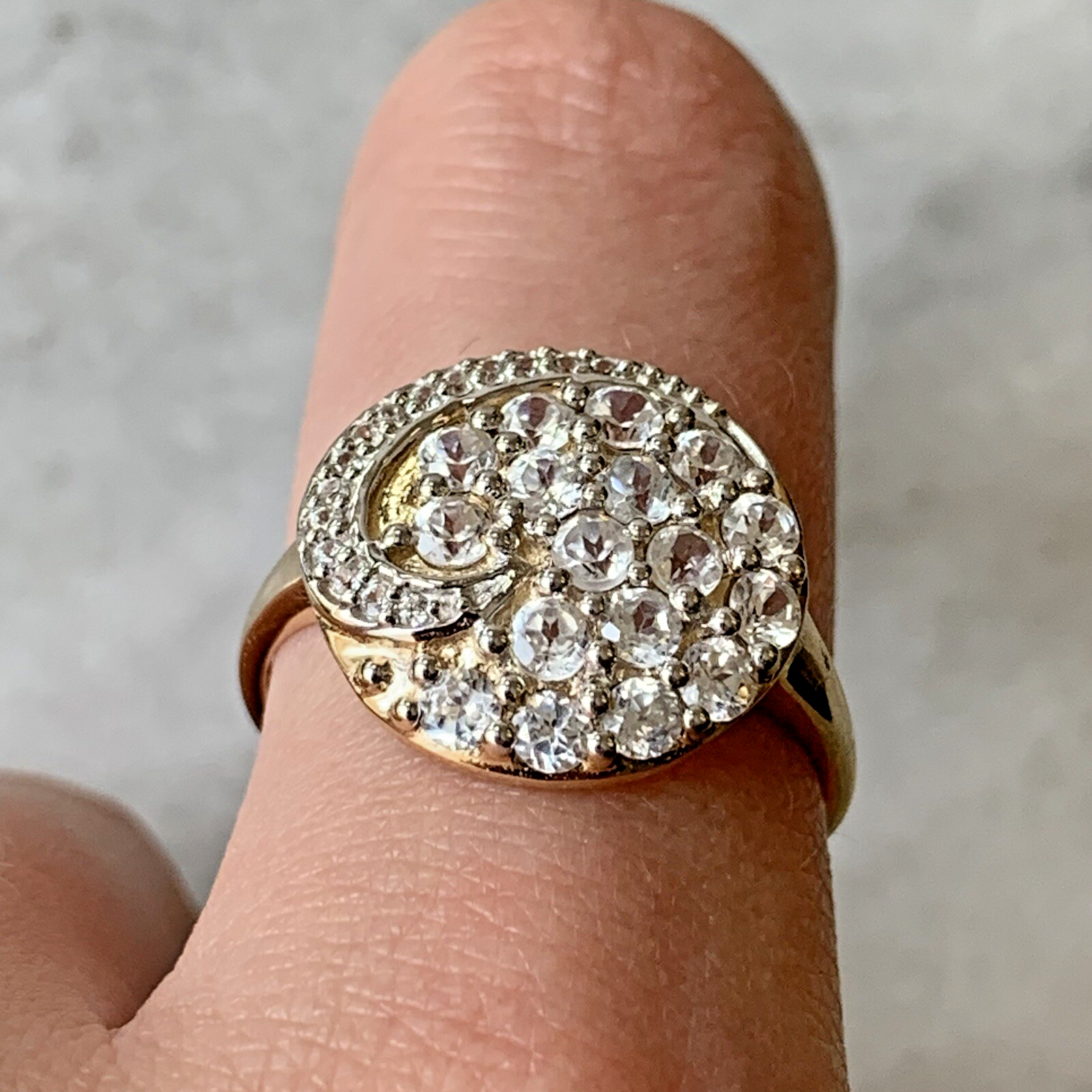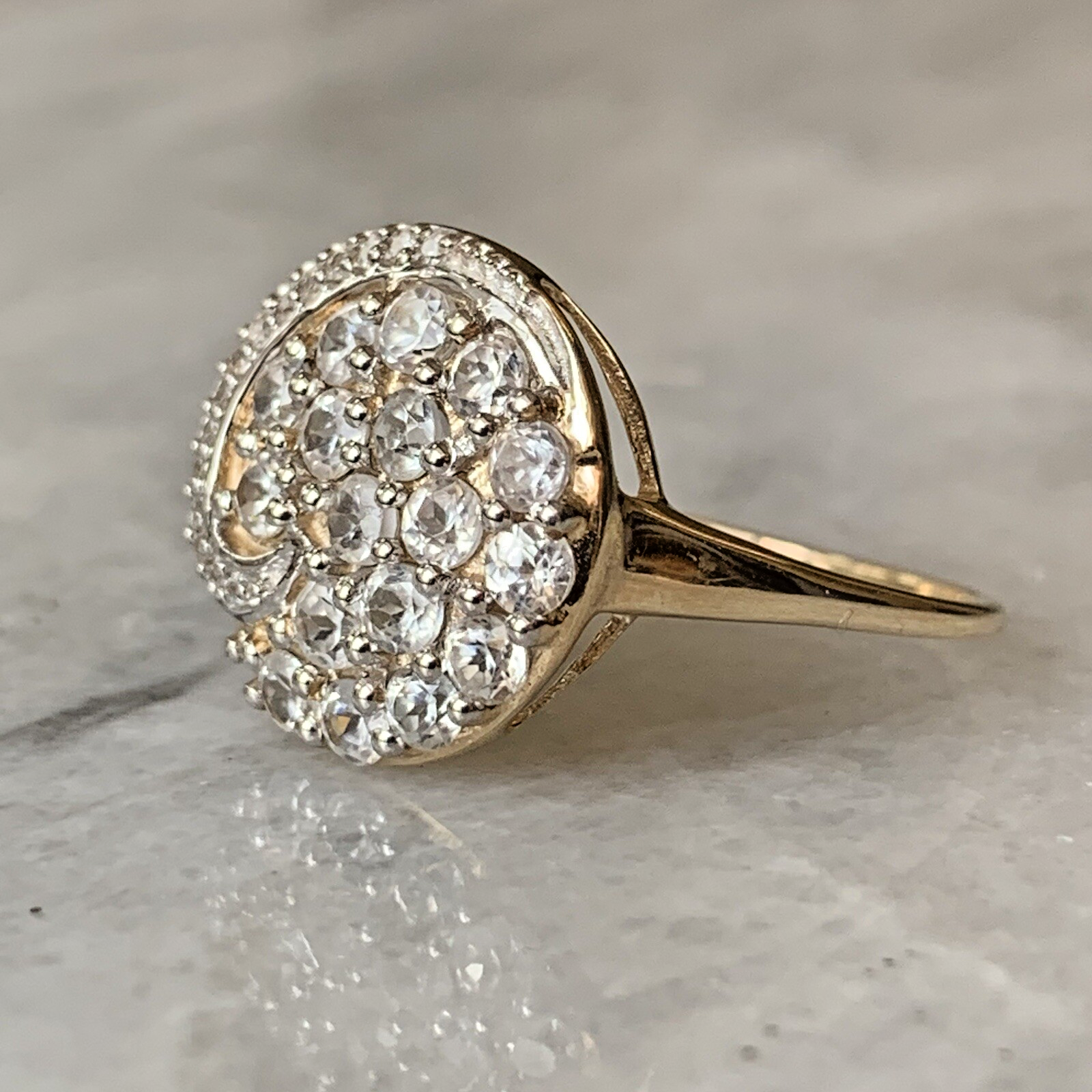 10ct Gold Ring White Topaz Swirling Cluster - Size S