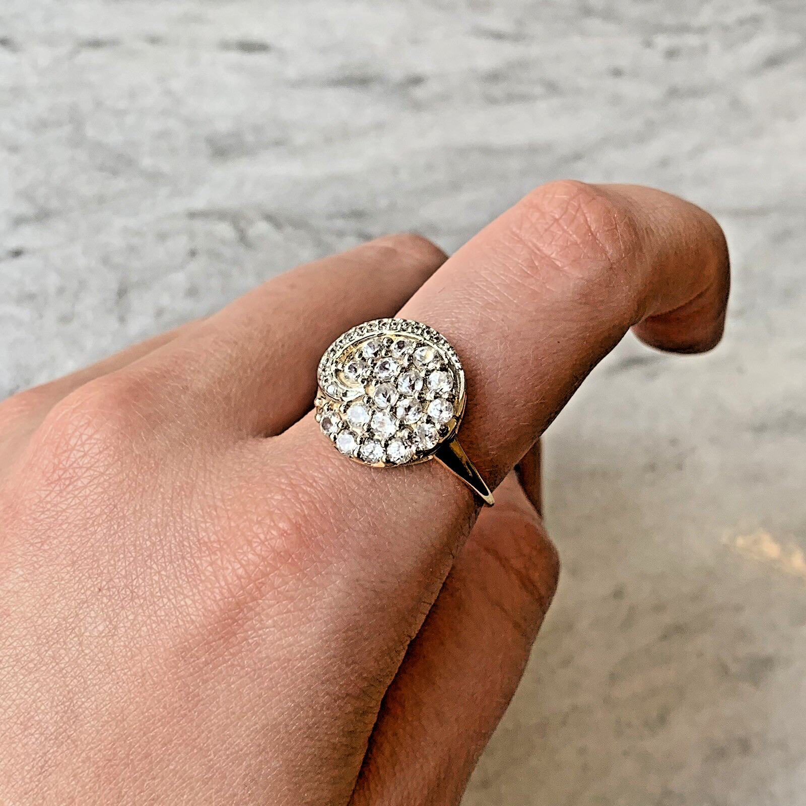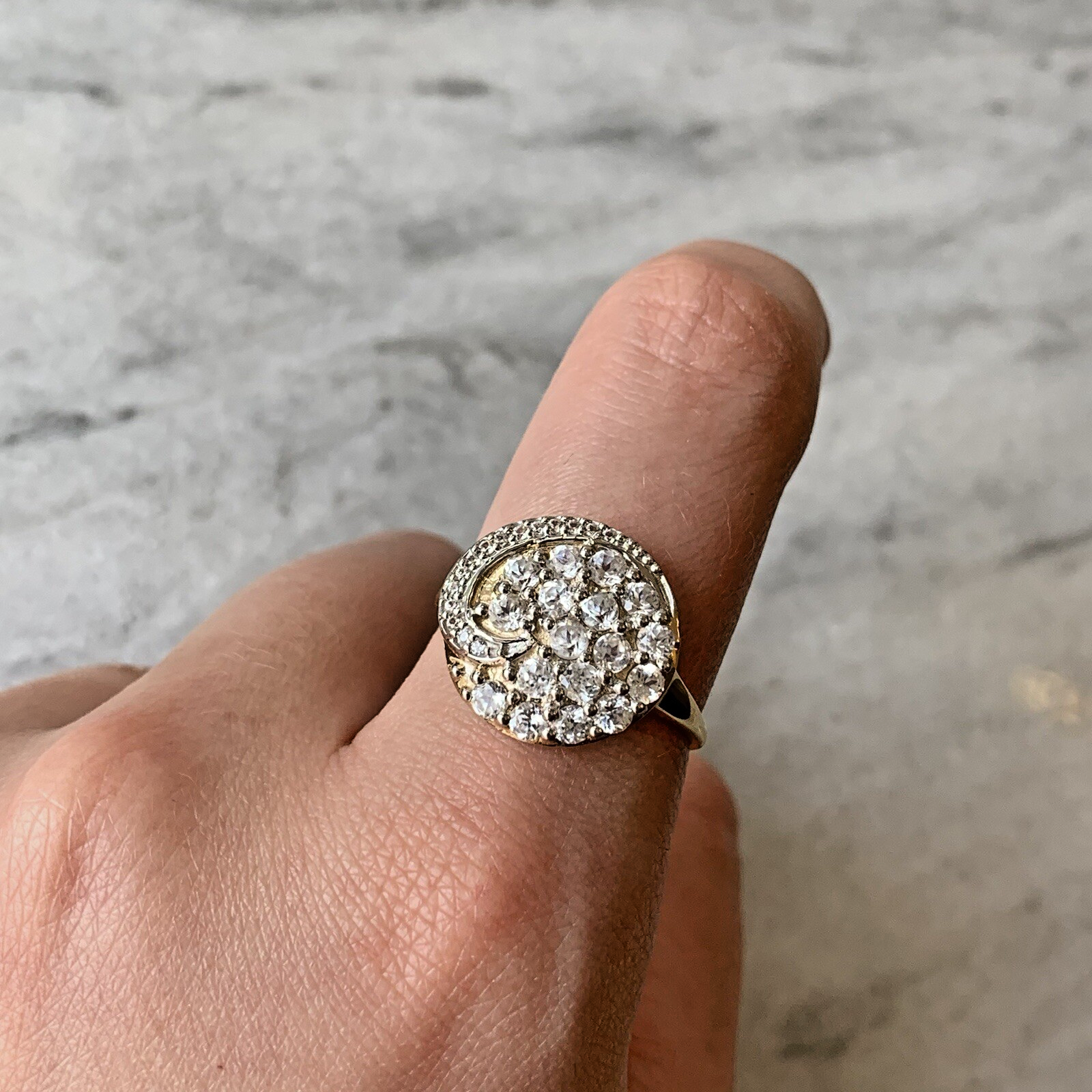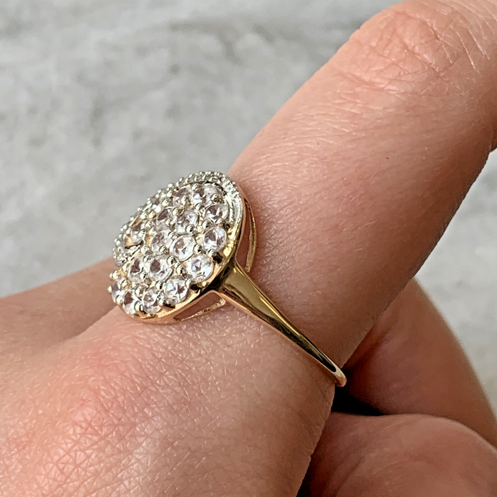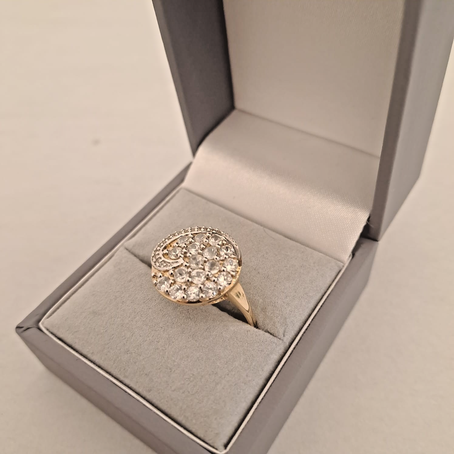 10ct Gold Ring White Topaz Swirling Cluster - Size S