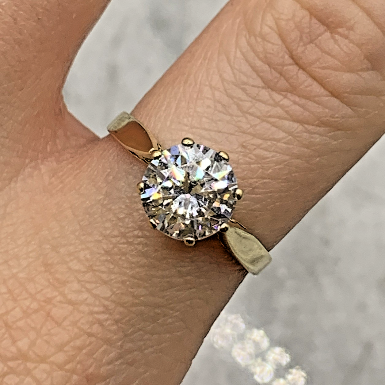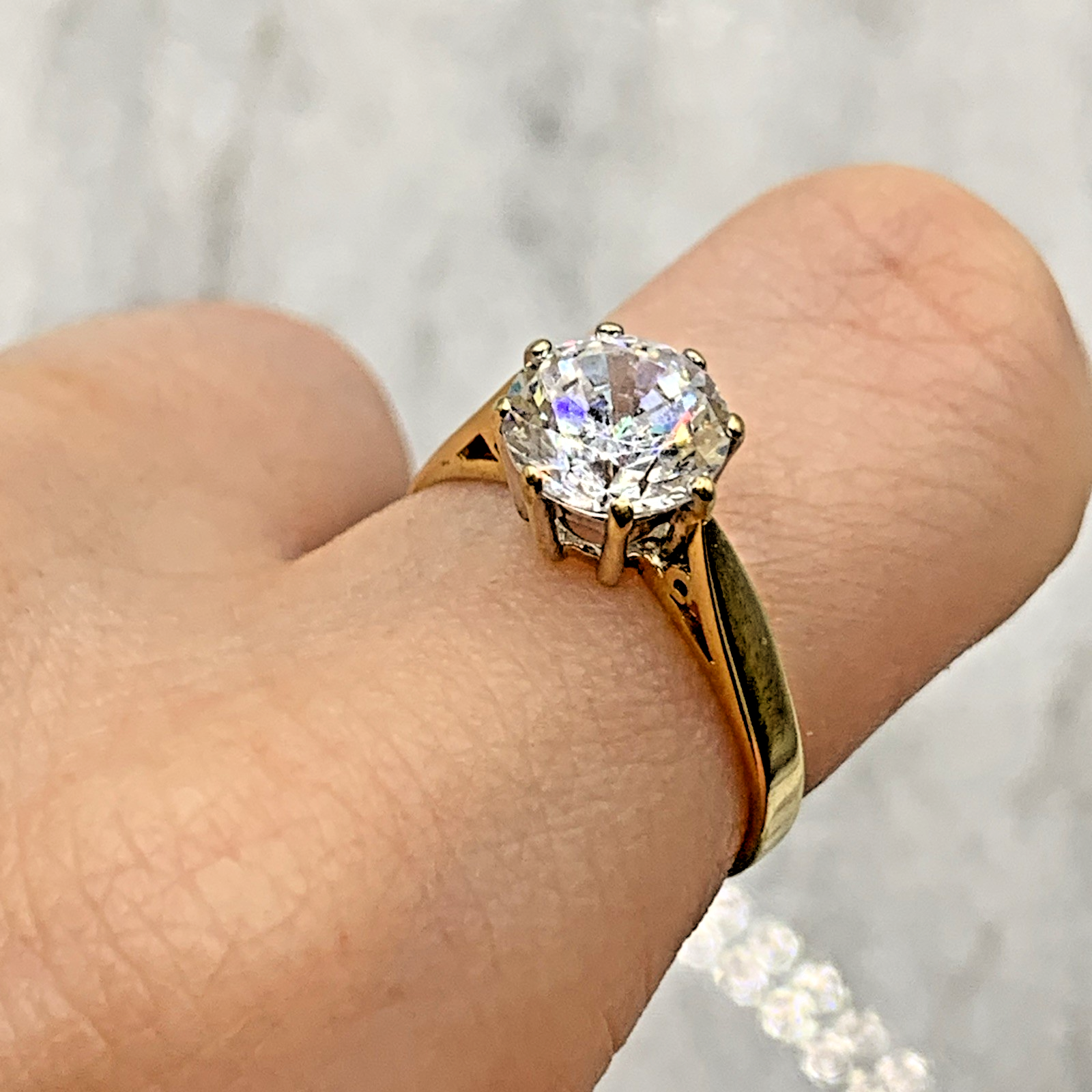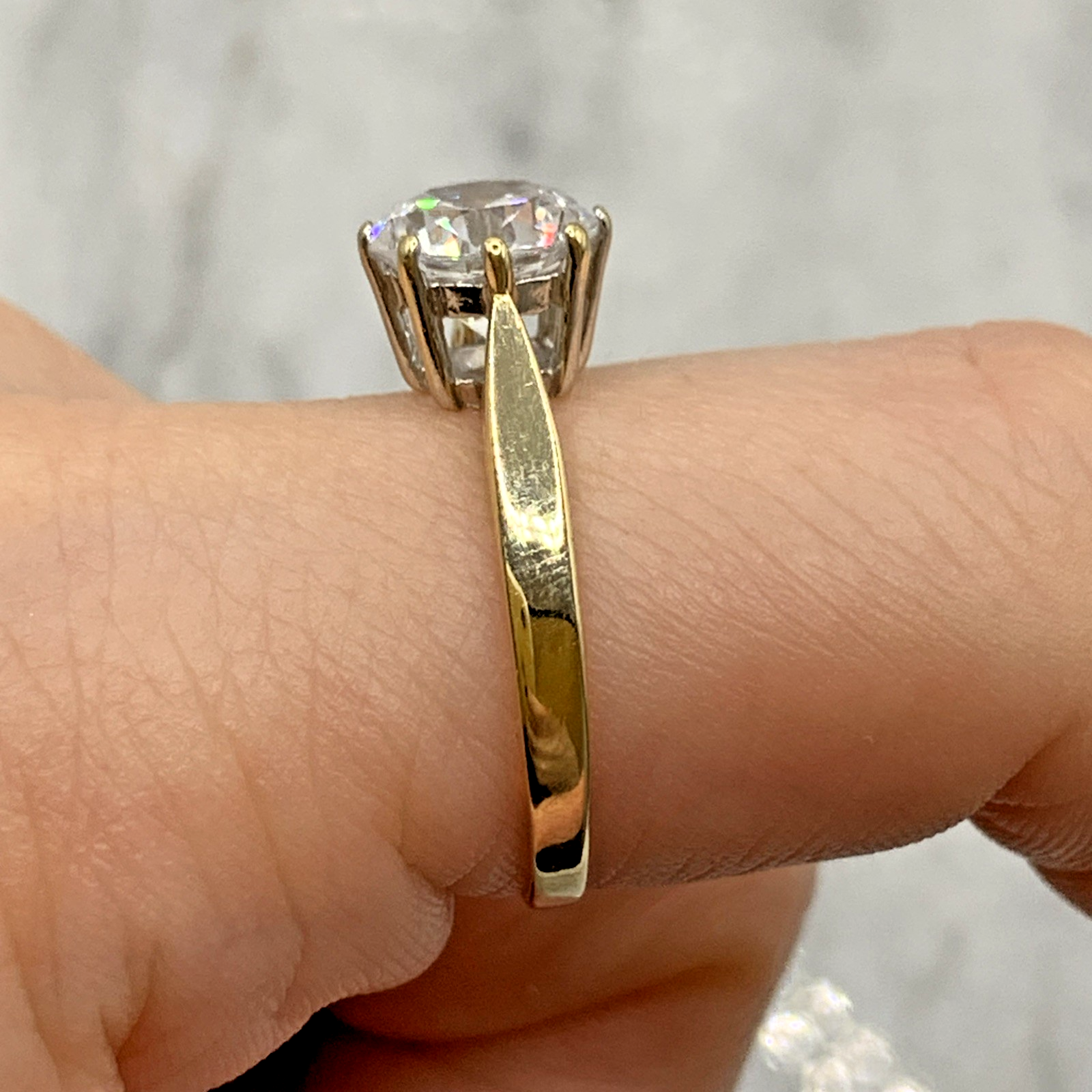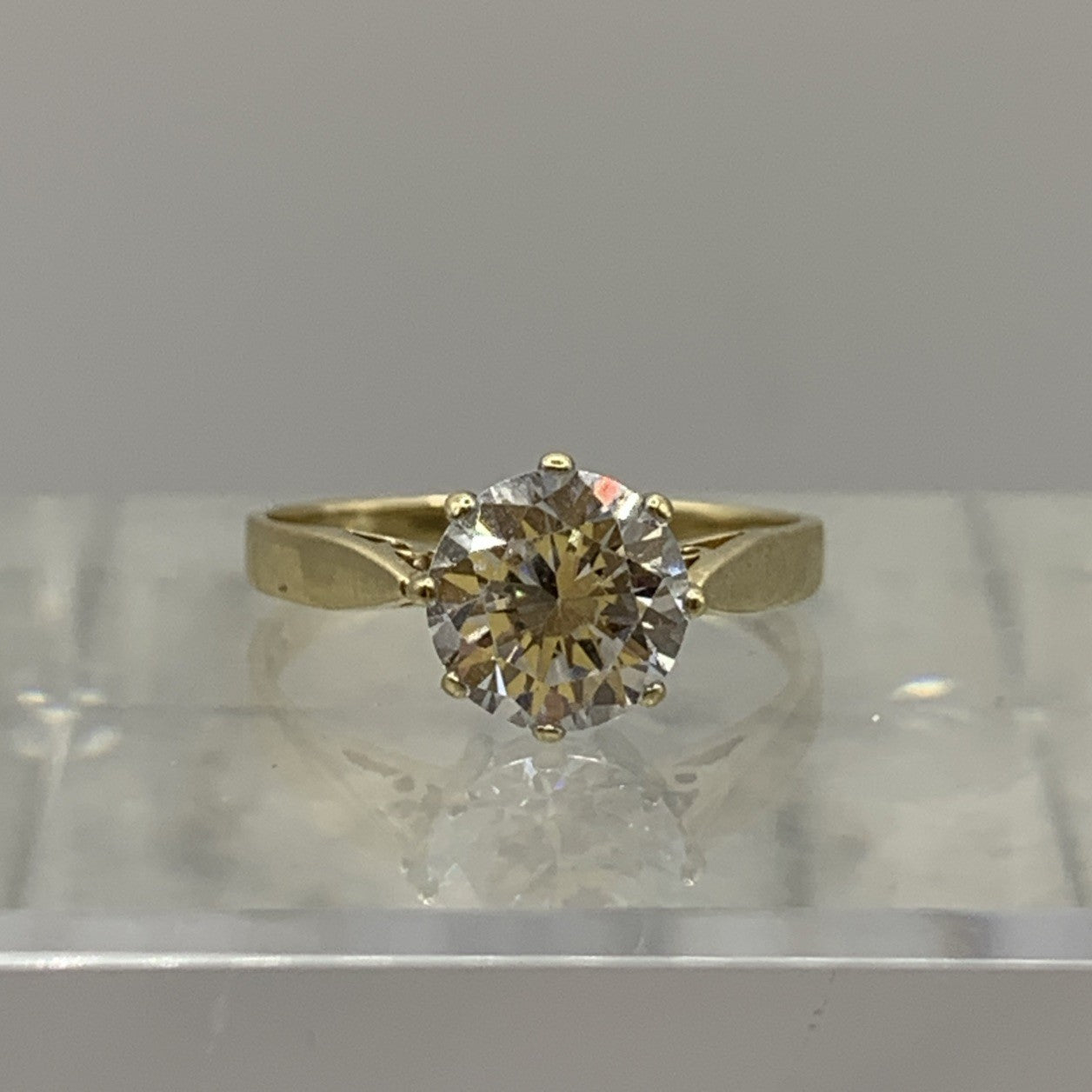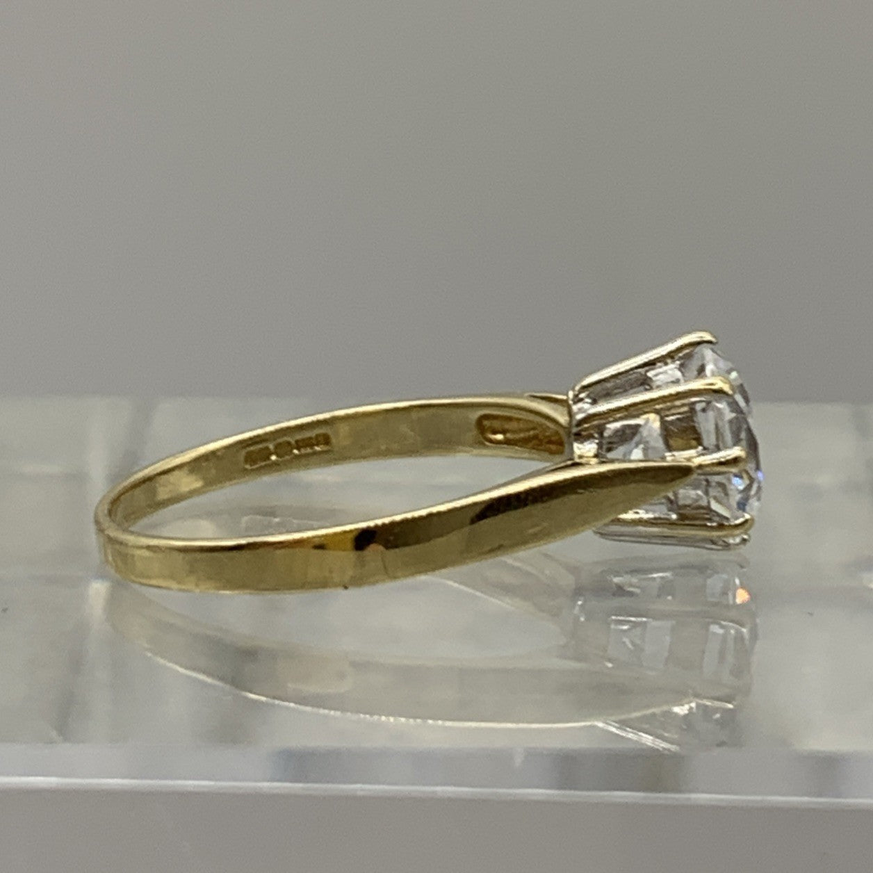 14 ct Gold CZ Solitaire Ring 14ct 14k 585 Yellow Gold - Size P