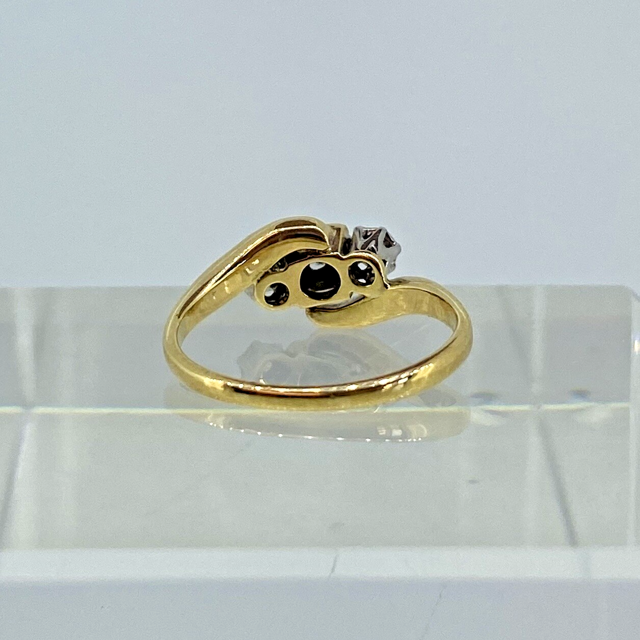 18 ct Gold Art Deco Diamond Ring Trilogy Bypass 750 Yellow Gold - Size K