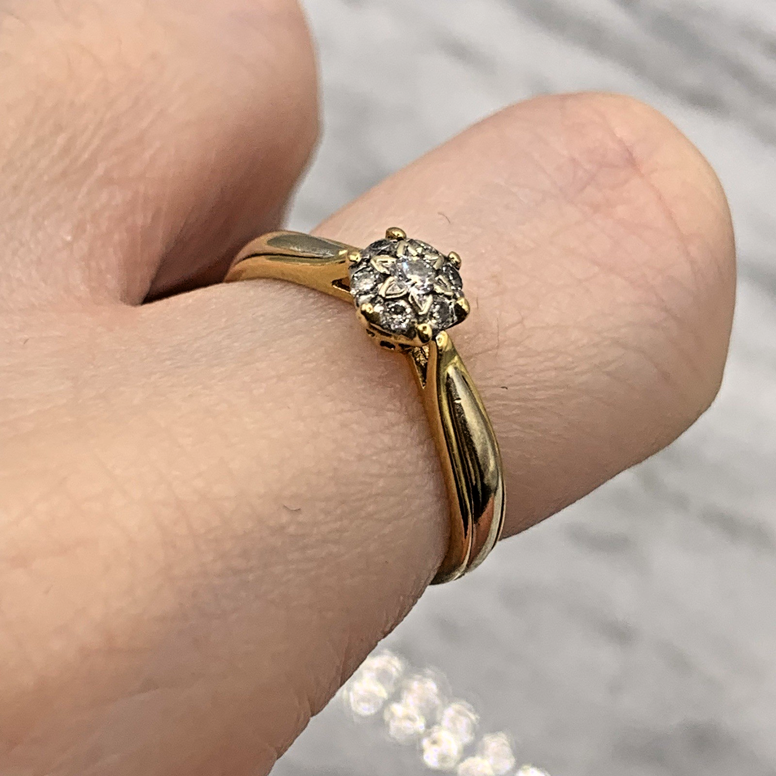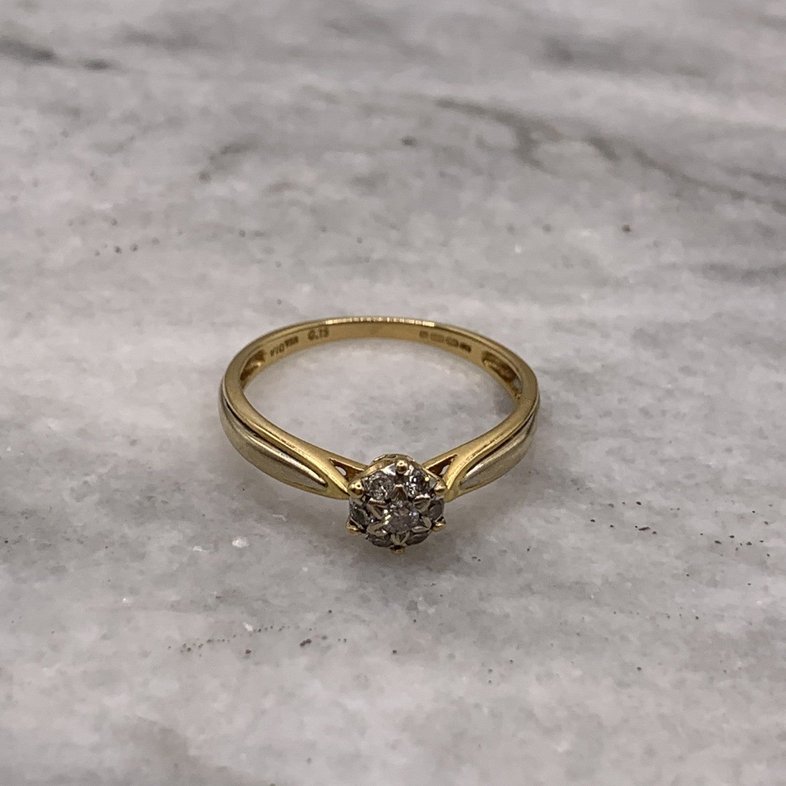 18 ct Gold Diamond Cluster Ring .15ct 750 Yellow Gold - Size M