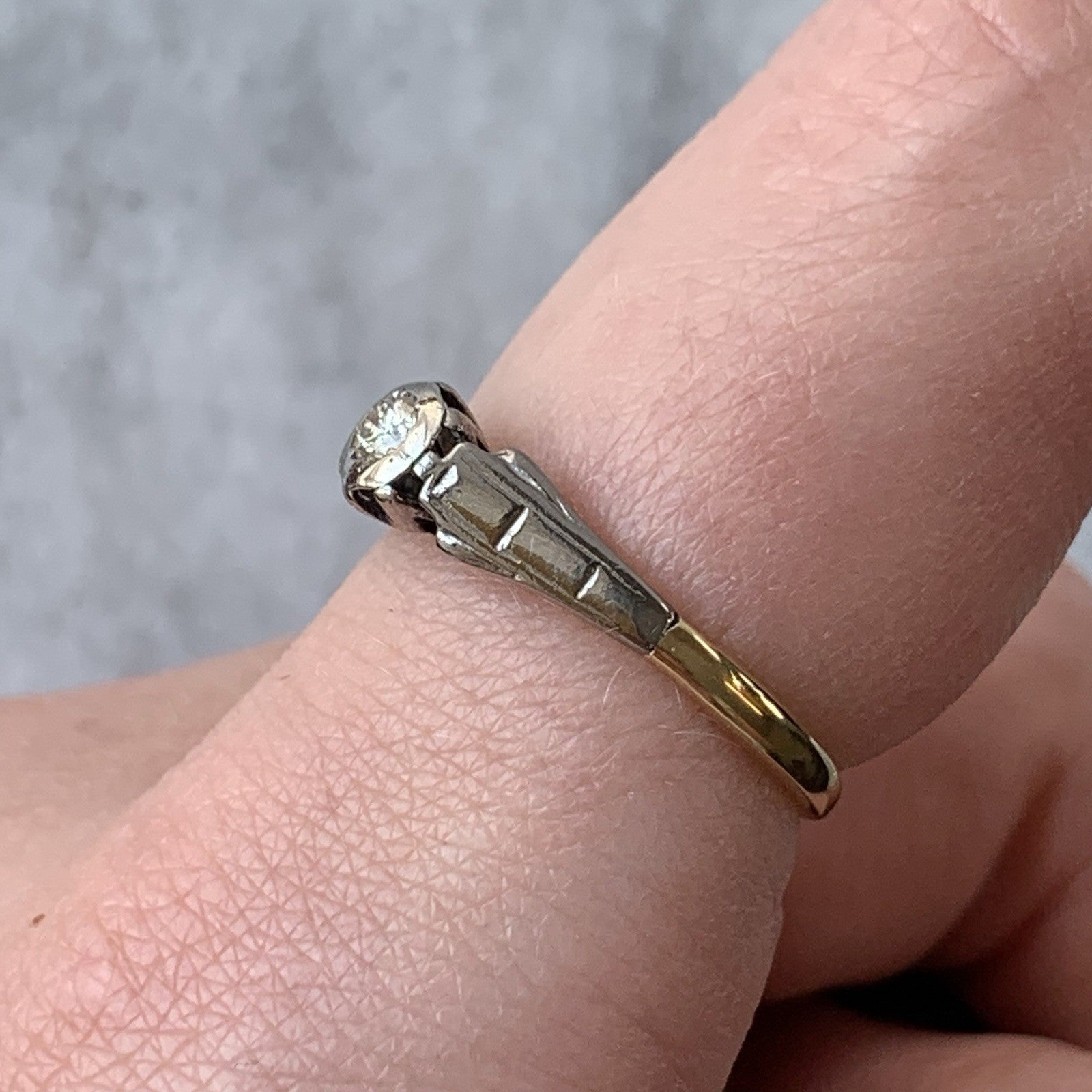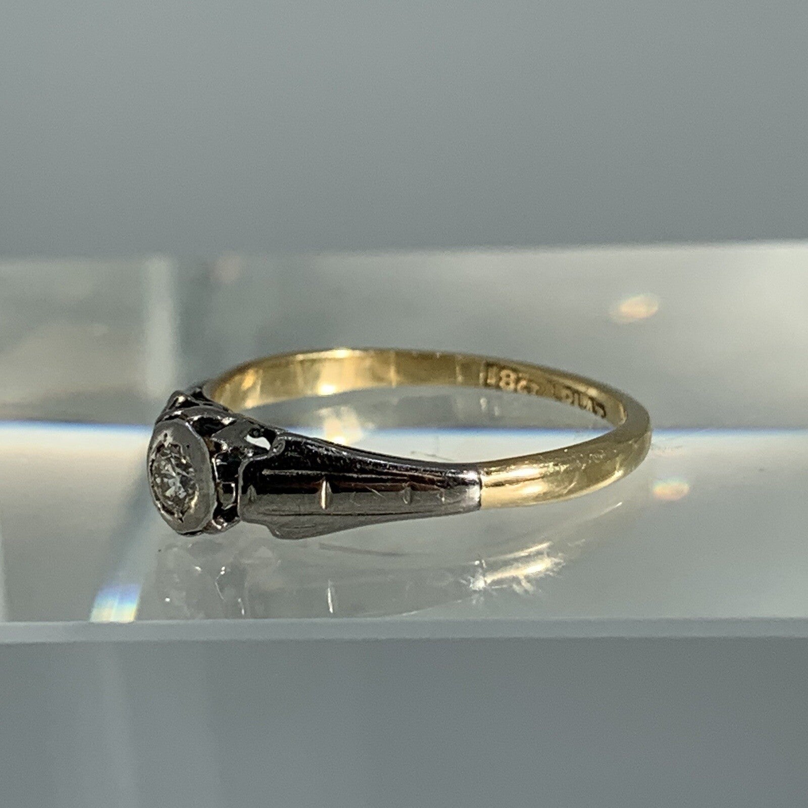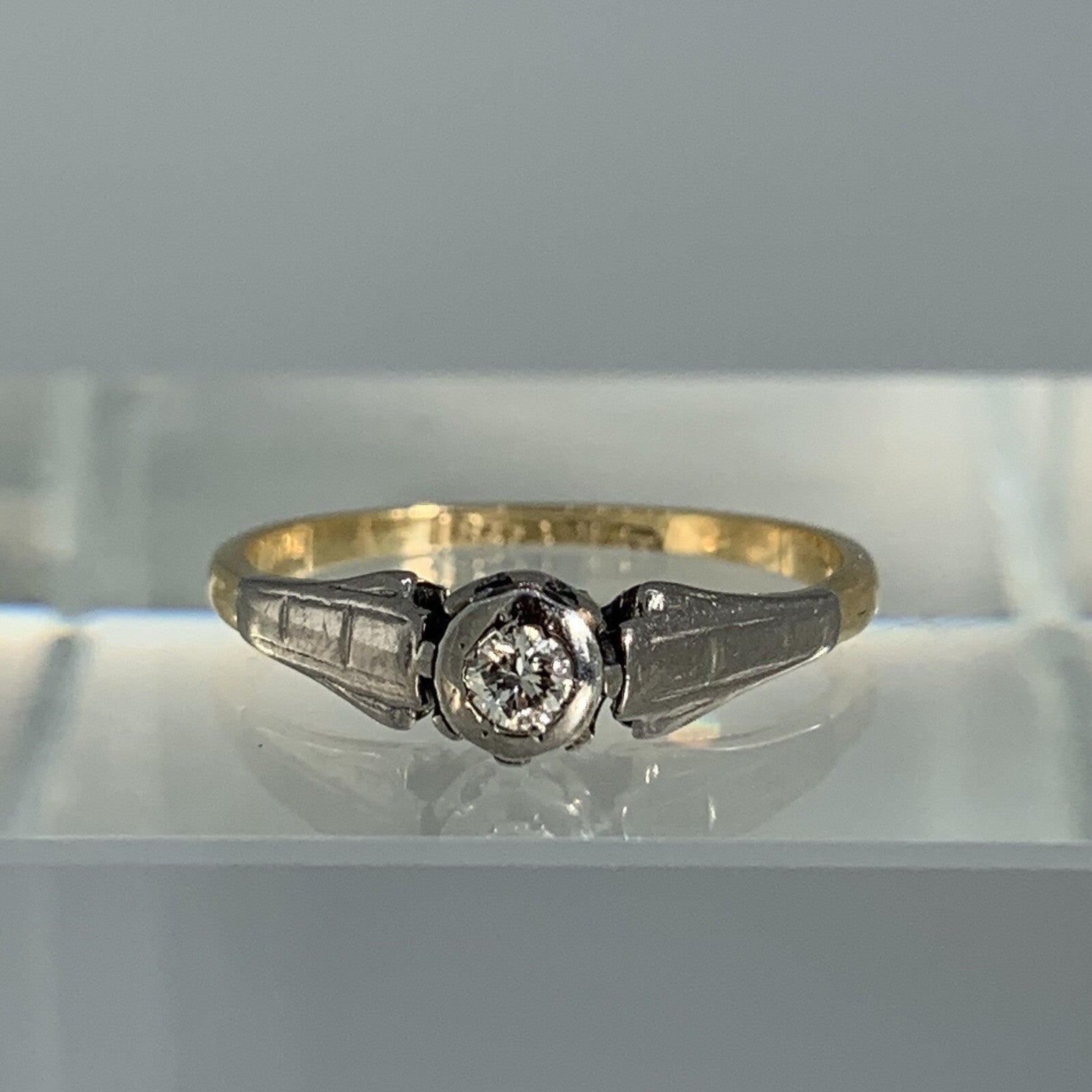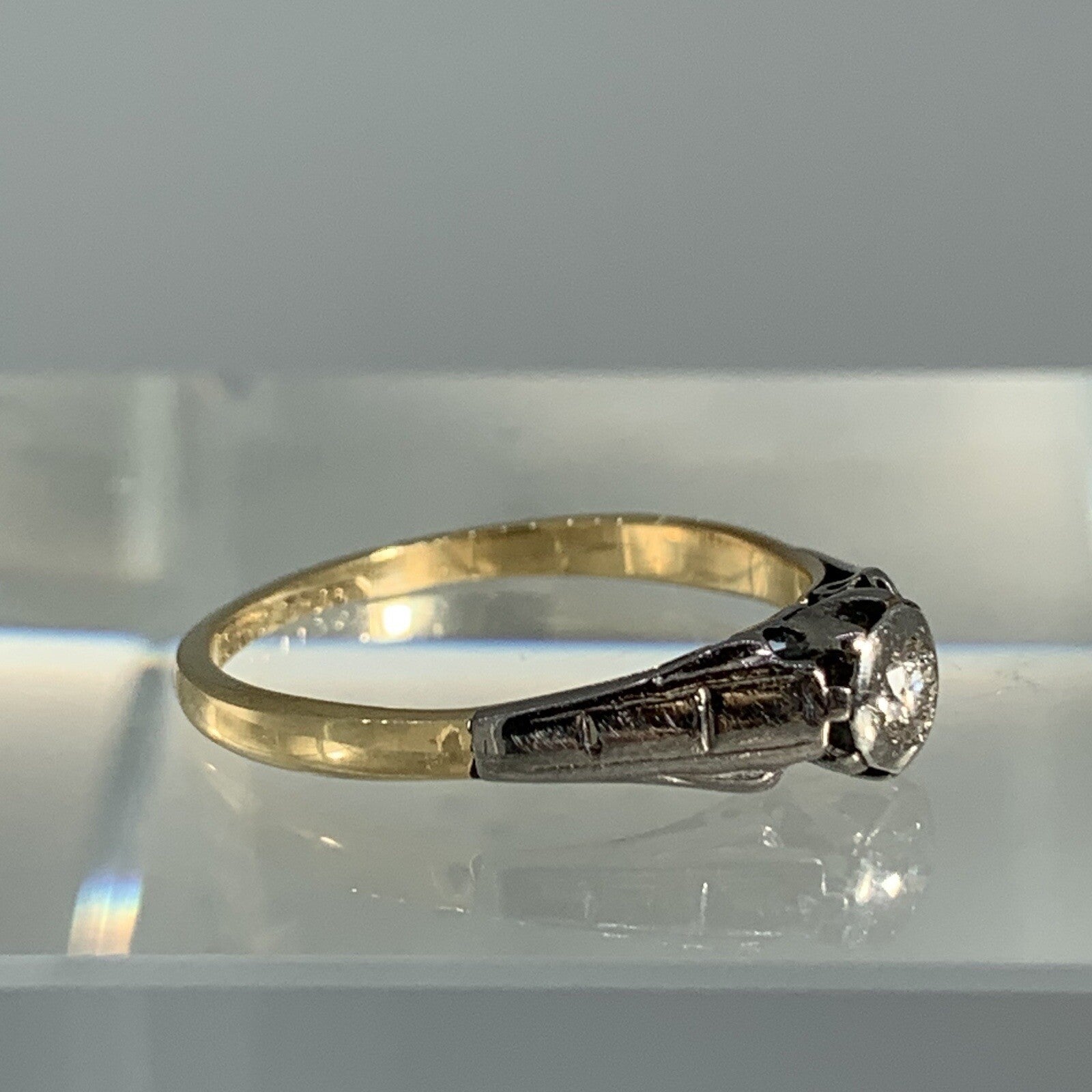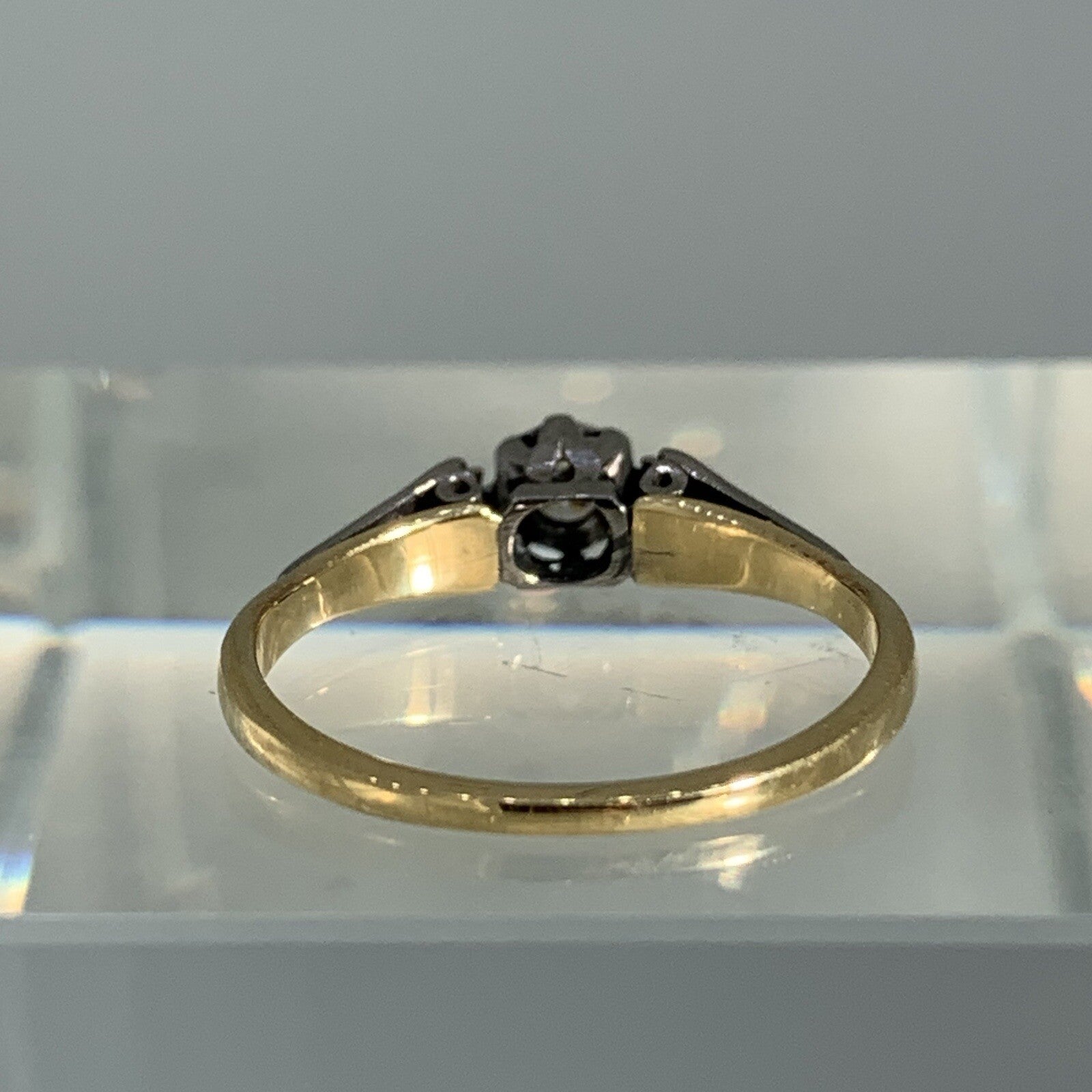 18 ct Gold Diamond Ring Antique Solitaire Platinum Set Yellow Gold - Size L
