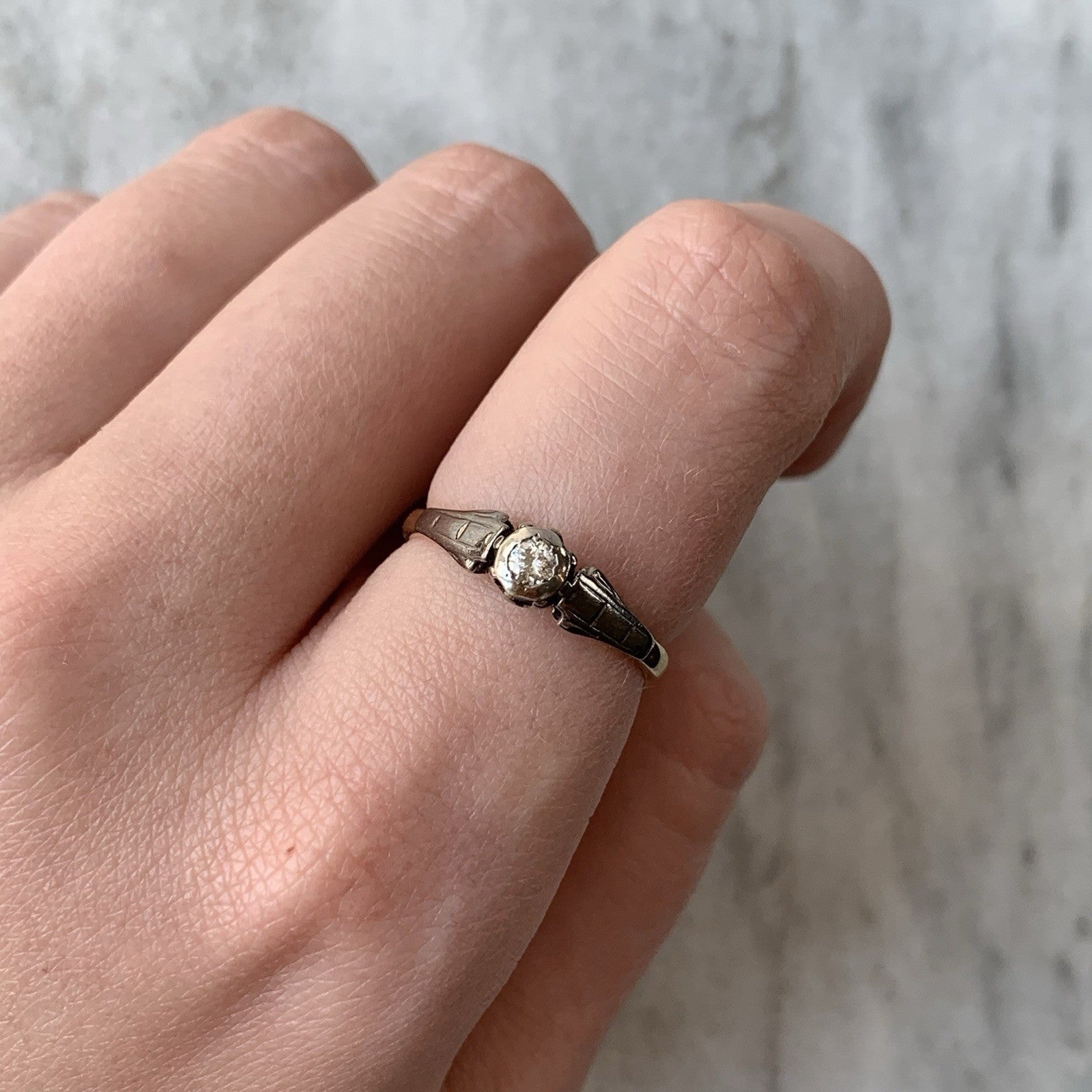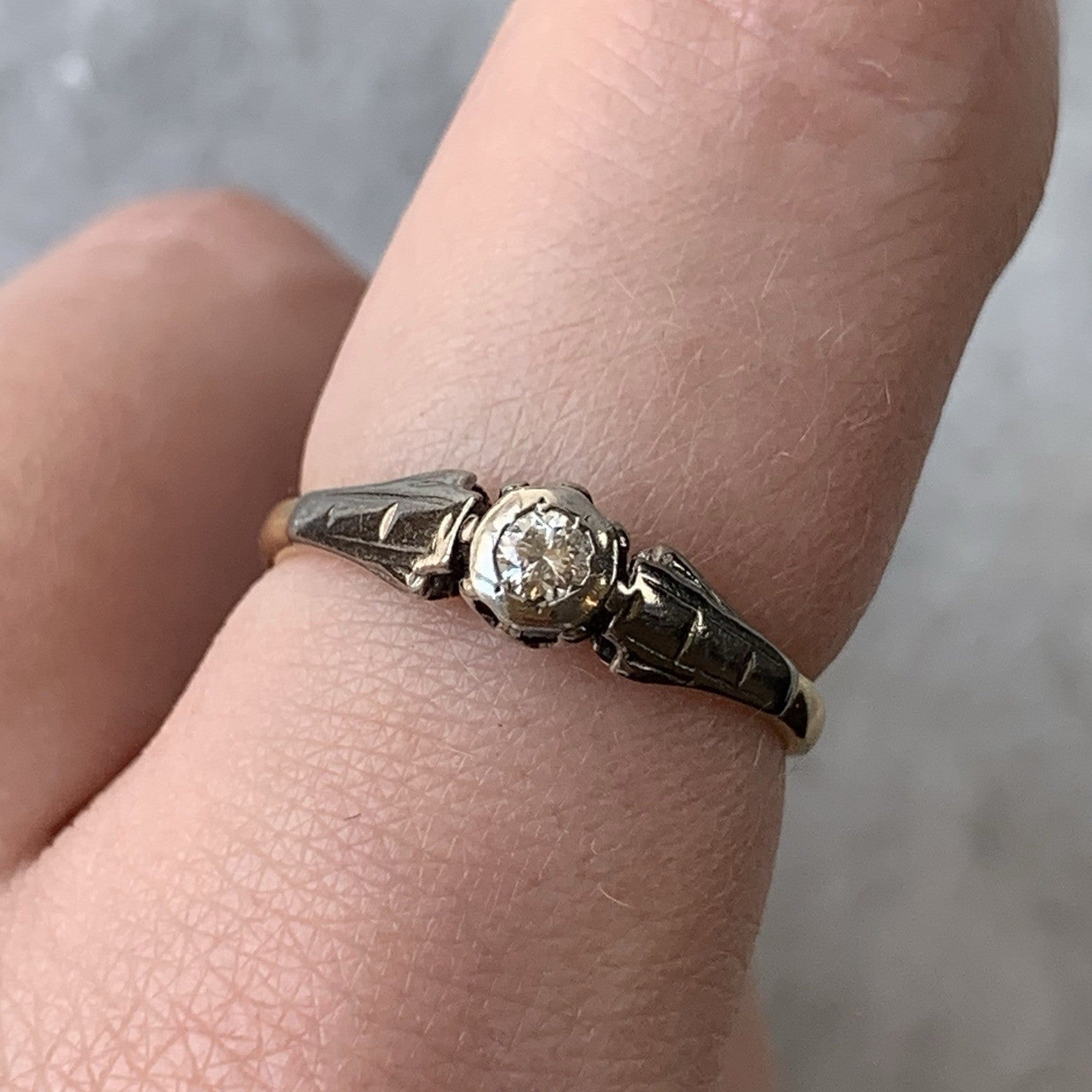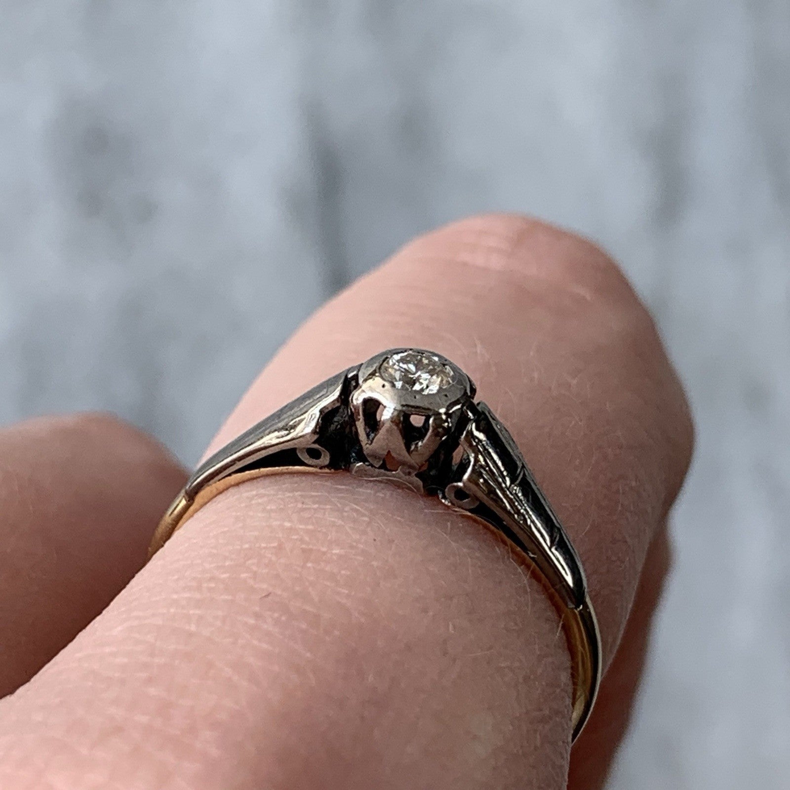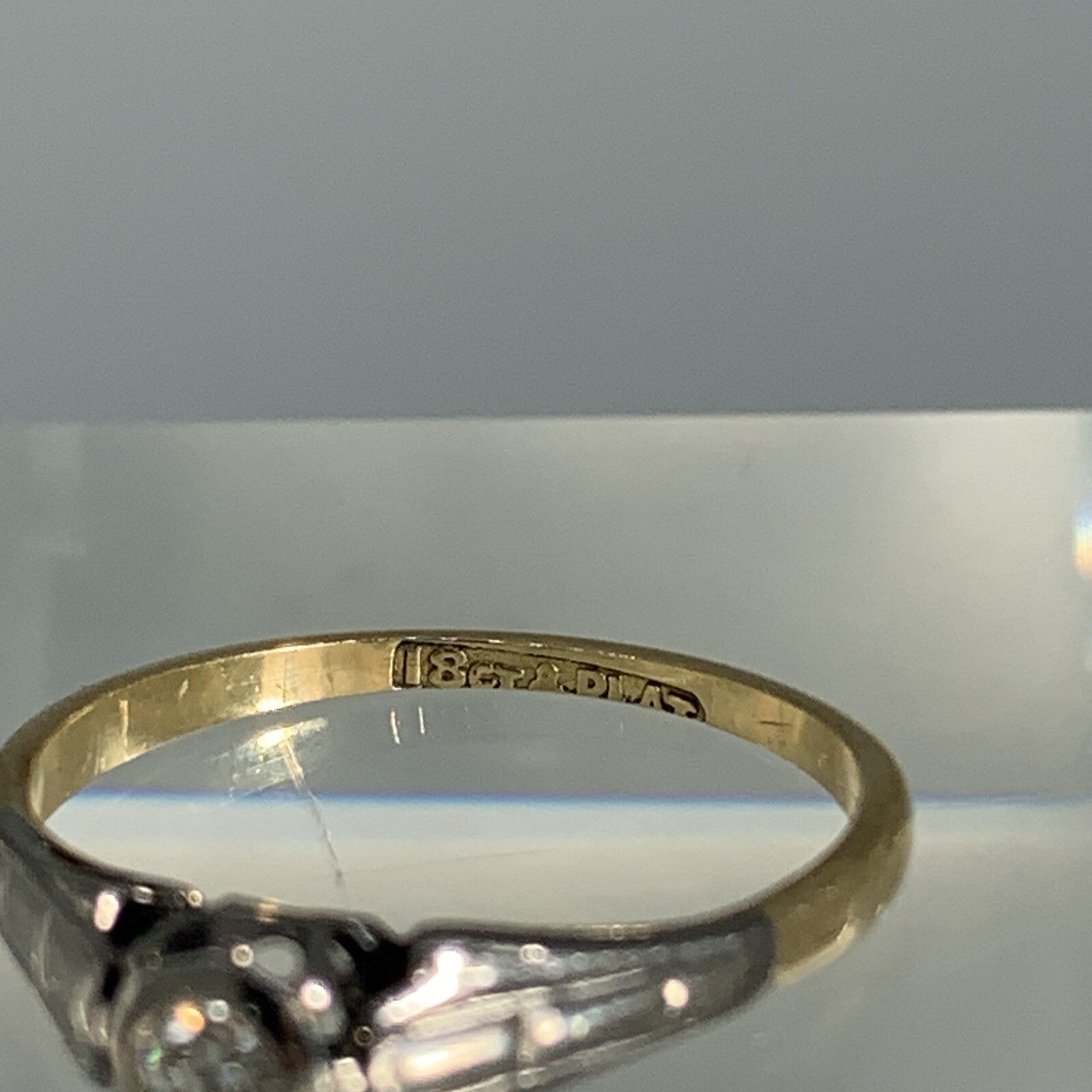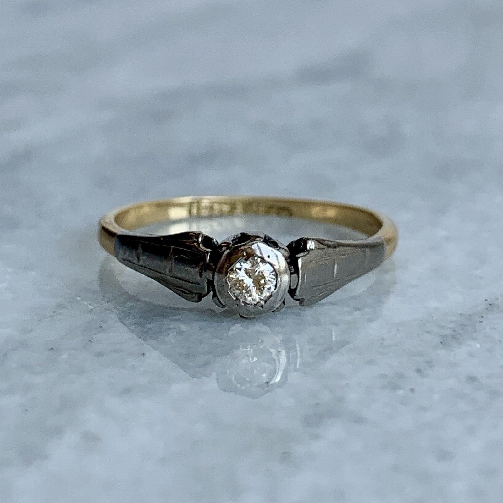 18 ct Gold Diamond Ring Antique Solitaire Platinum Set Yellow Gold - Size L