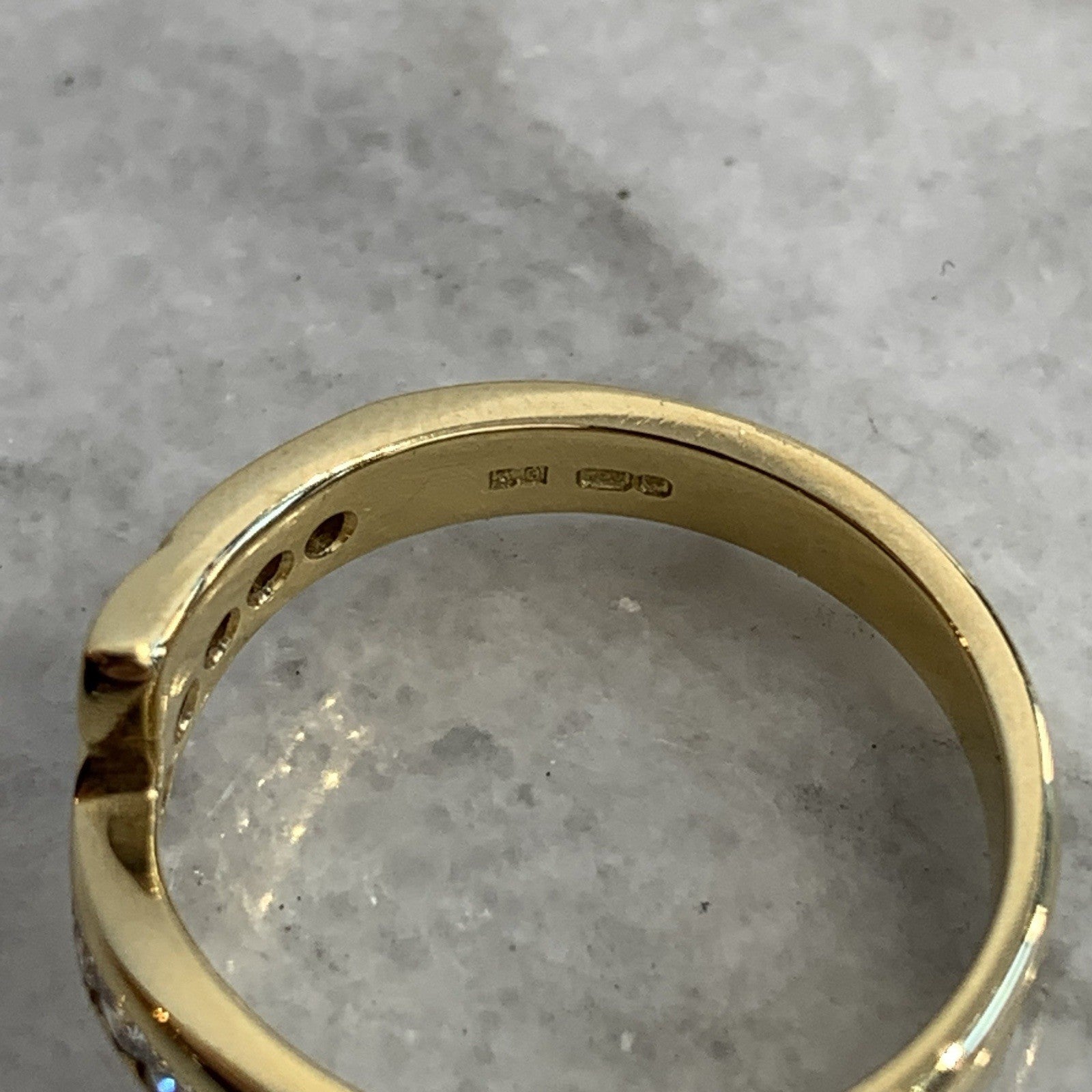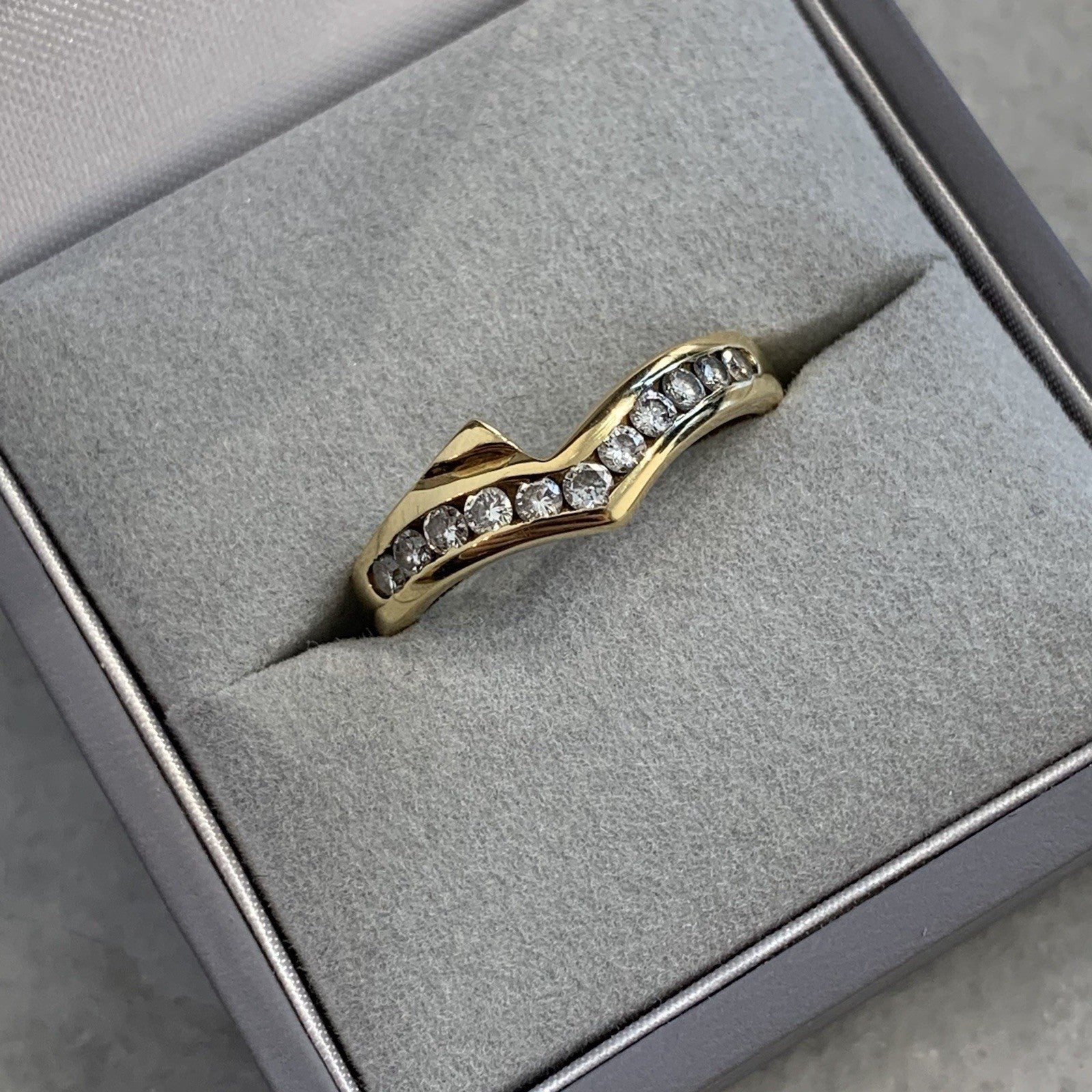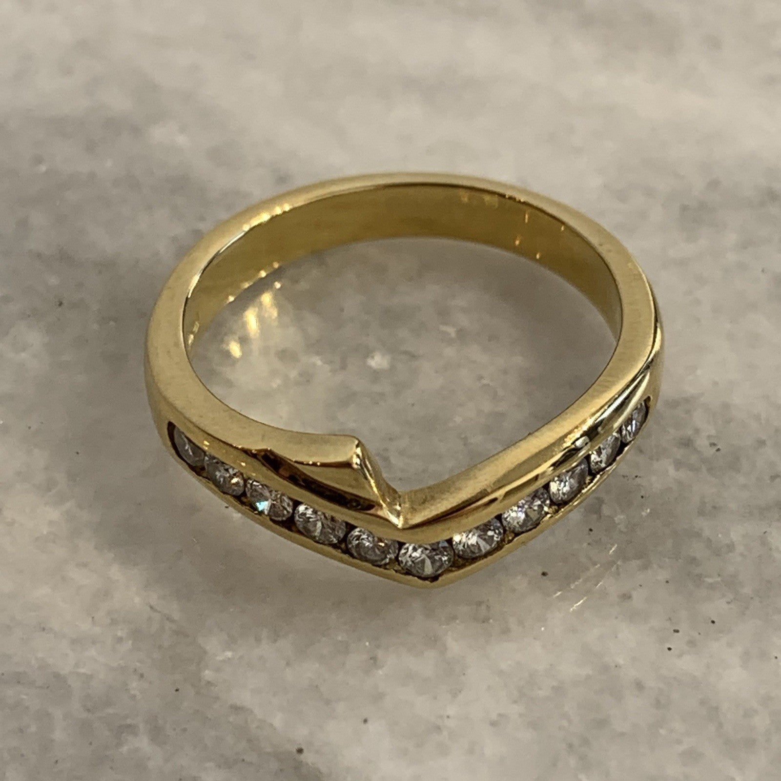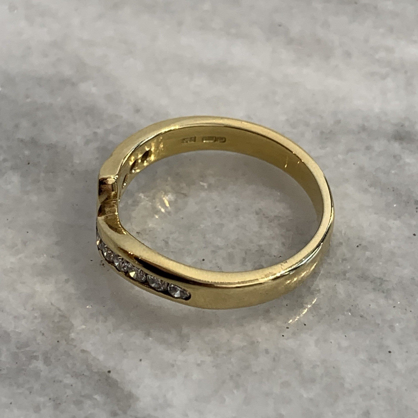 18 ct Gold Diamond Ring Channel Set Wishbone 750 Yellow Gold - Size L