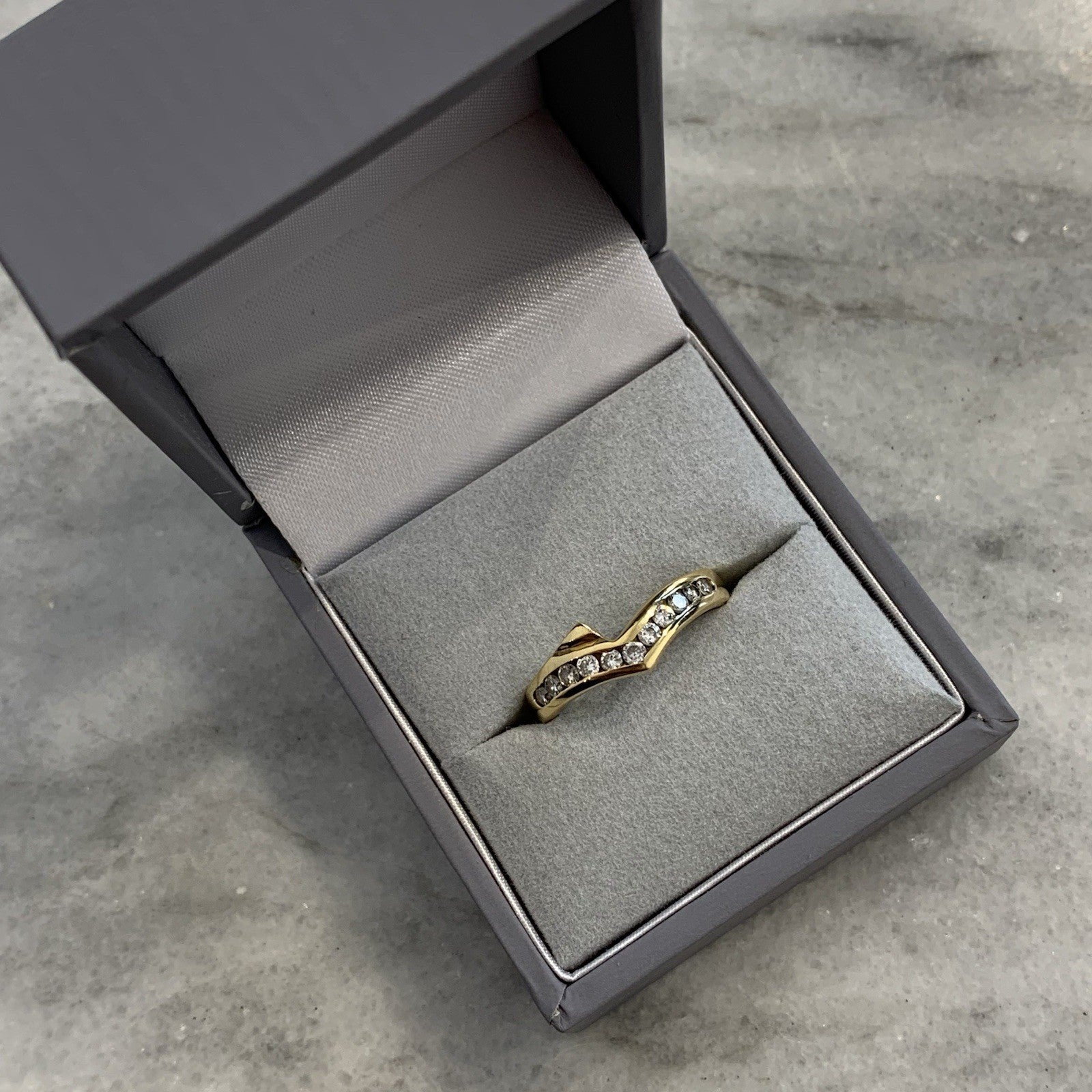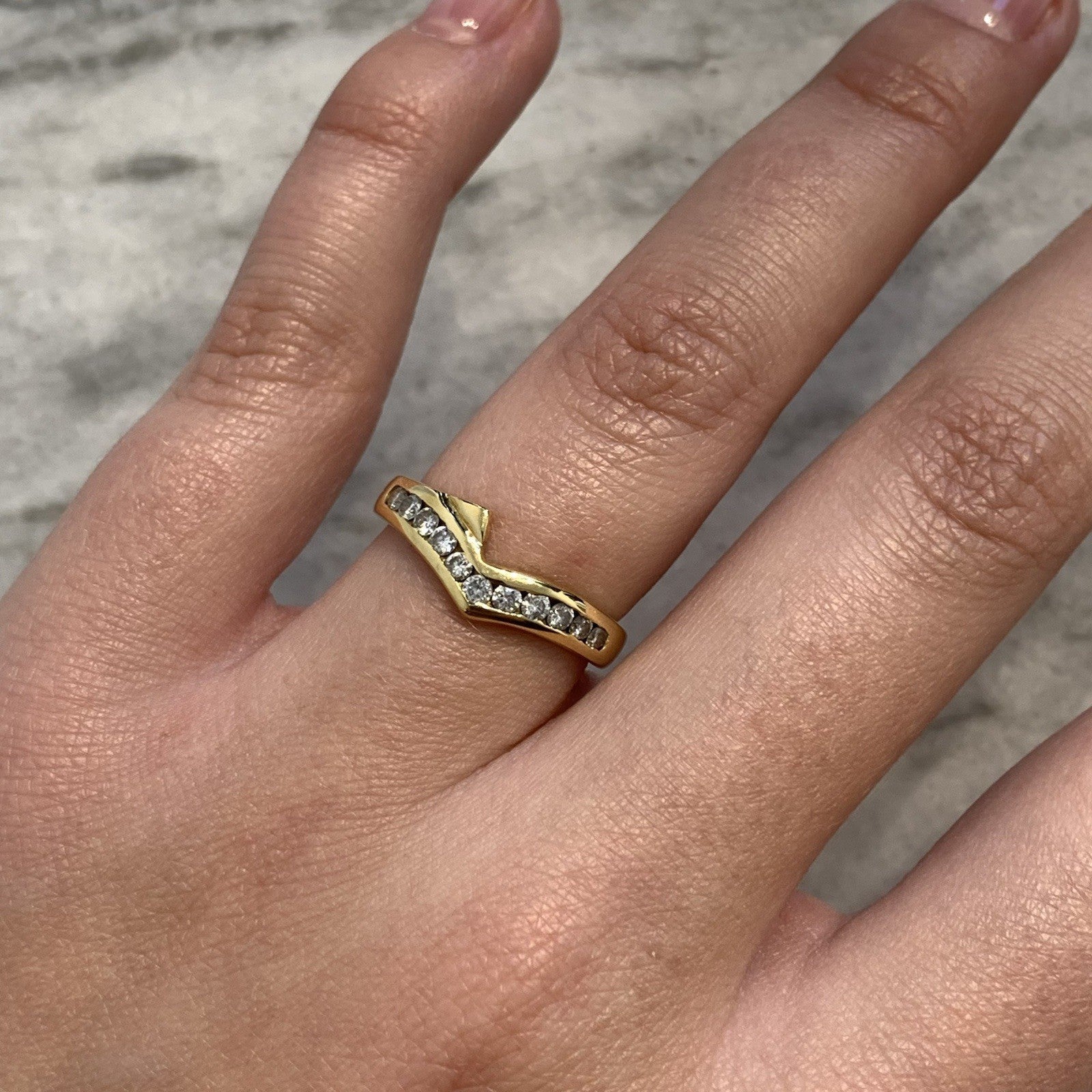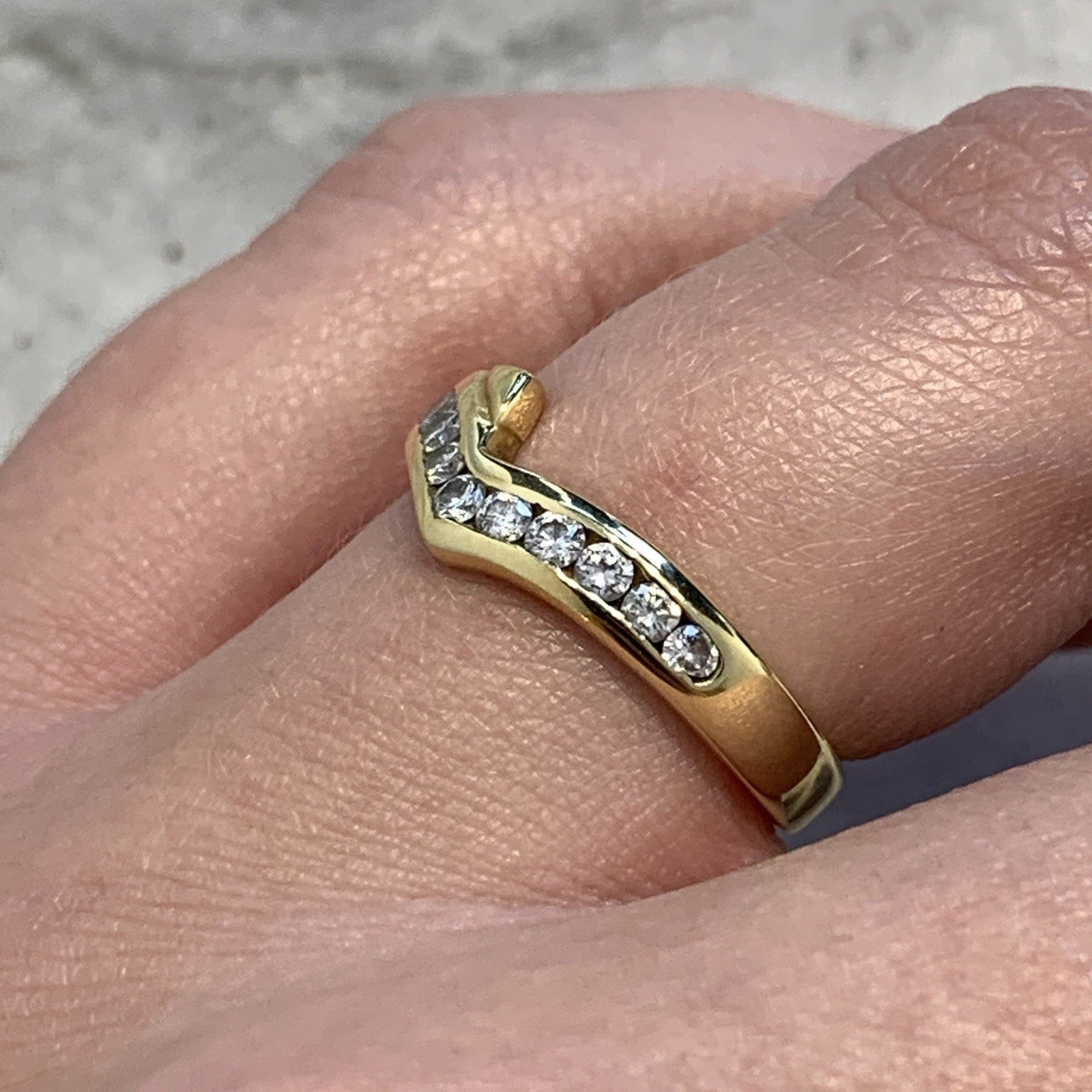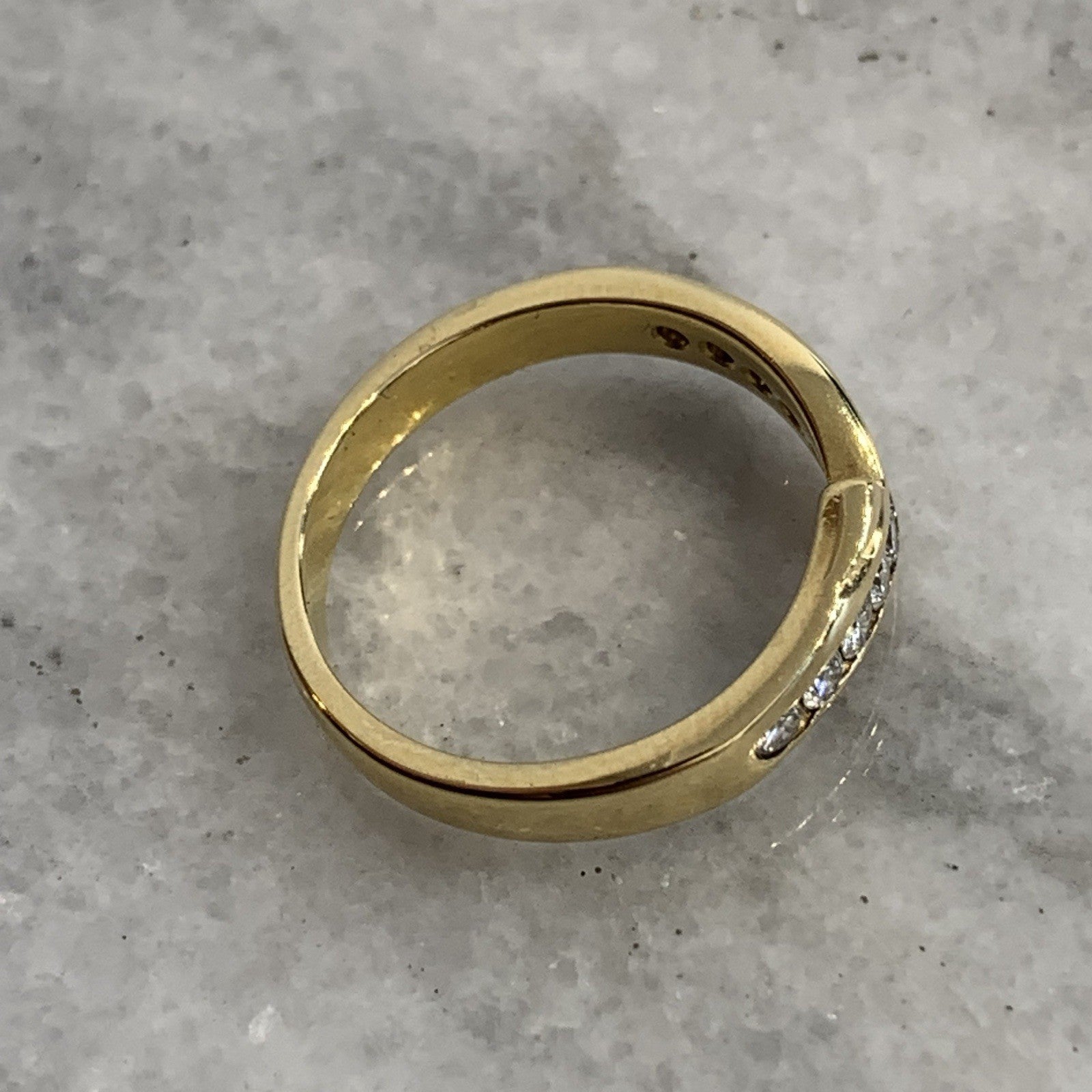 18 ct Gold Diamond Ring Channel Set Wishbone 750 Yellow Gold - Size L