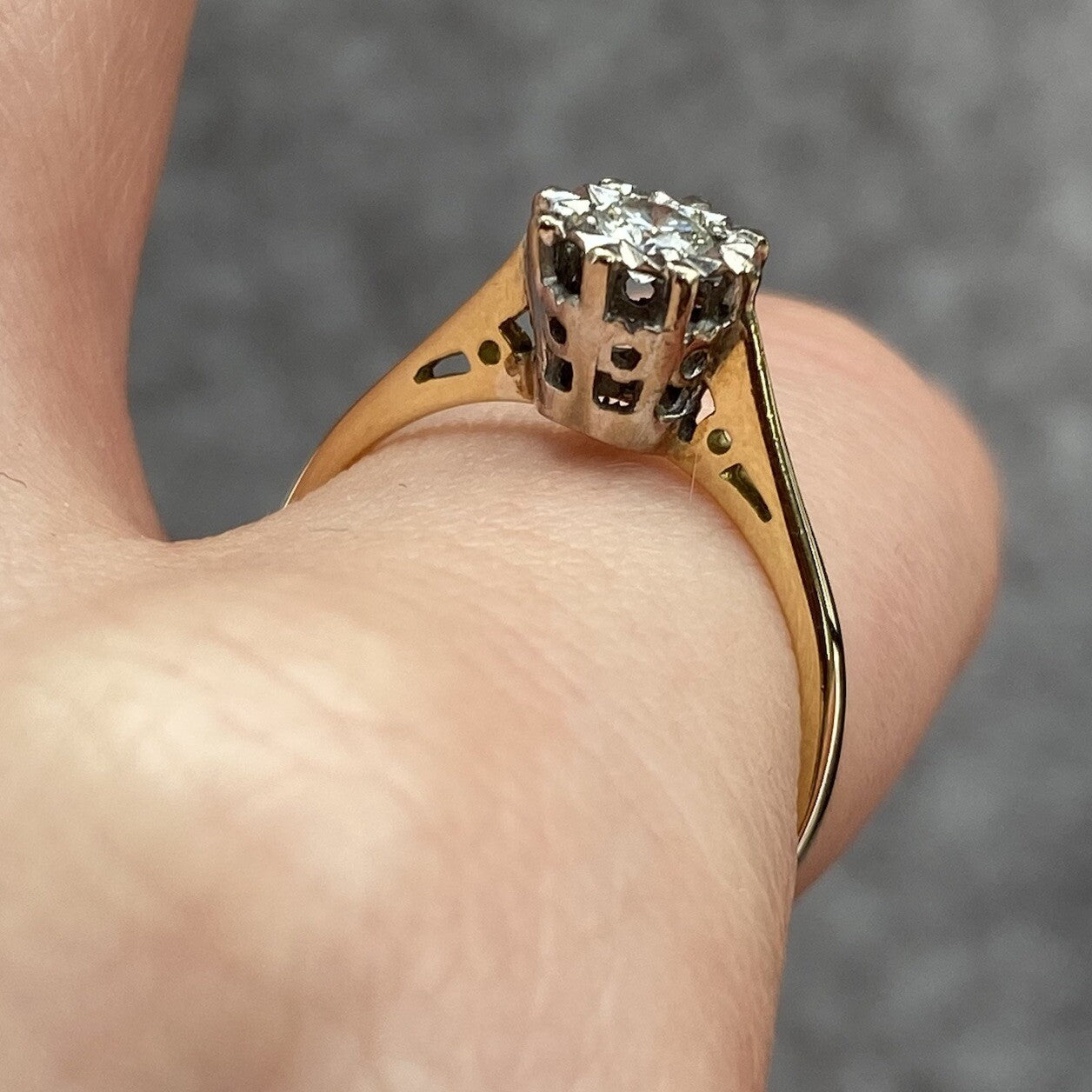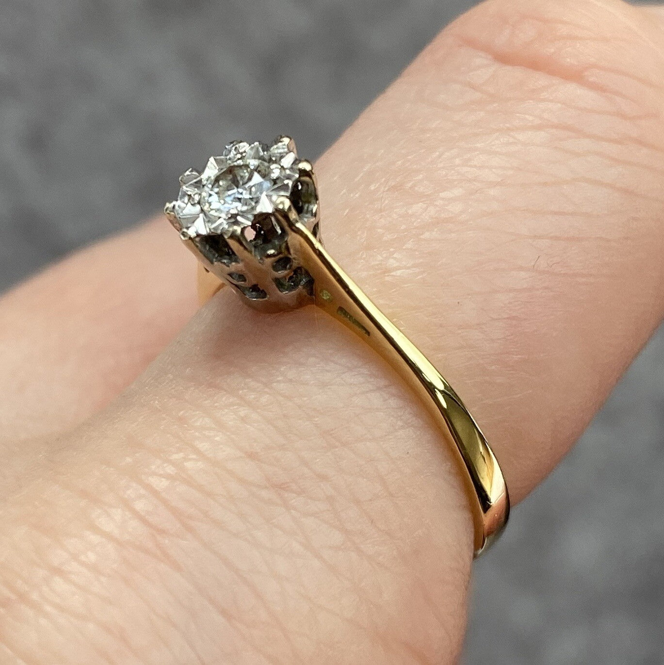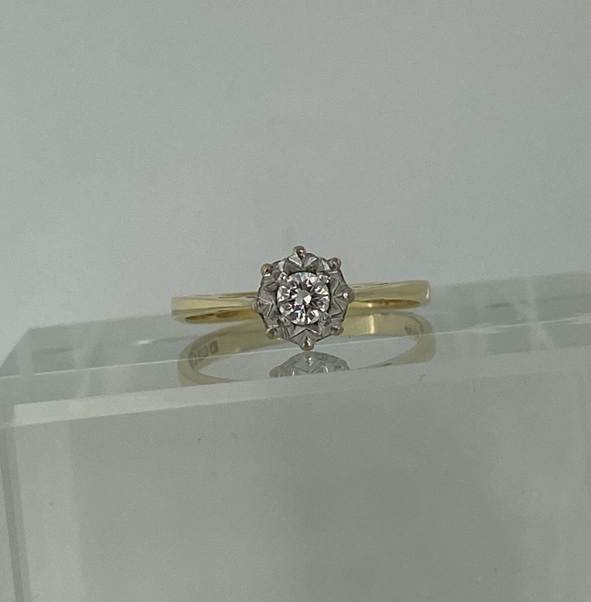 18 ct Gold Diamond Ring Illusion Solitaire setting in 750 Yellow Gold - Size O
