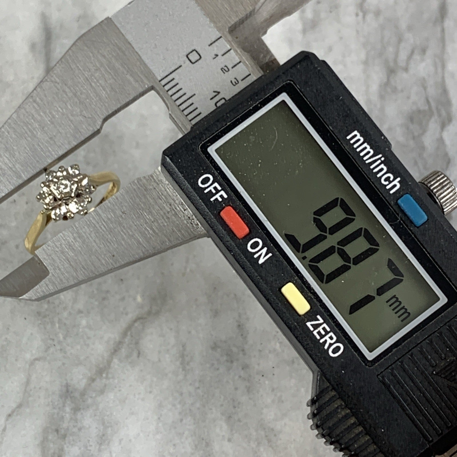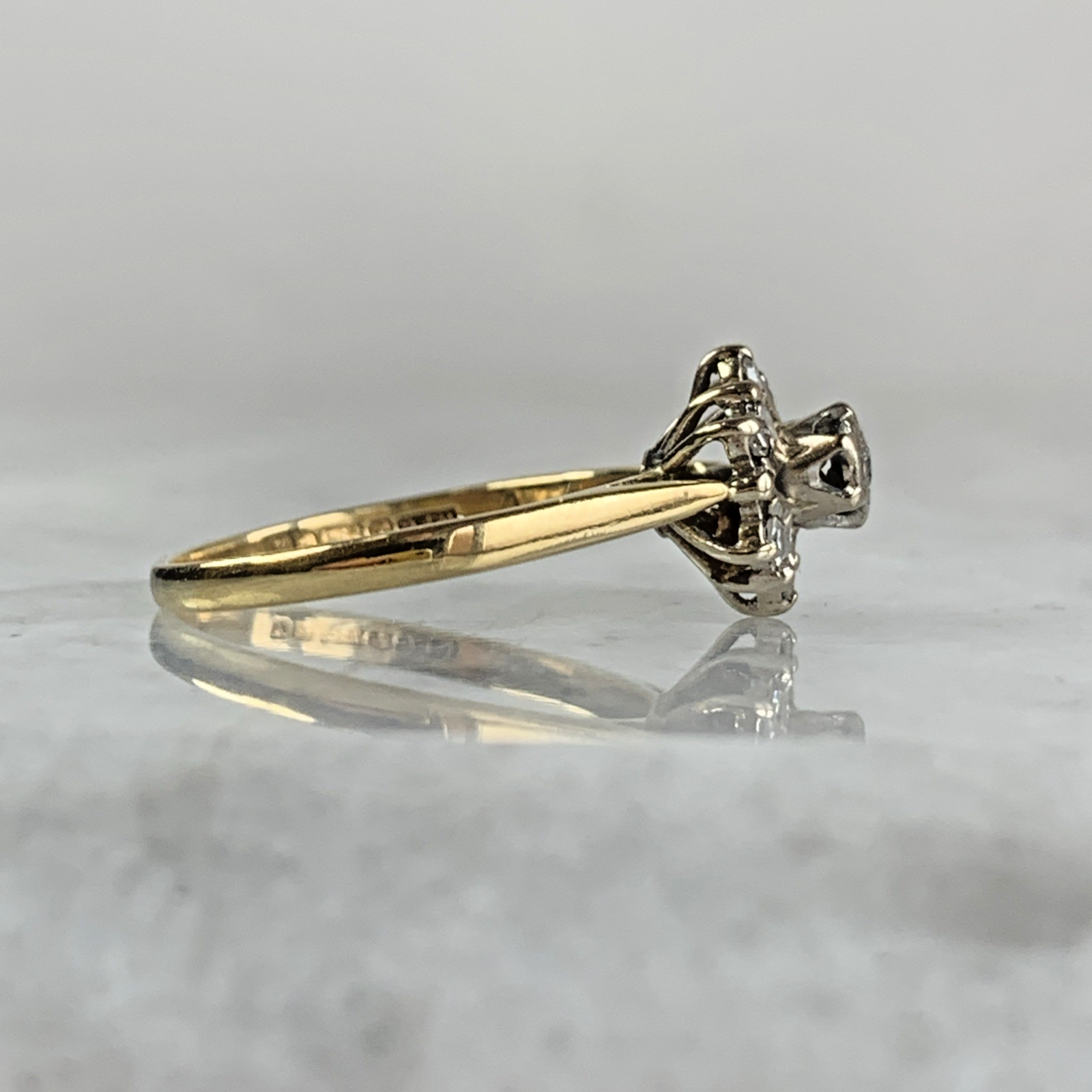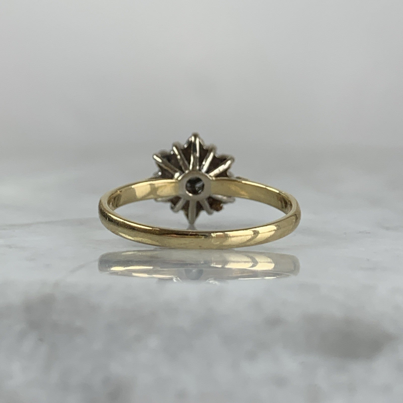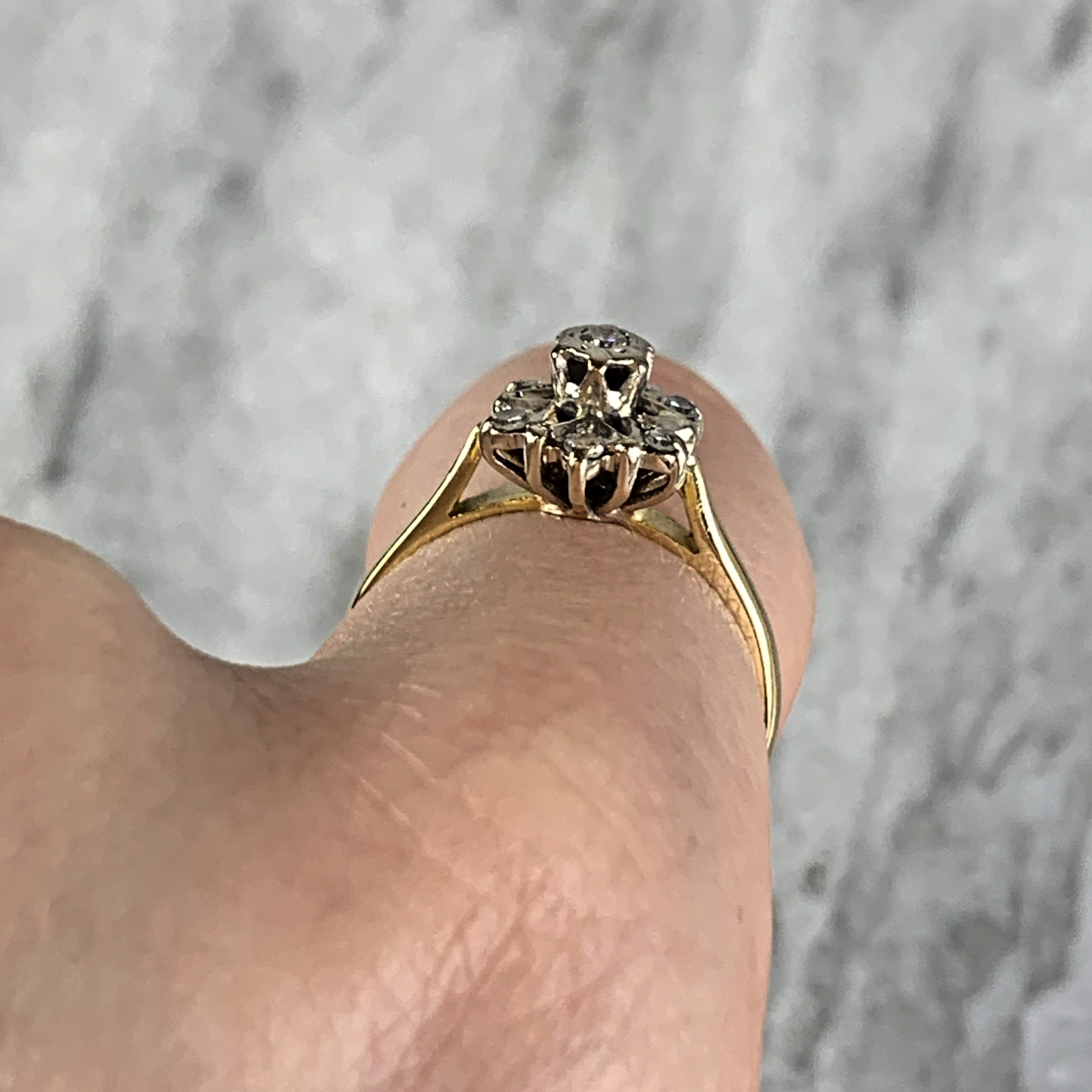 18 ct Gold Diamond Ring Tiered Daisy Flower Cluster 750 Yellow Gold - Size N