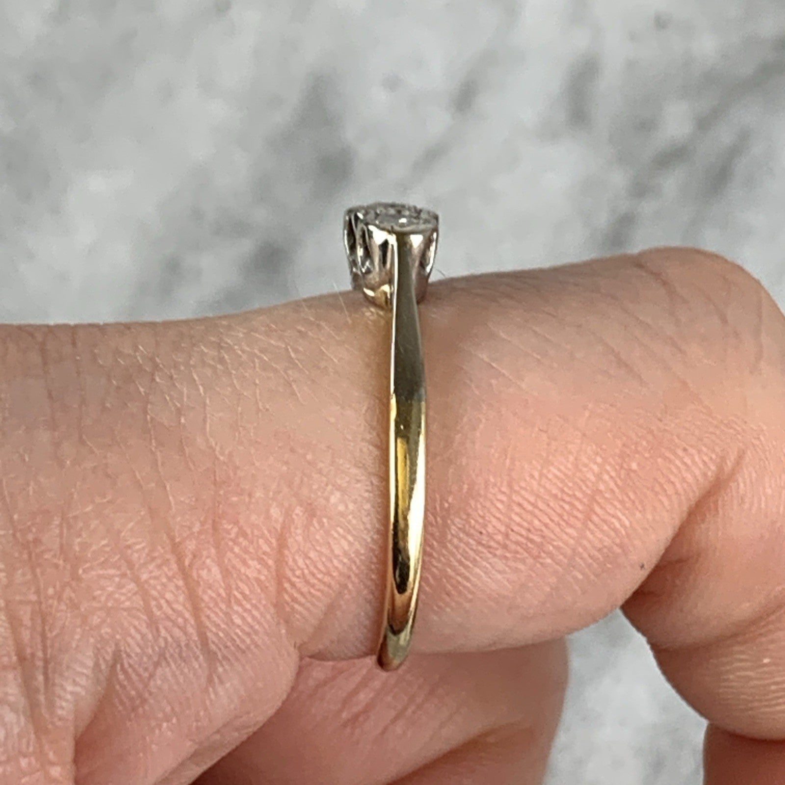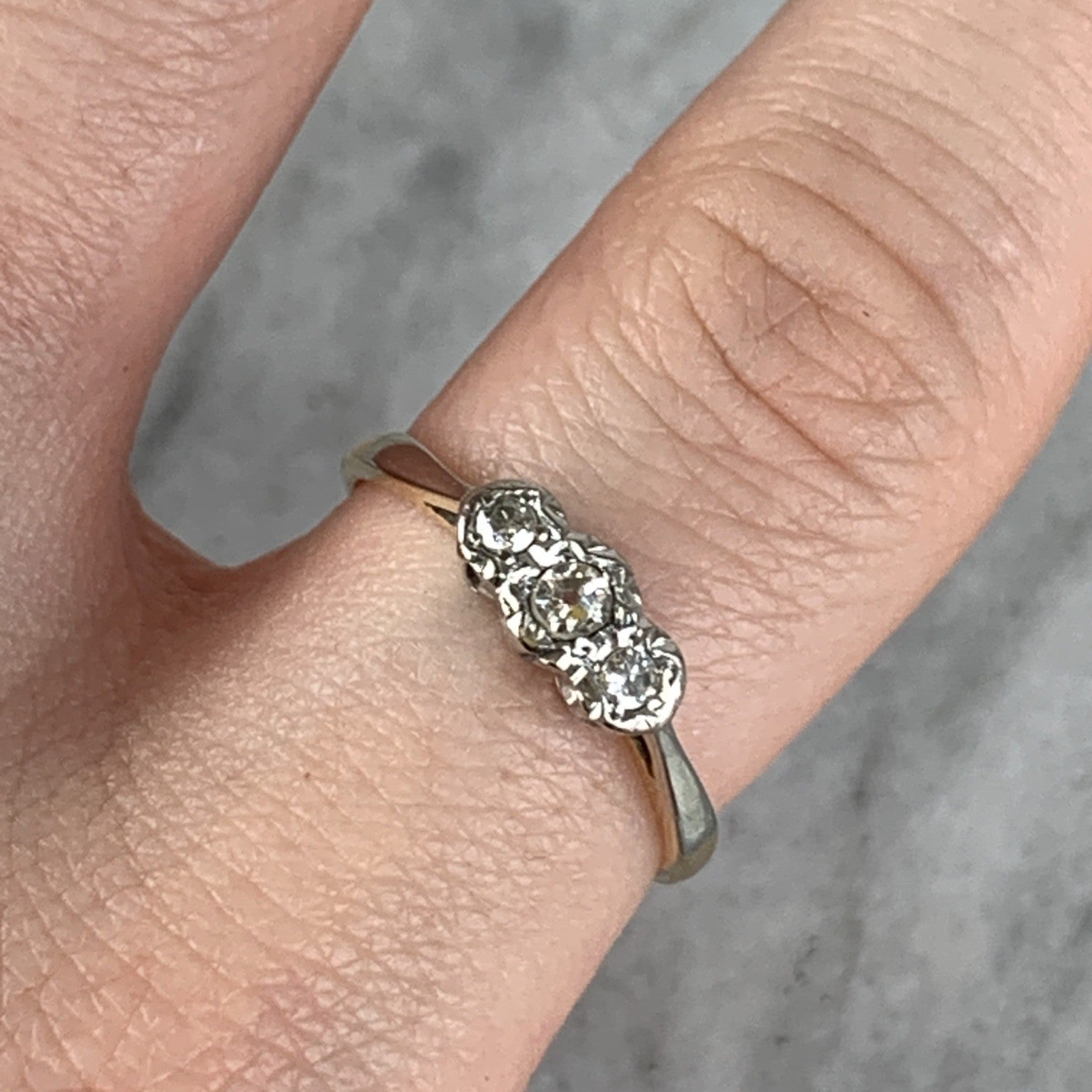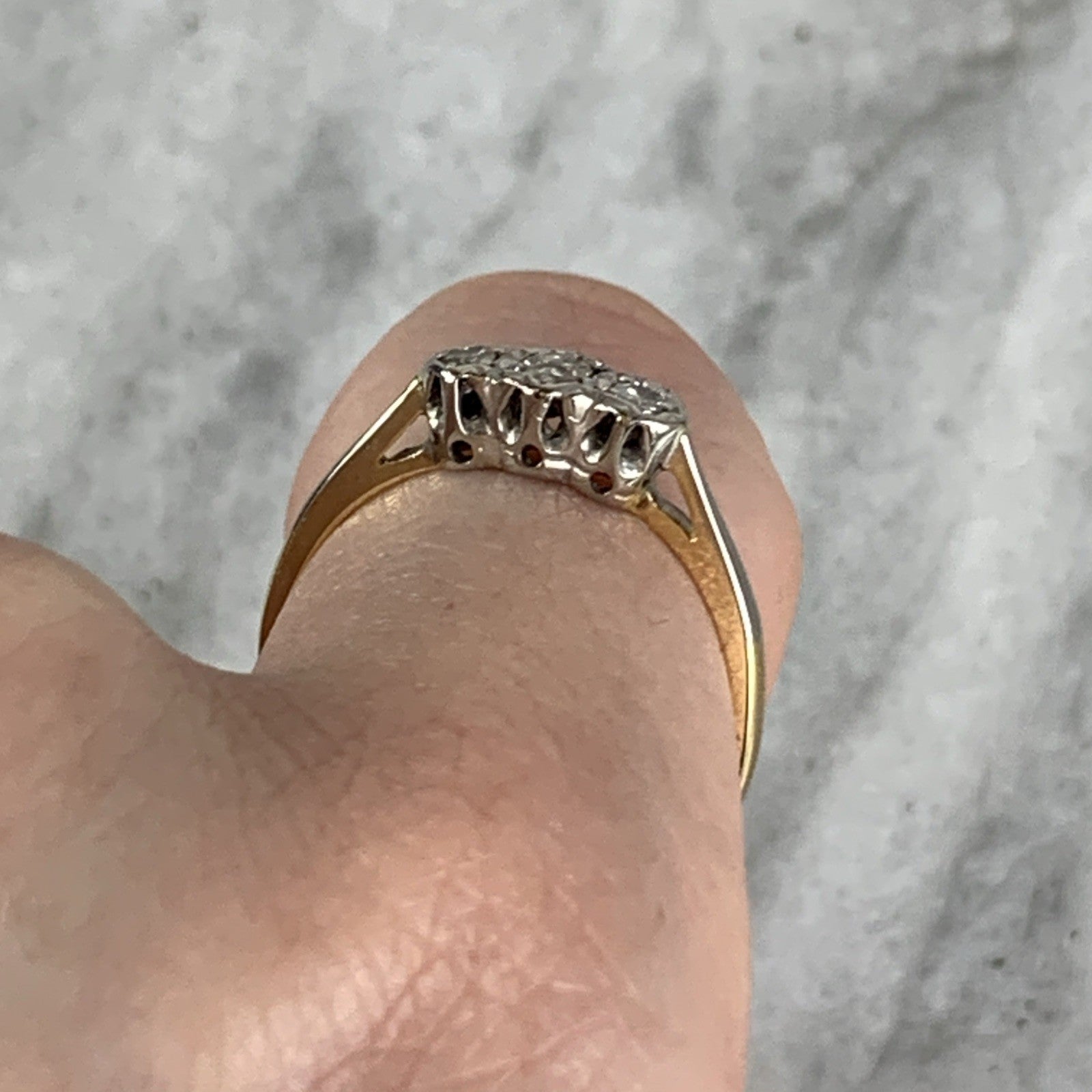 18 ct Gold Diamond Ring Trilogy Platinum Set in 750 Yellow Gold - Size P