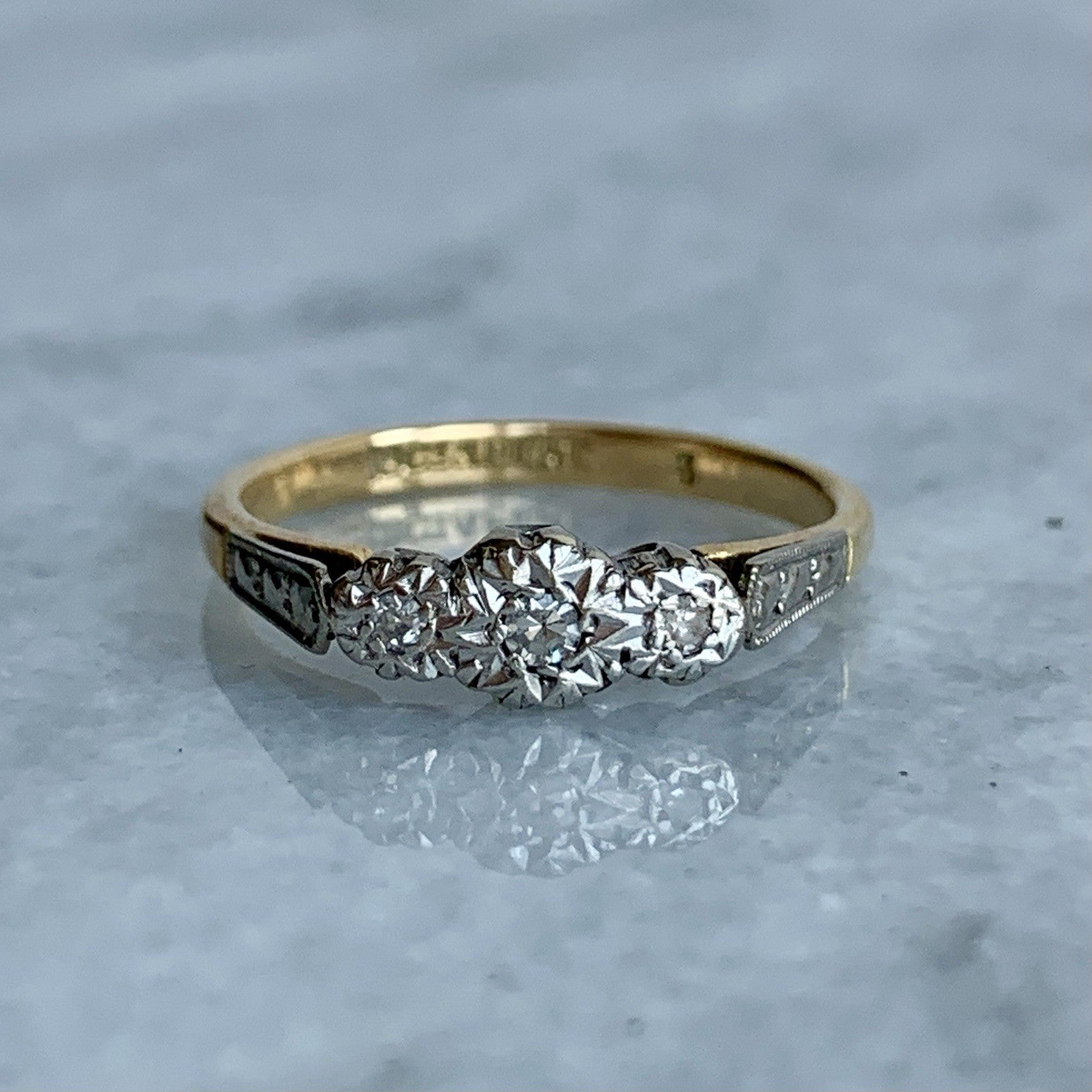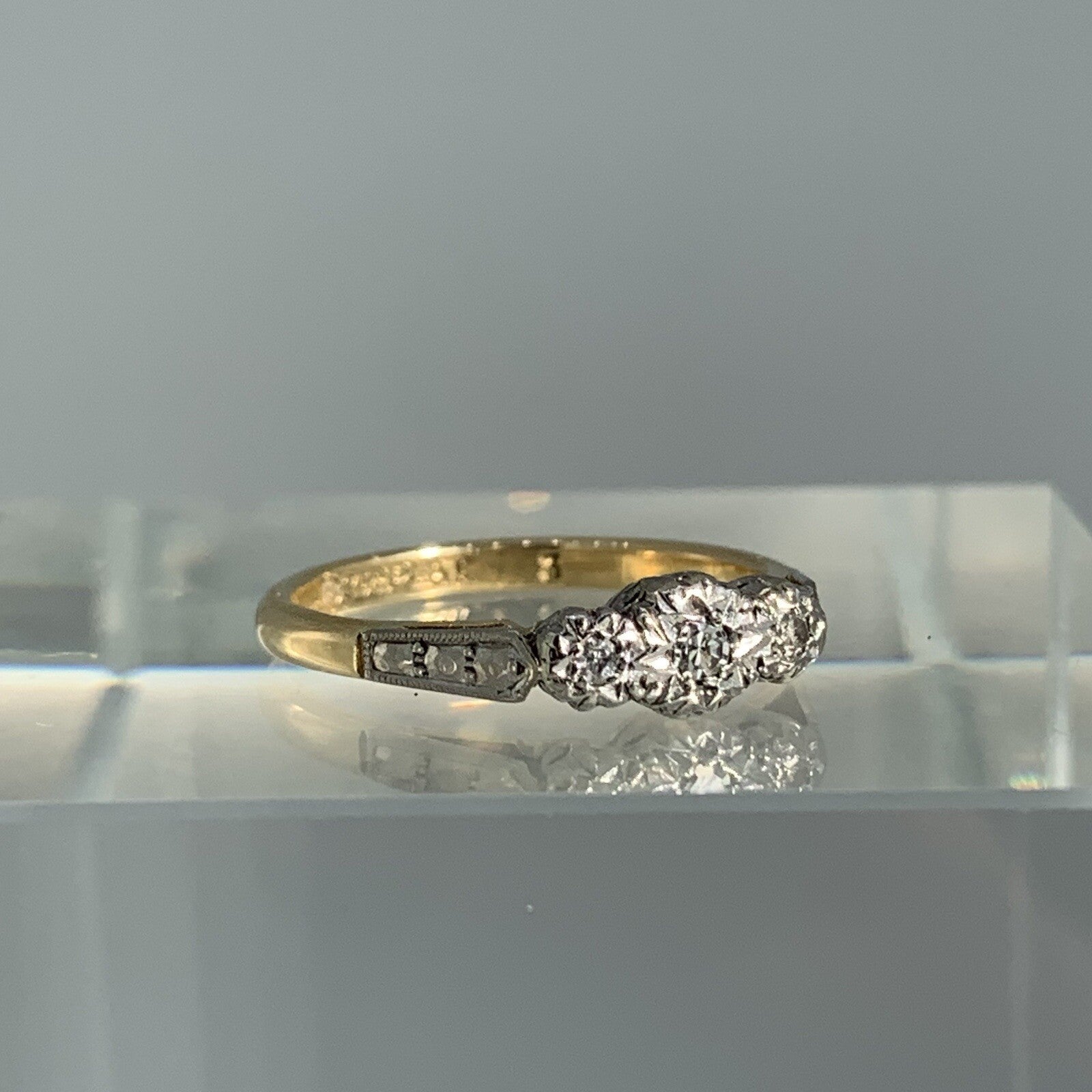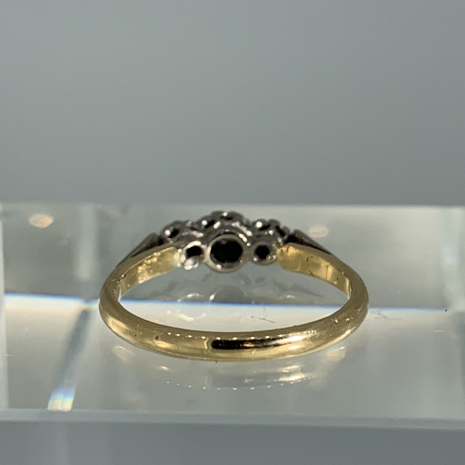 18 ct Gold Diamond Ring Trilogy Platinum Setting Yellow Gold - Size N