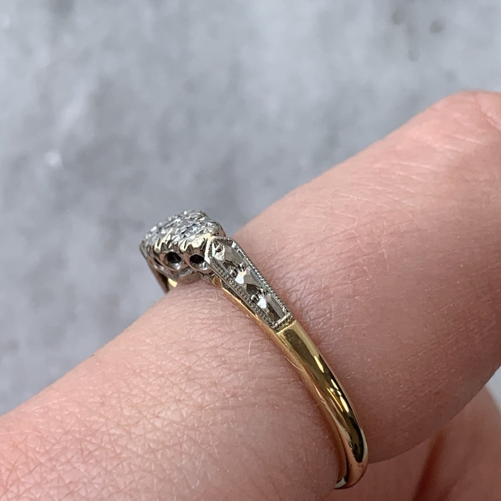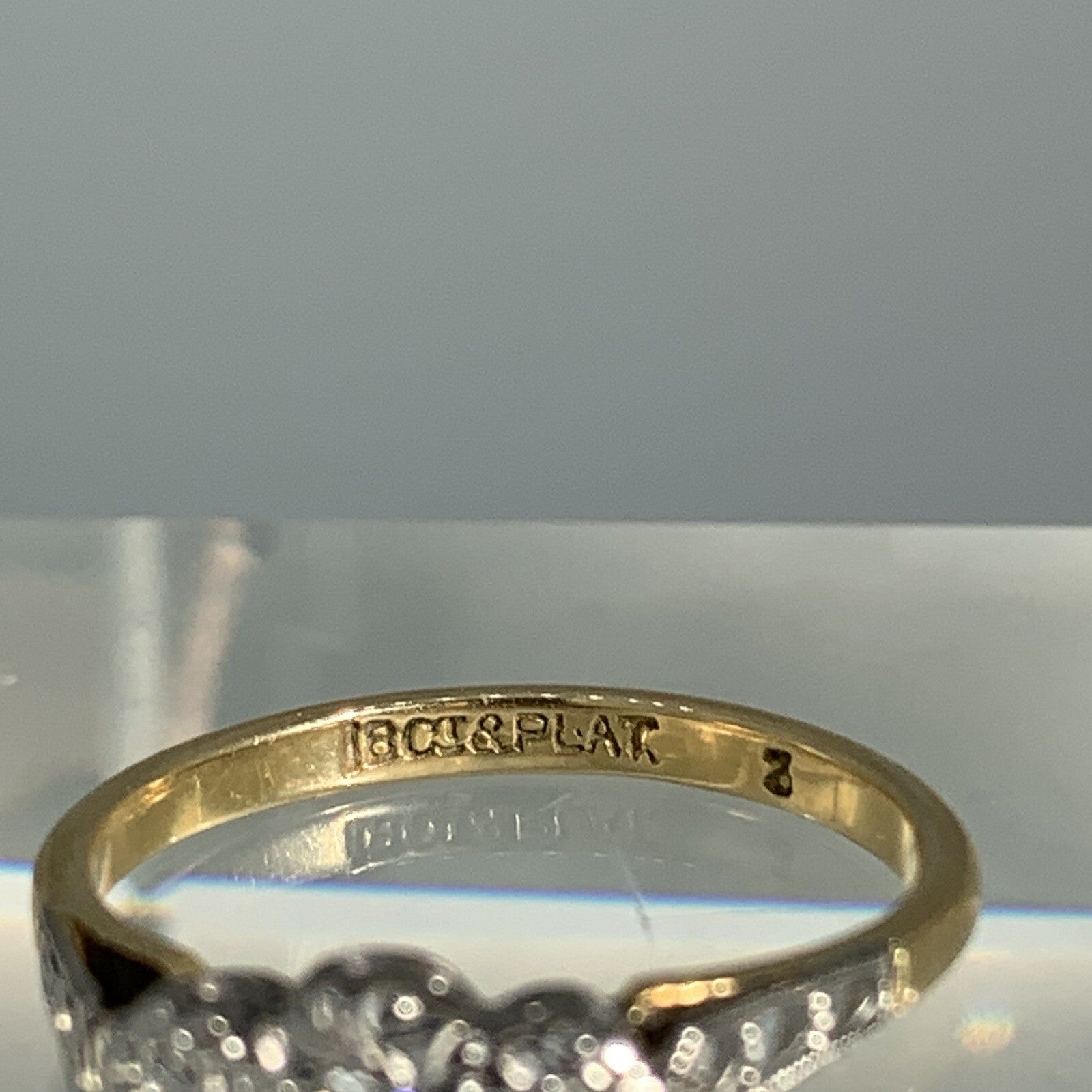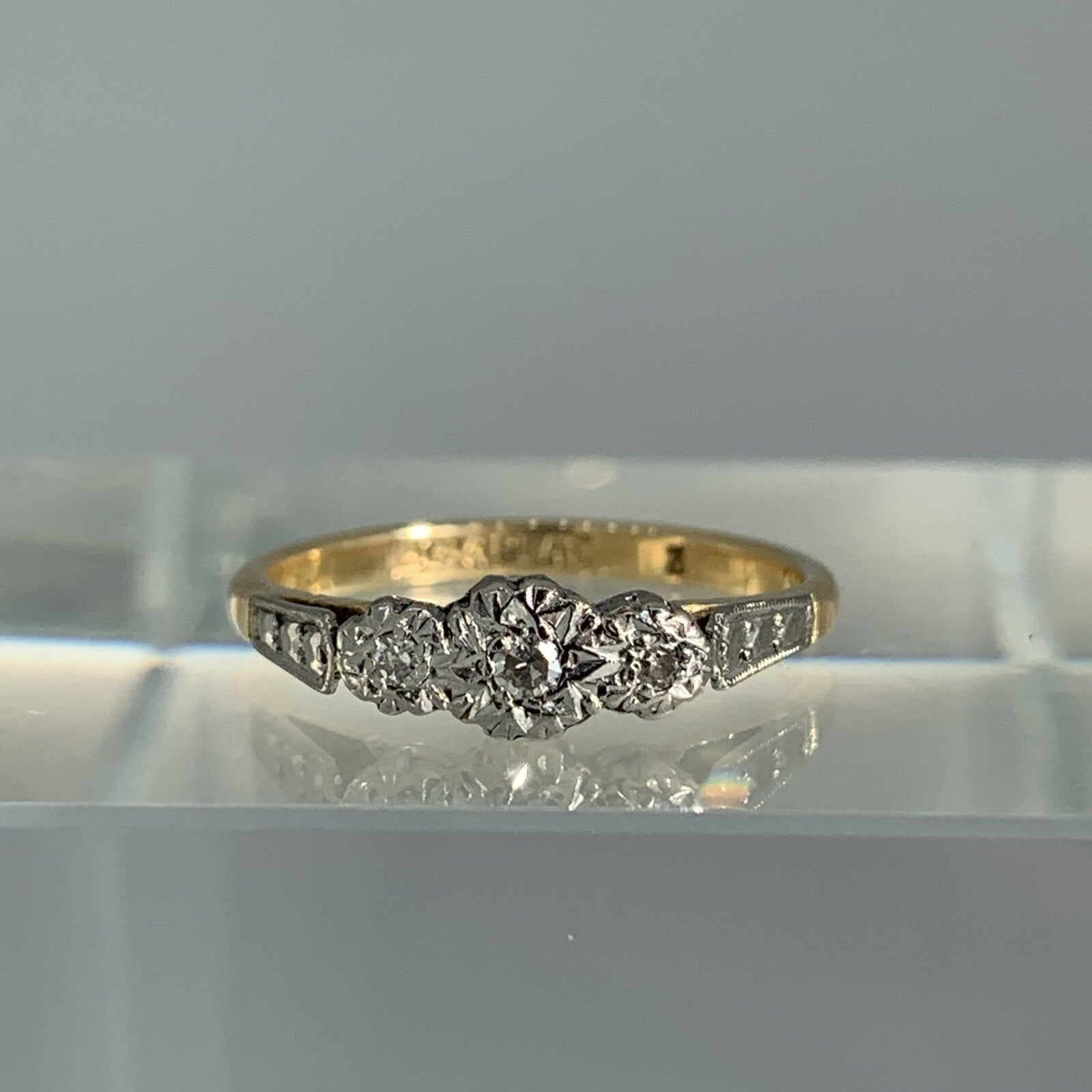 18 ct Gold Diamond Ring Trilogy Platinum Setting Yellow Gold - Size N