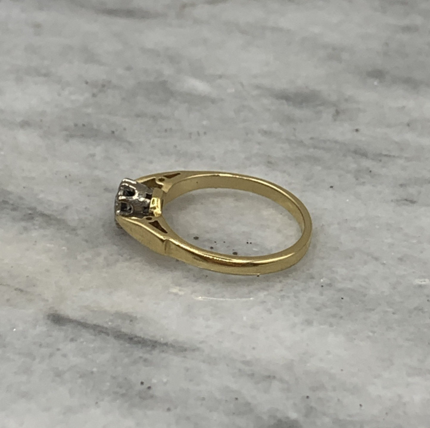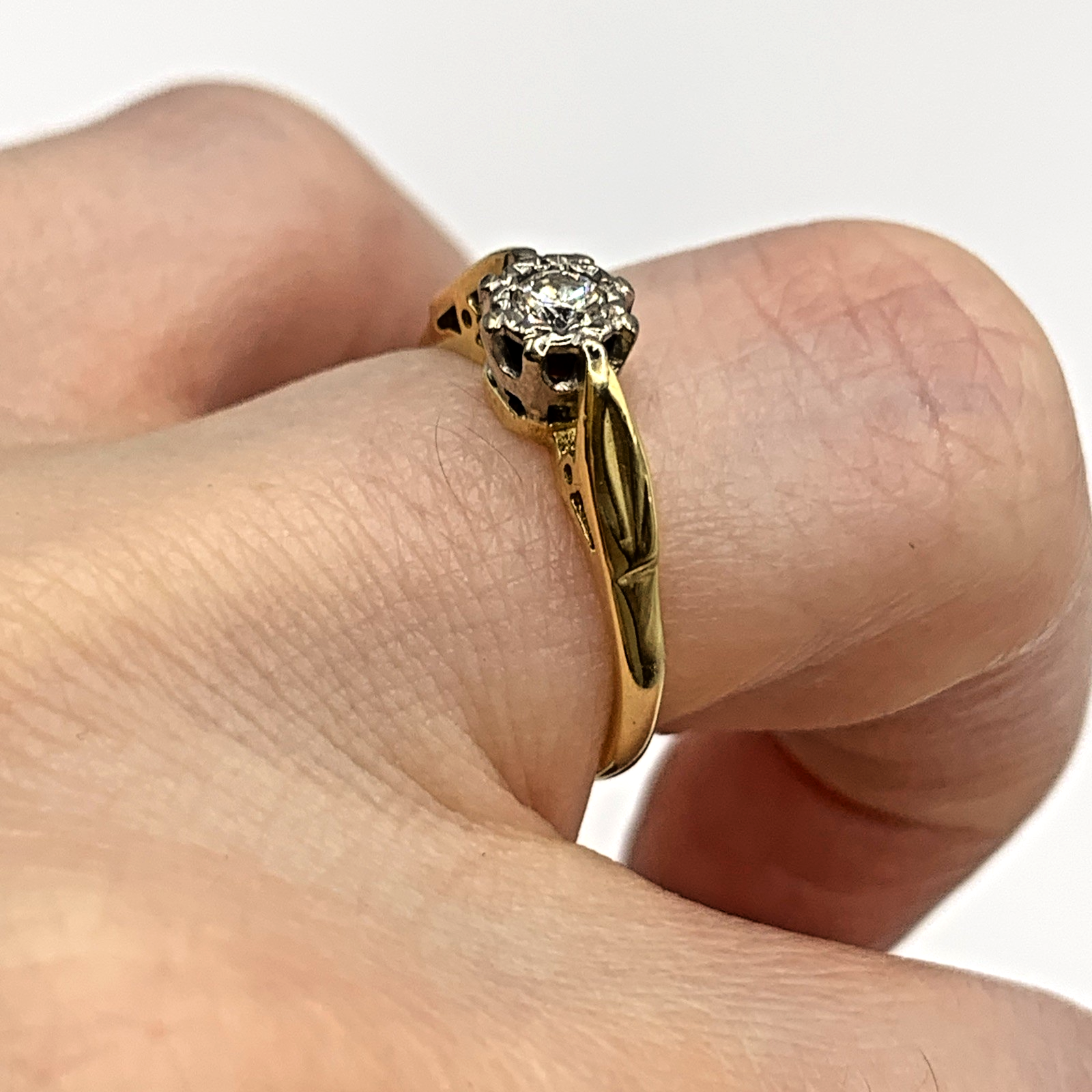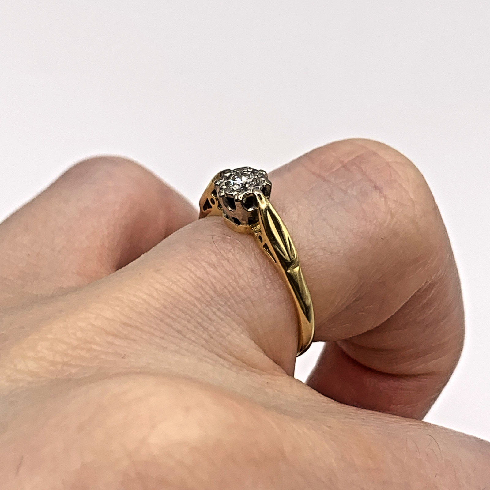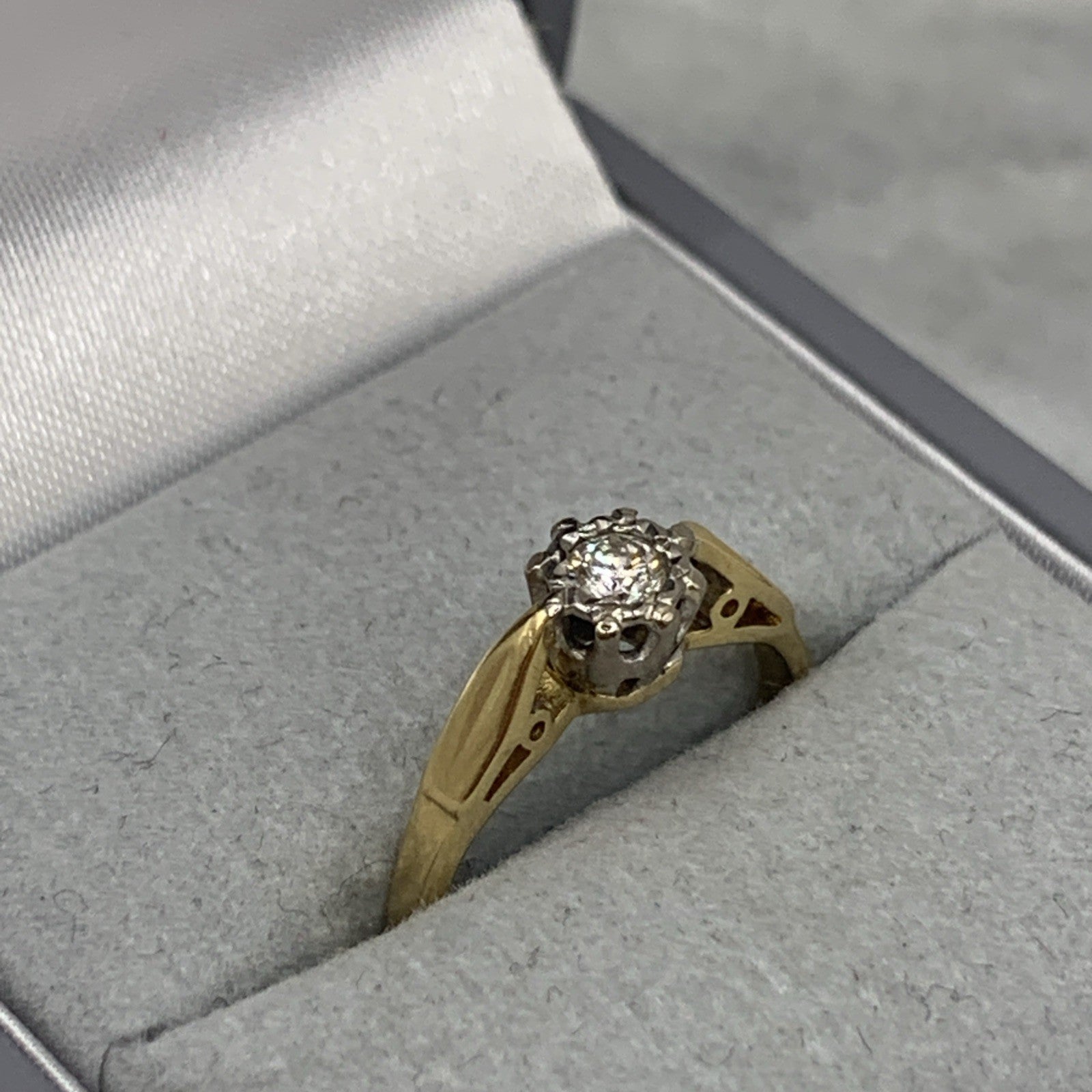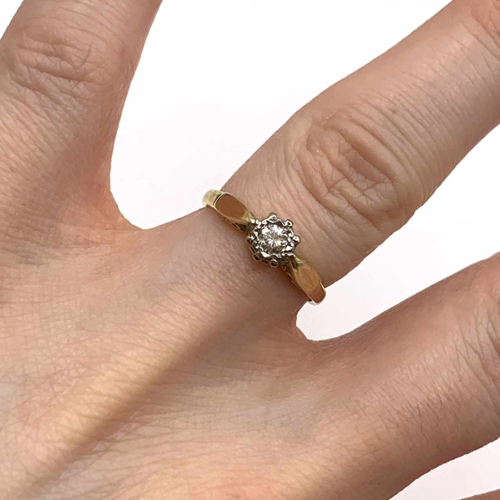18 ct Gold Diamond Solitaire Illusion Ring 18k Yellow Gold - Size I 1/2