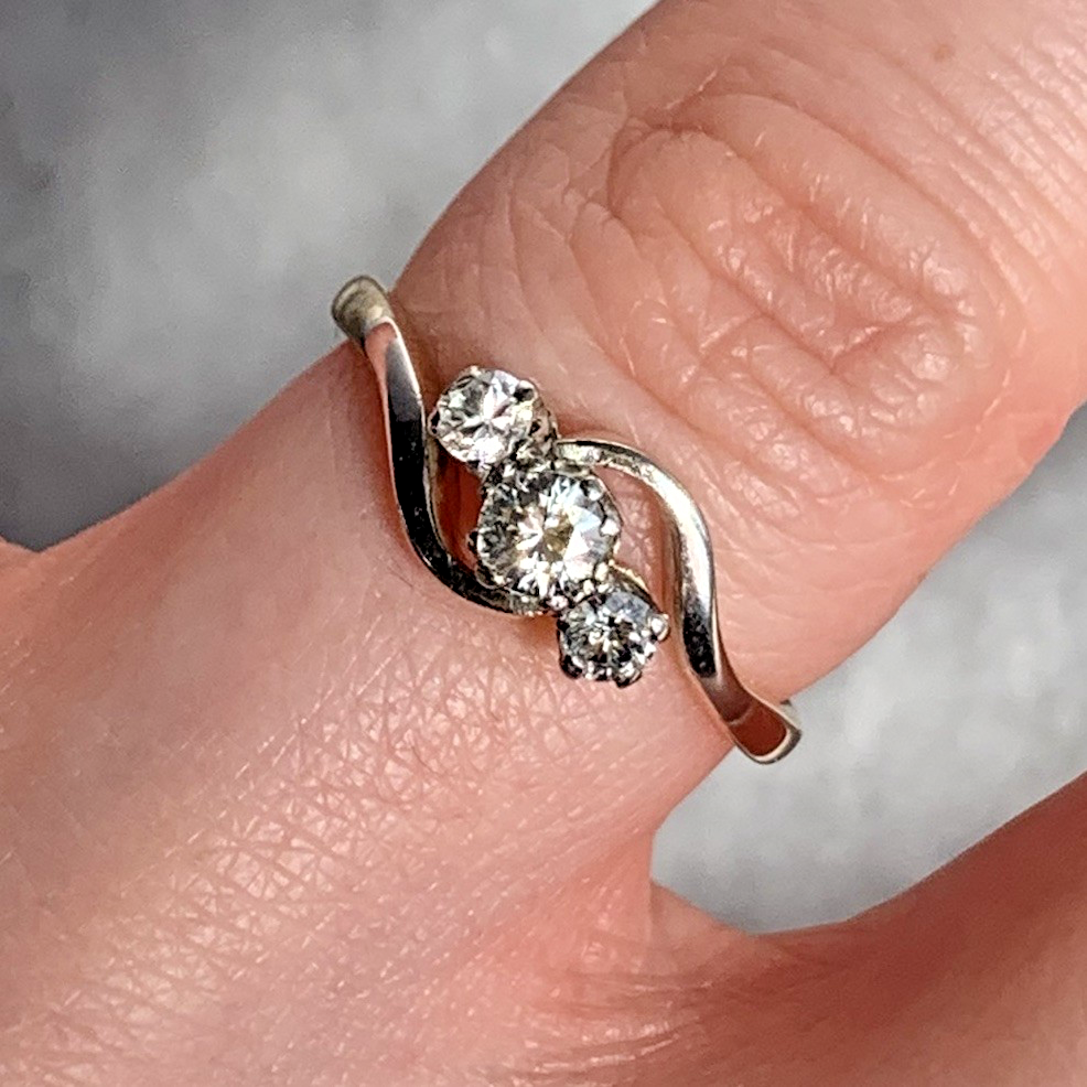 18 ct Gold Diamond Trilogy Platinum Set Bypass Ring - Size J
