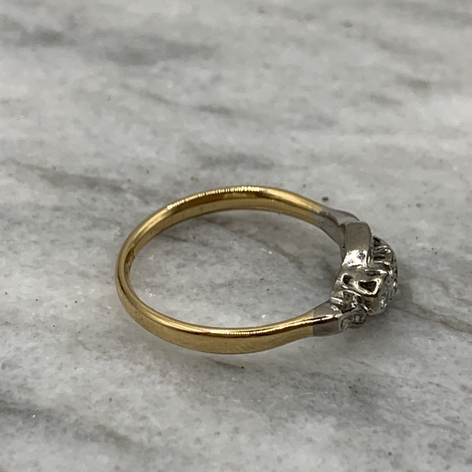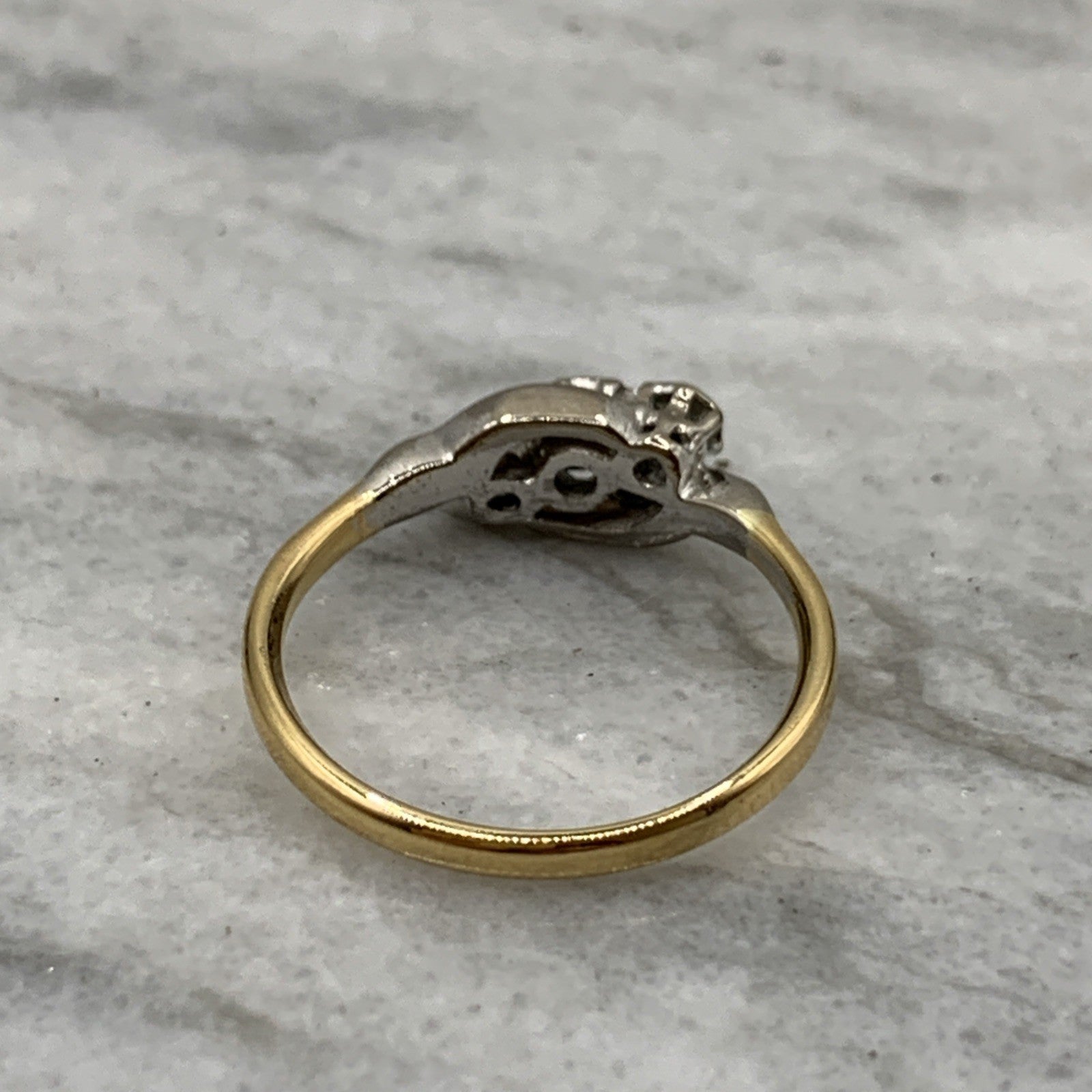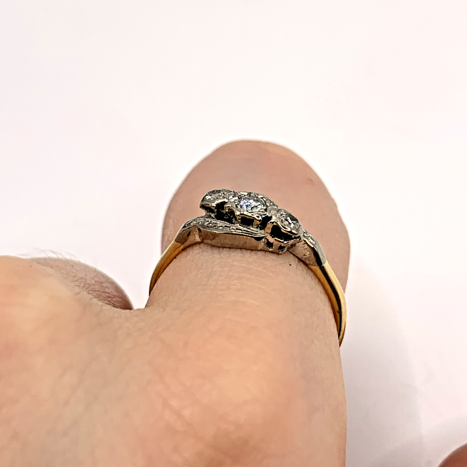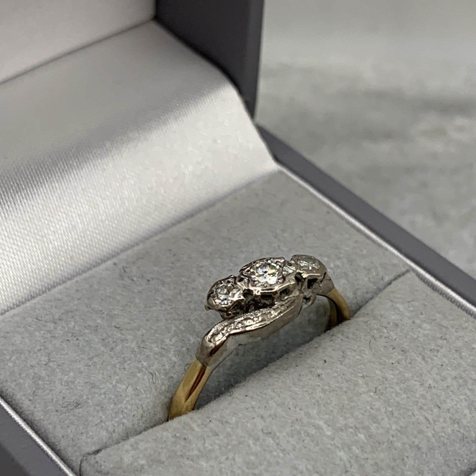 18 ct Gold Diamond Trilogy Platinum Set Ring 750 Yellow Gold - Size N