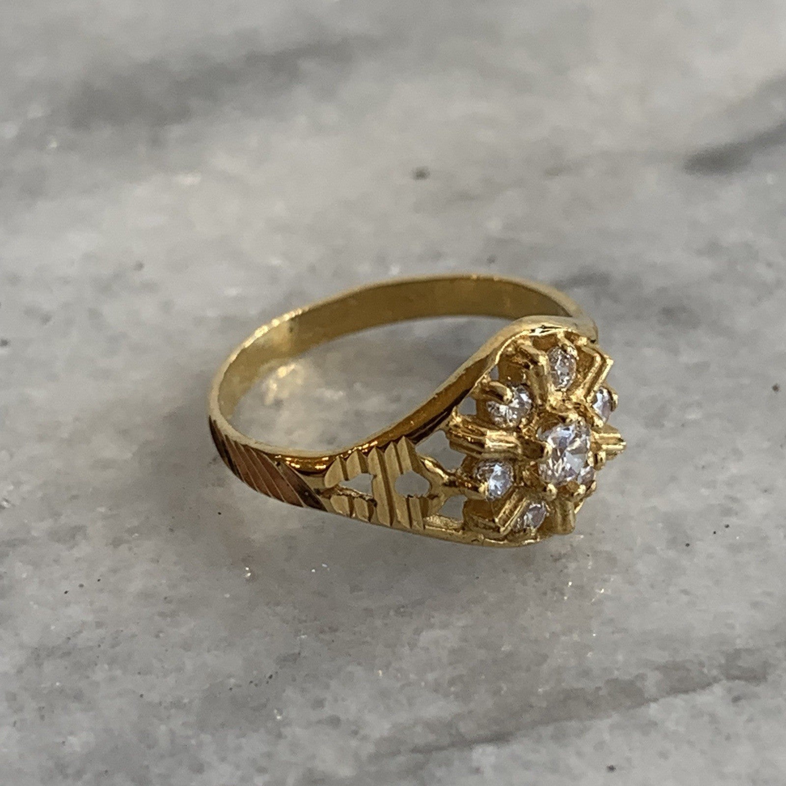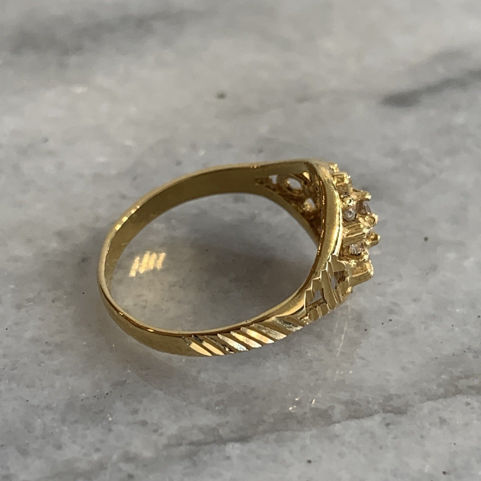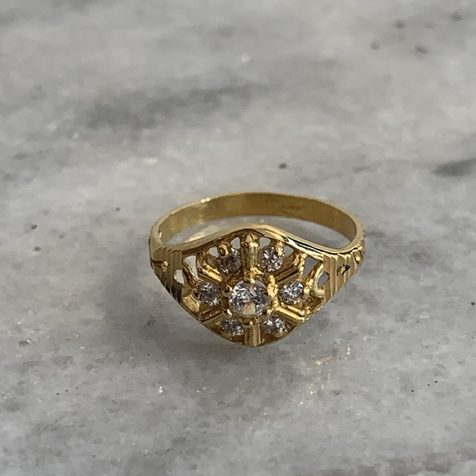 A charming small childs / kids / junior ring featuring a cluster of cubic zirconia's with beautifully crafted shoulders.
