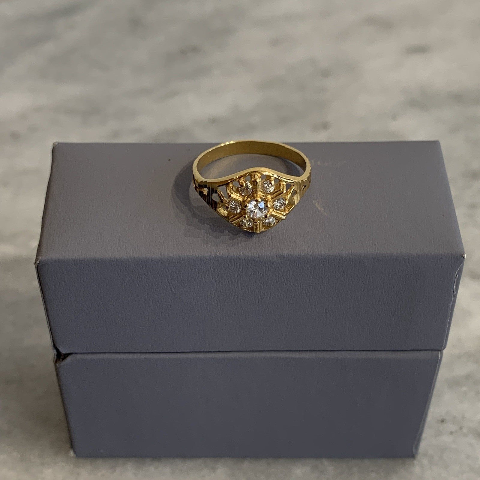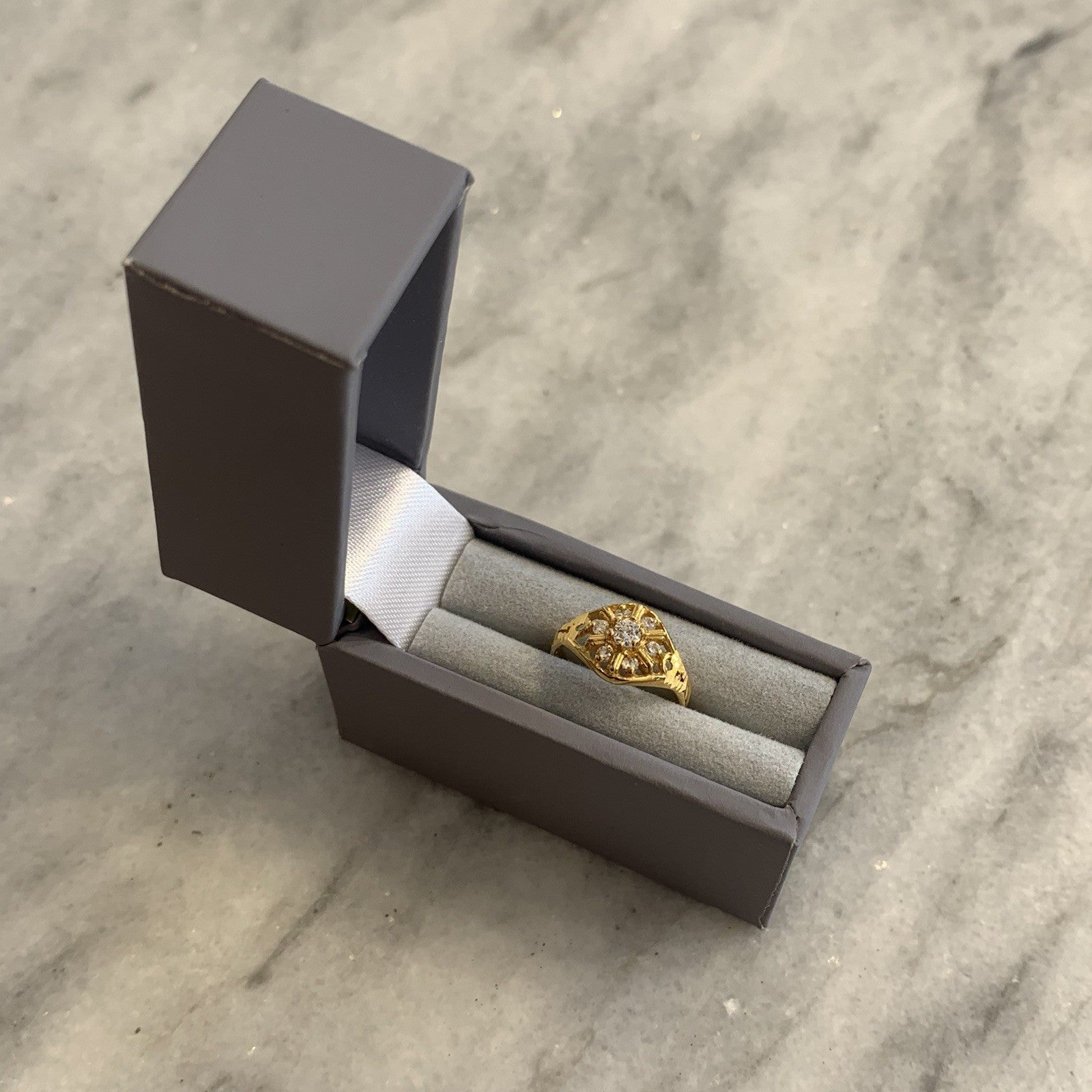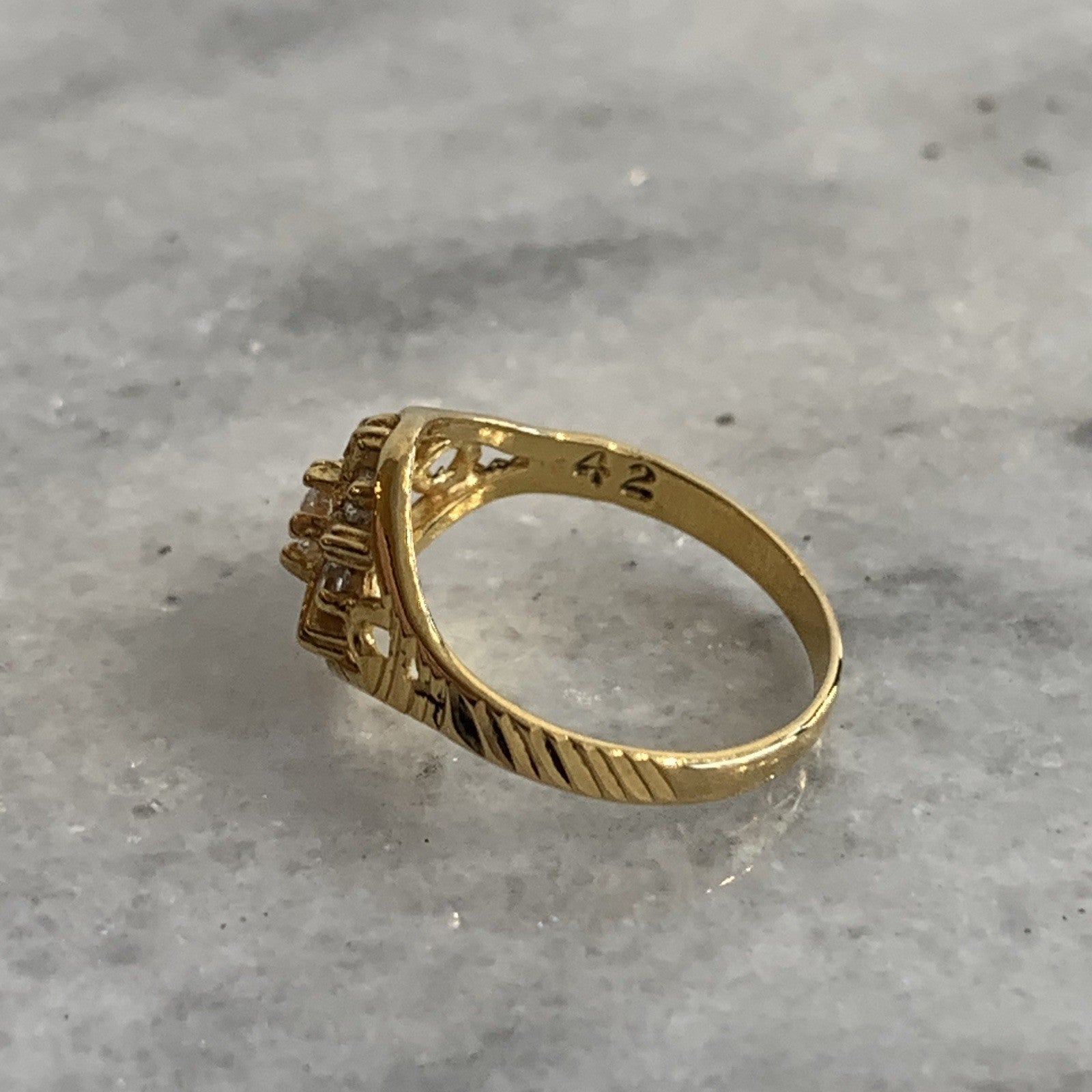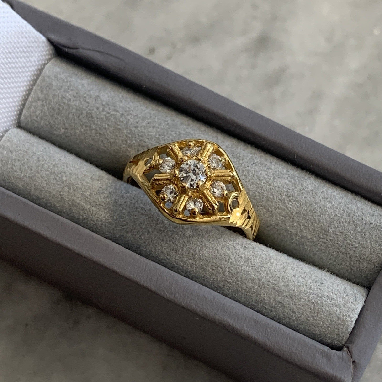 A charming small childs / kids / junior ring featuring a cluster of cubic zirconia's with beautifully crafted shoulders.