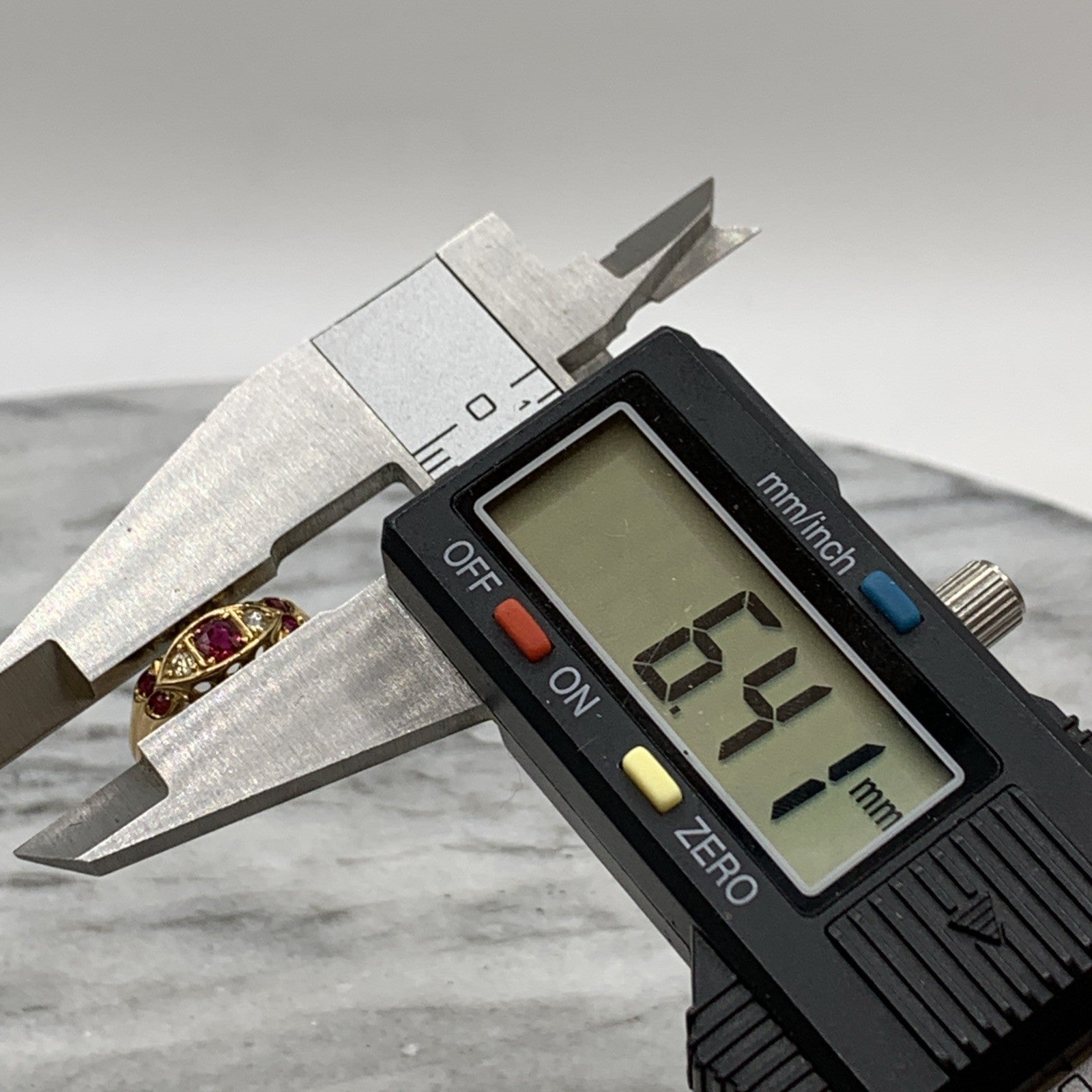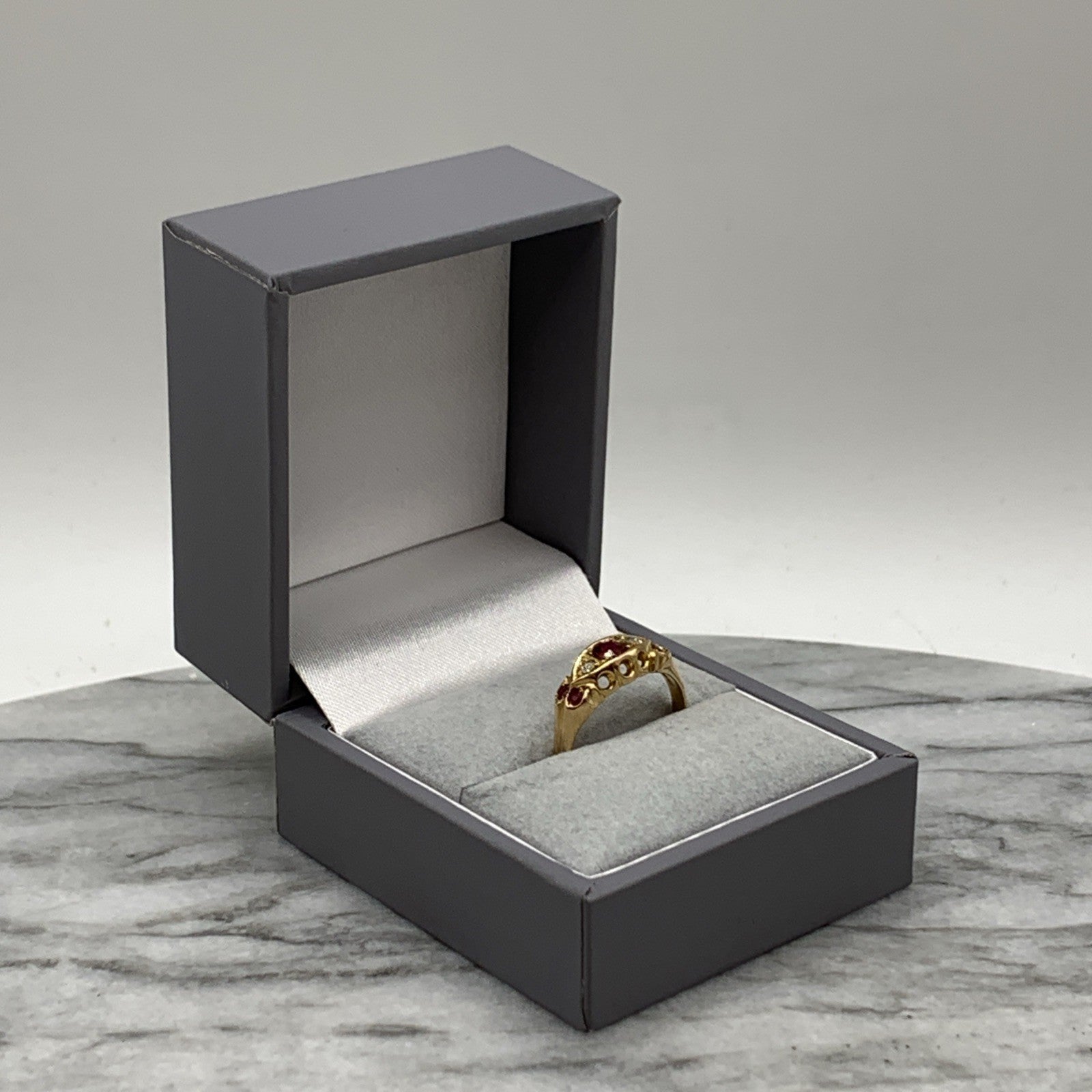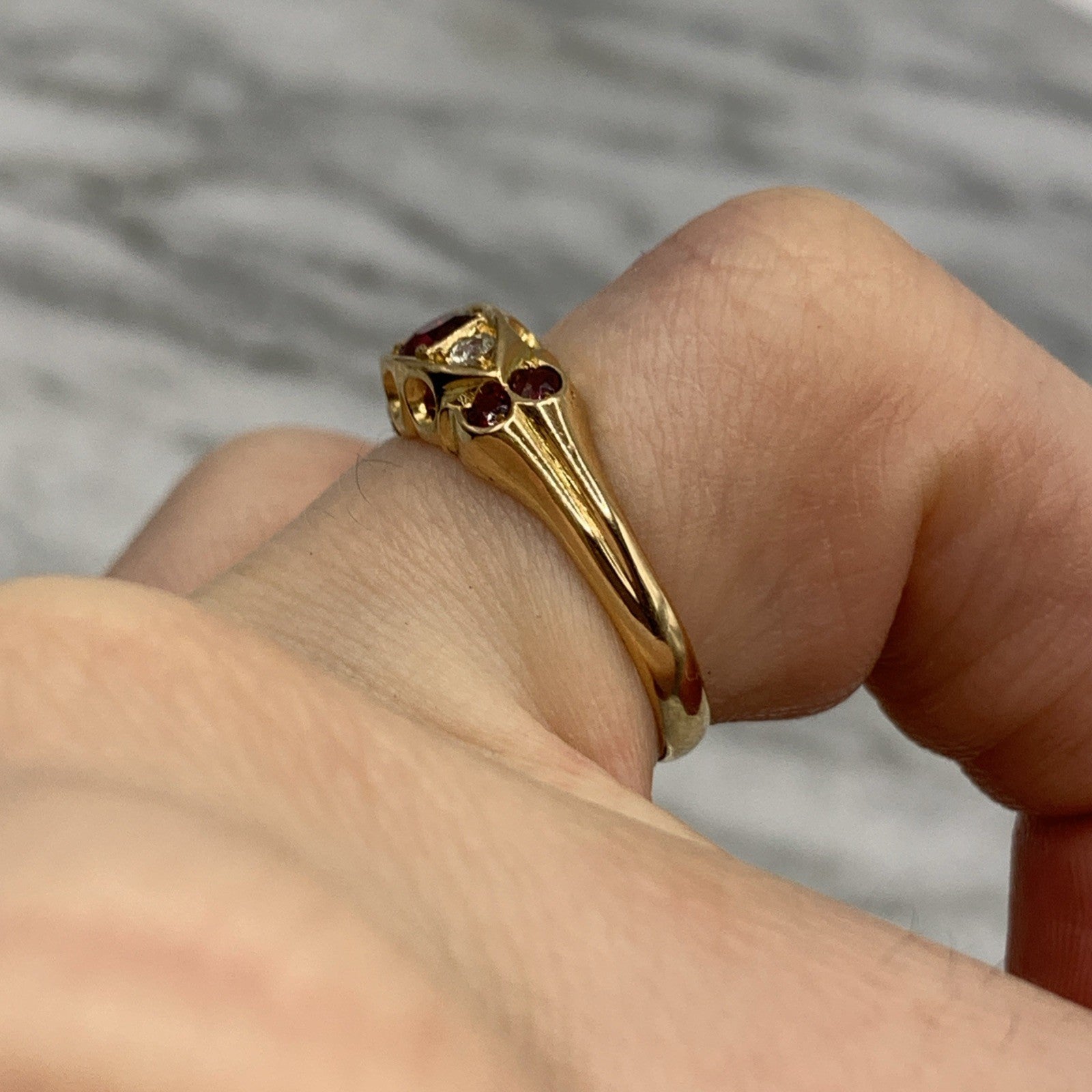 18 ct Gold Ruby & Diamond Antique Boat Ring 750 Yellow Gold - Size J 1/2