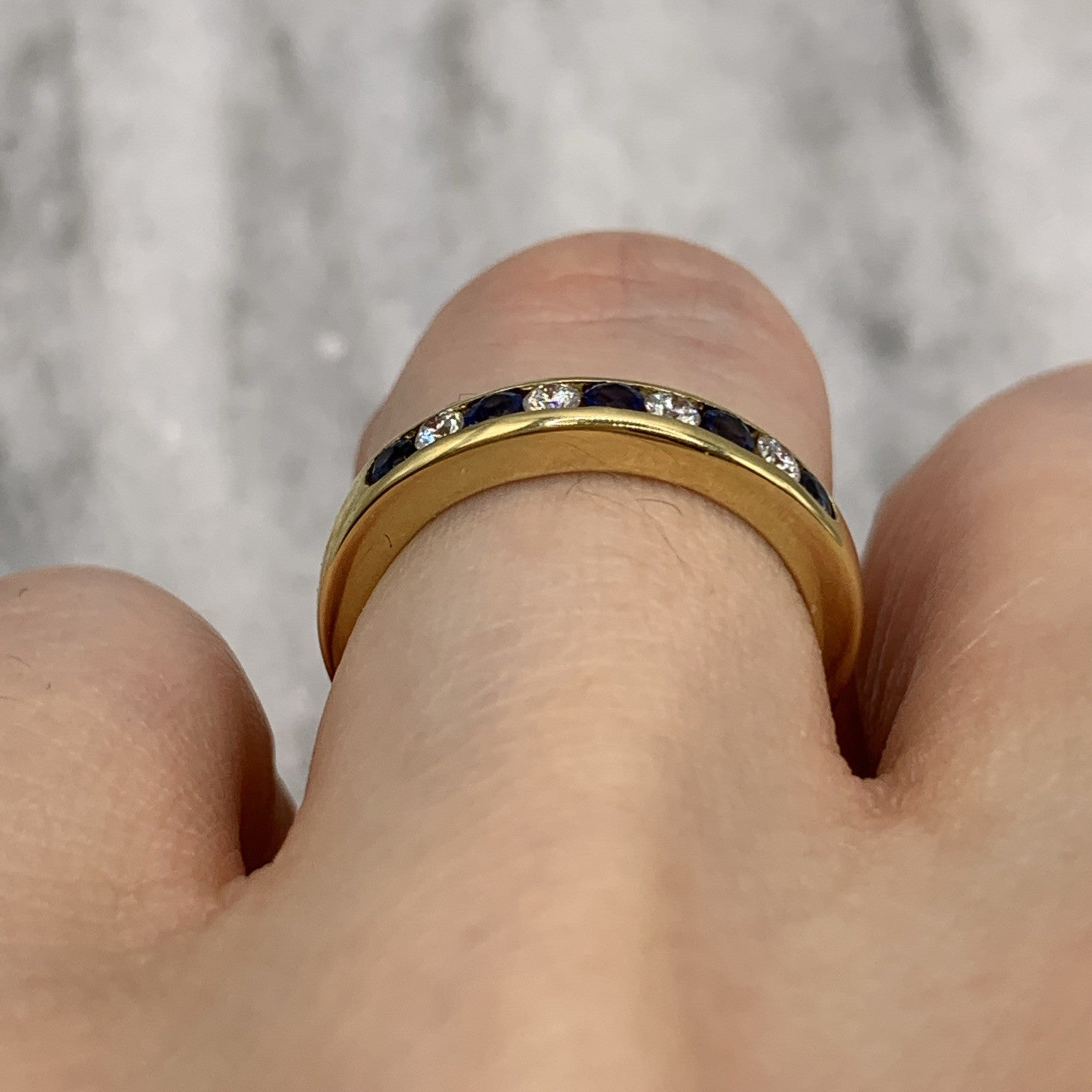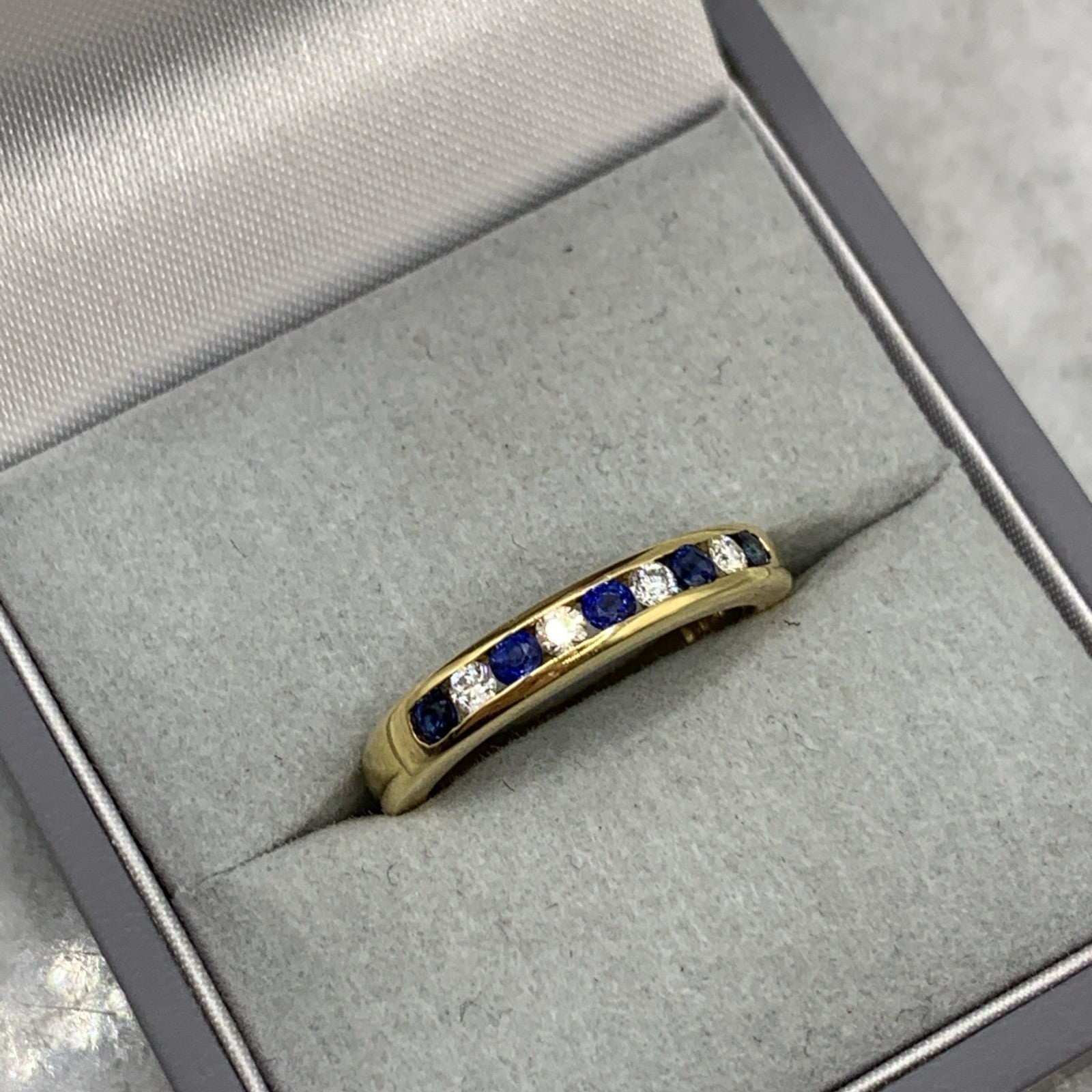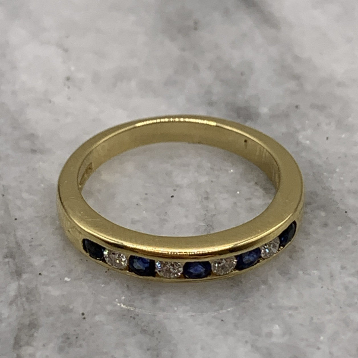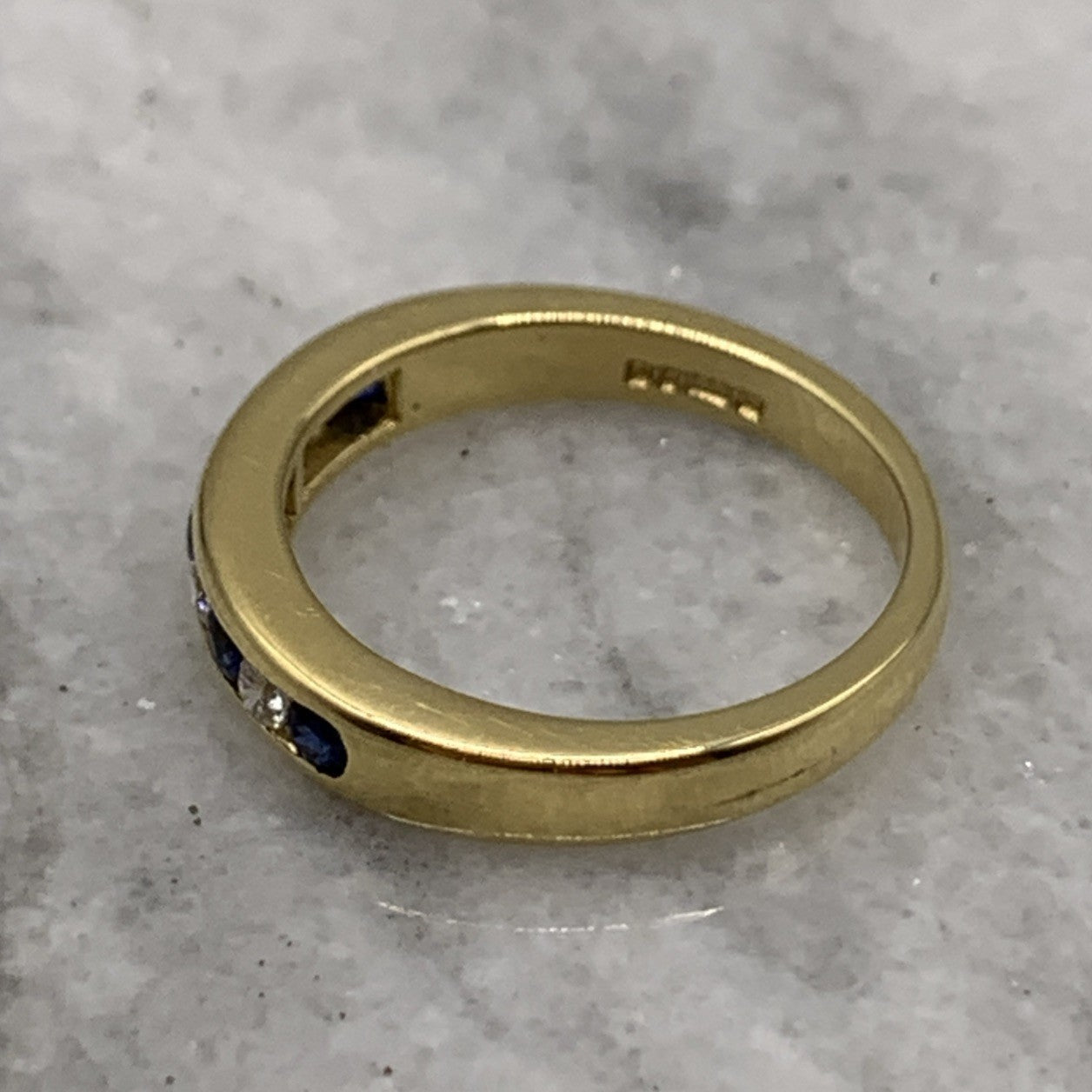 18 ct Gold Sapphire Diamond Ring Channel Set Band in 750 Yellow Gold - Size J
