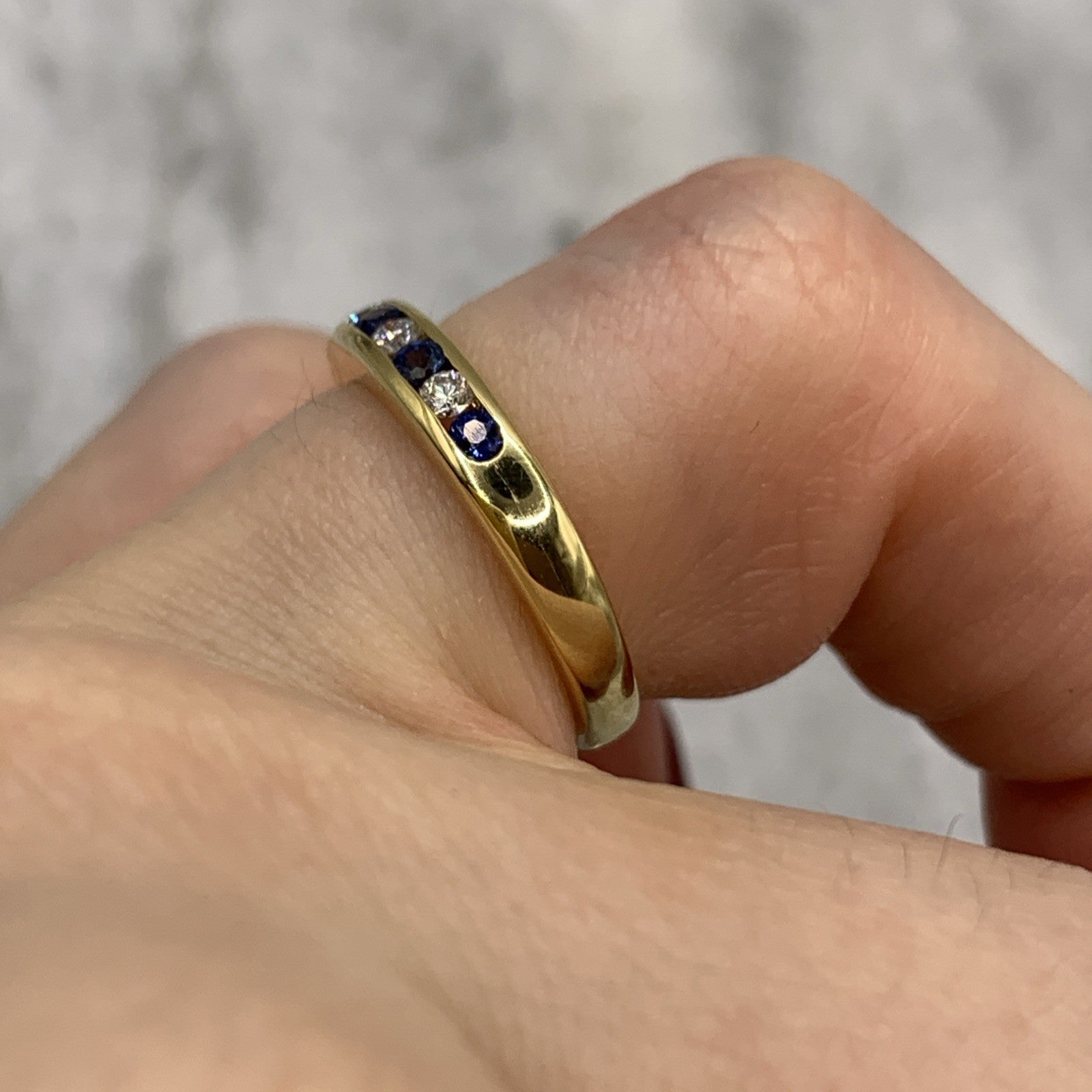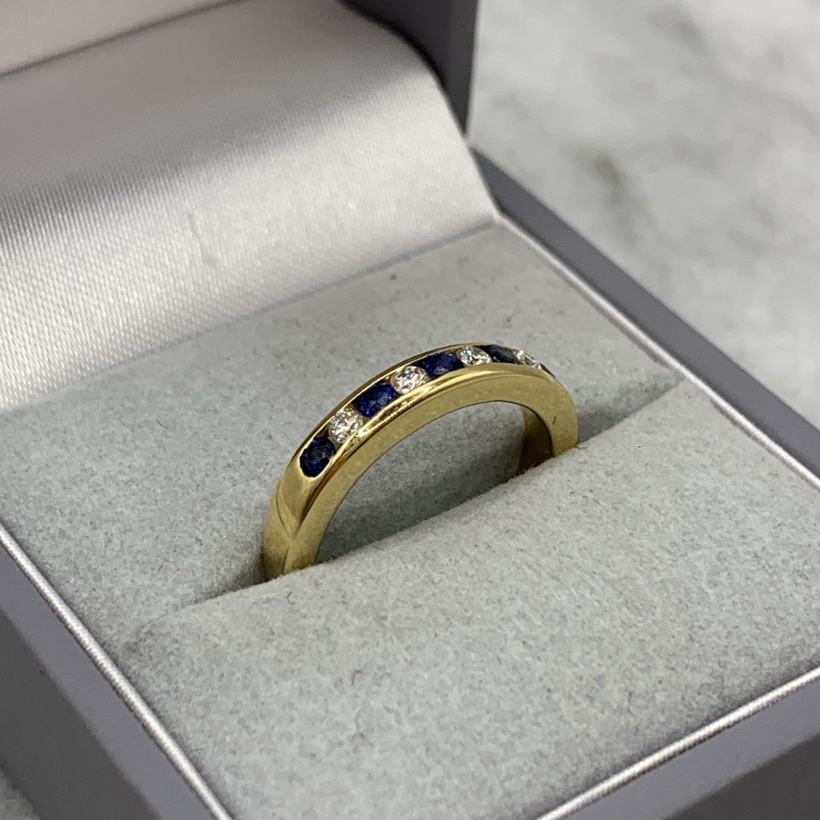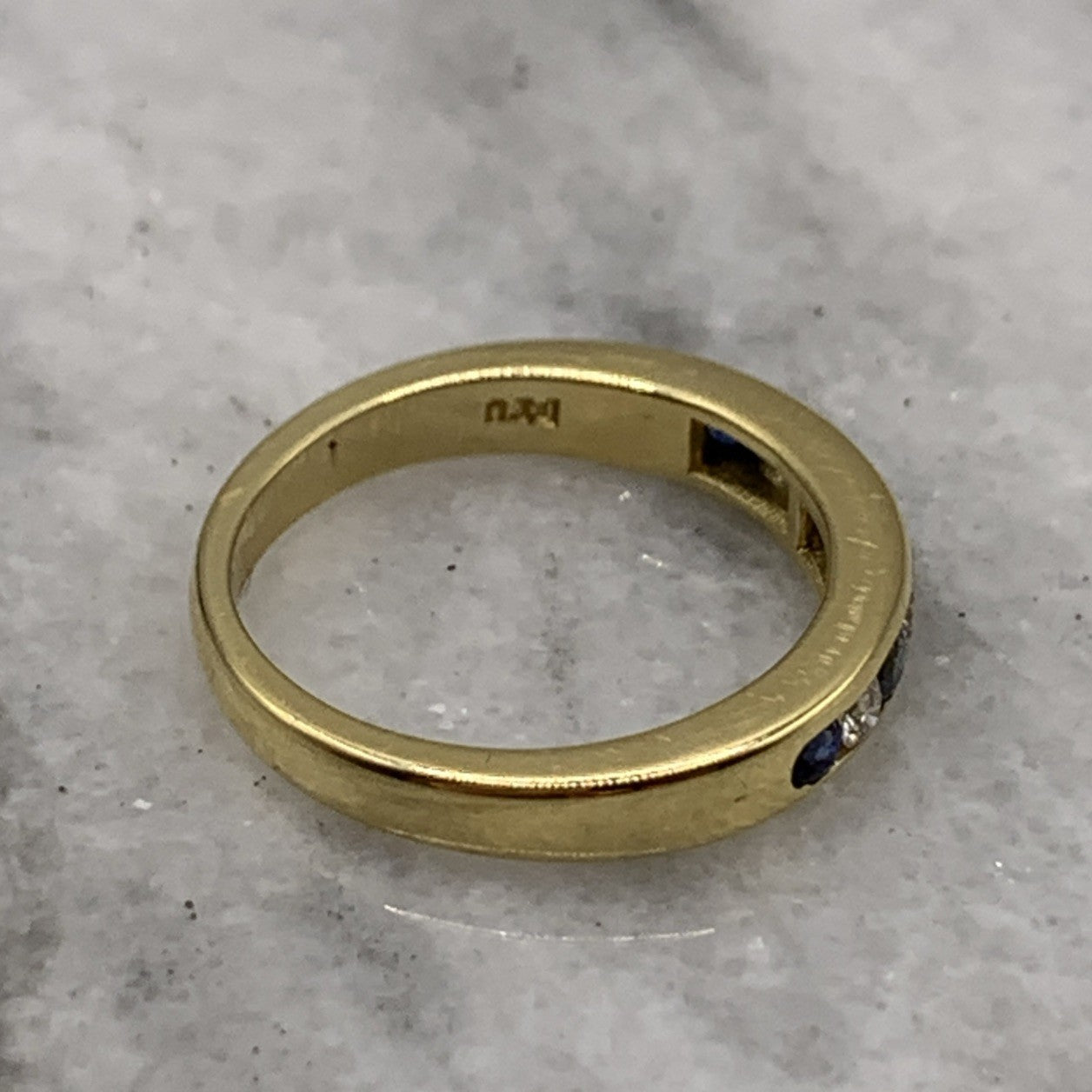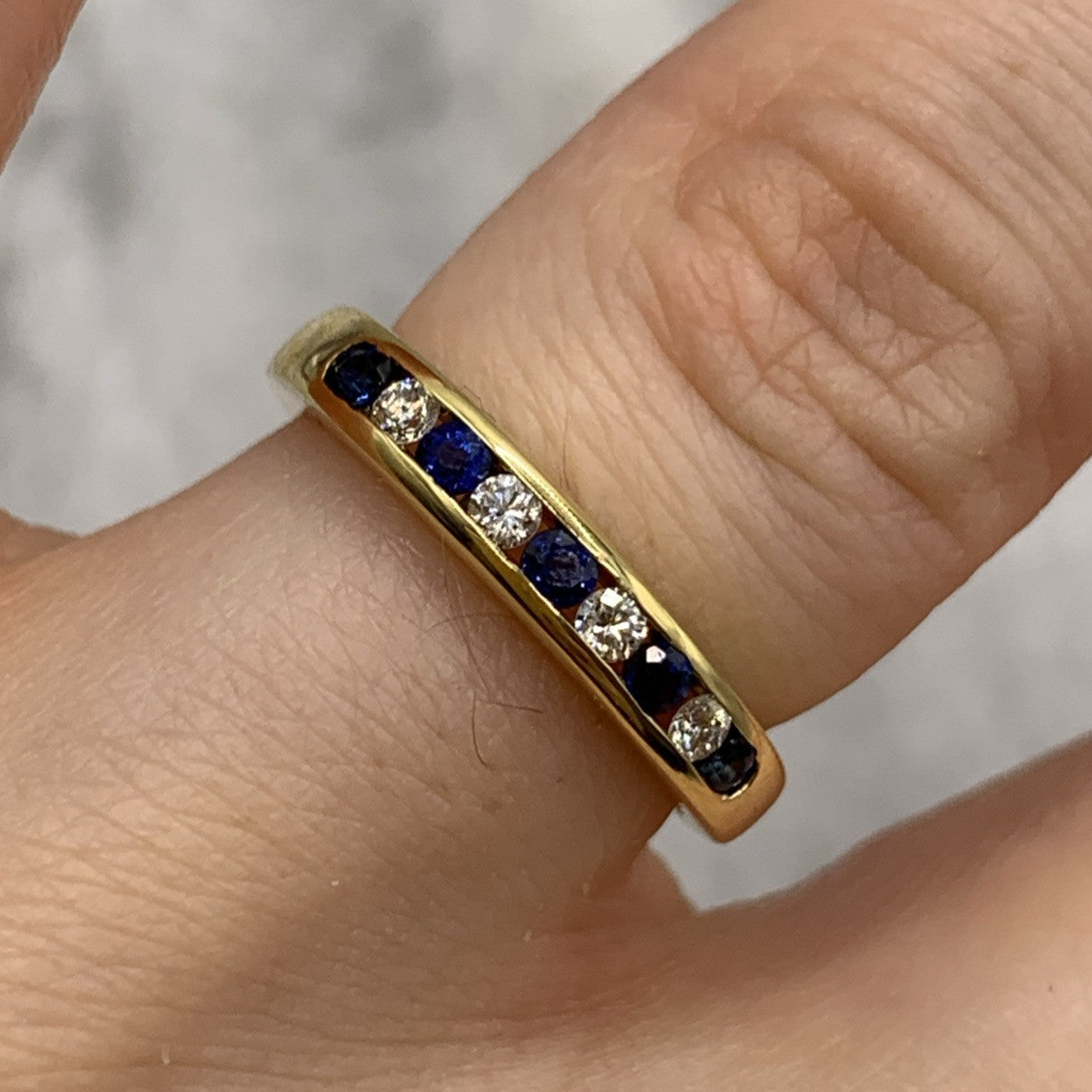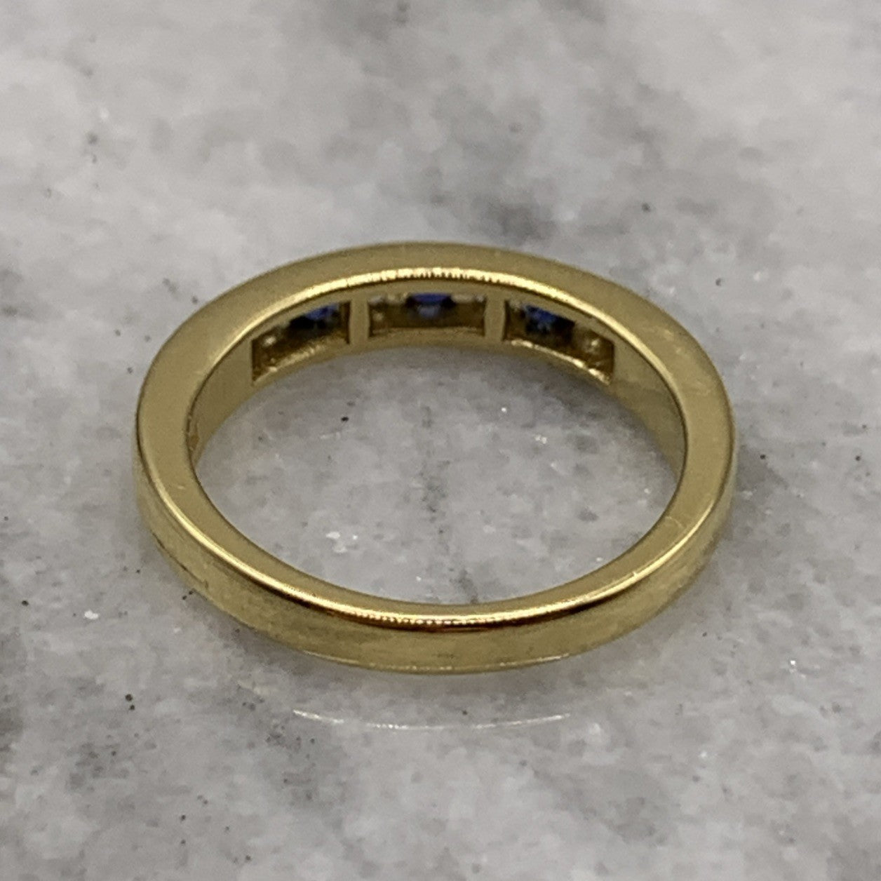 18 ct Gold Sapphire Diamond Ring Channel Set Band in 750 Yellow Gold - Size J