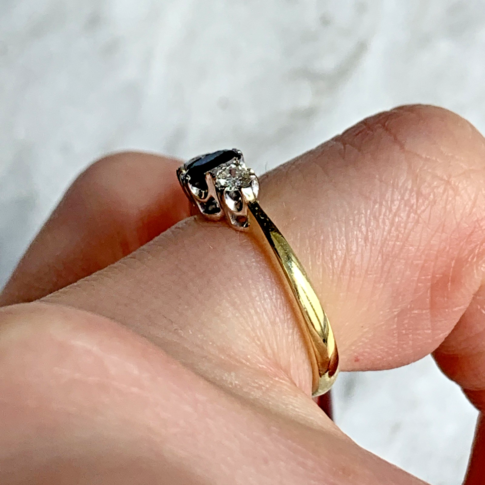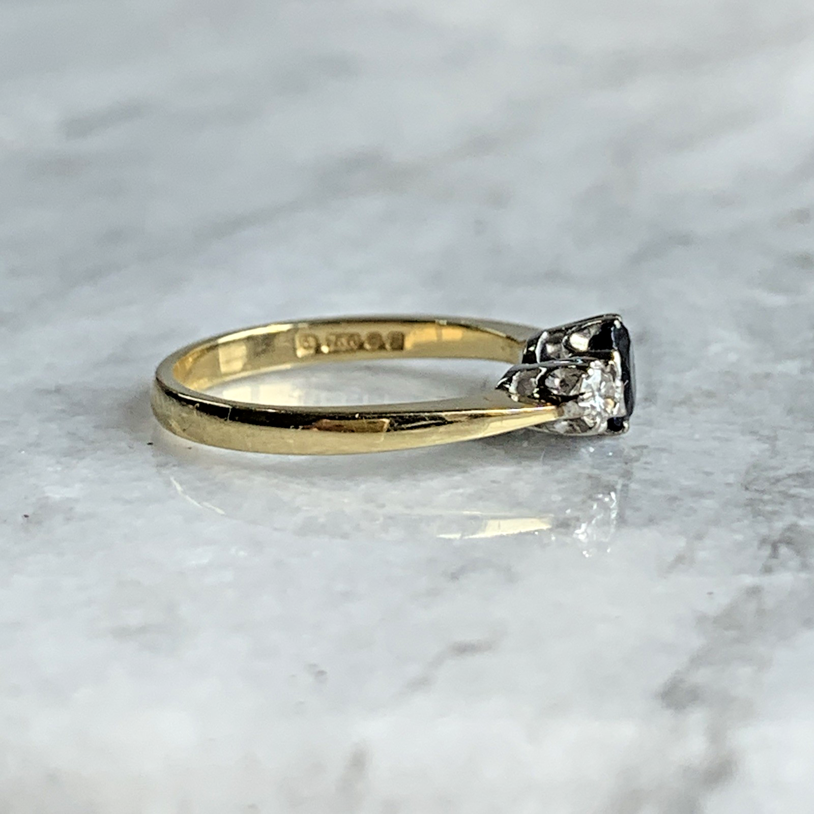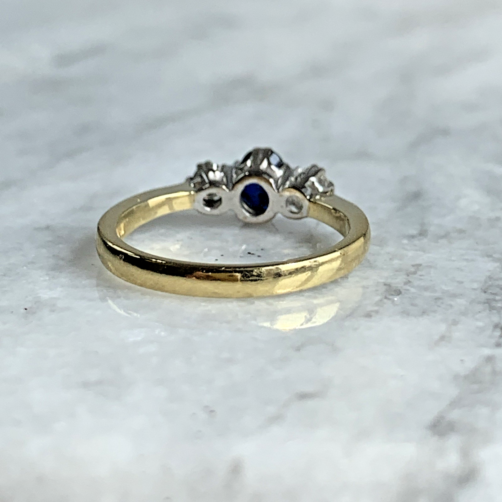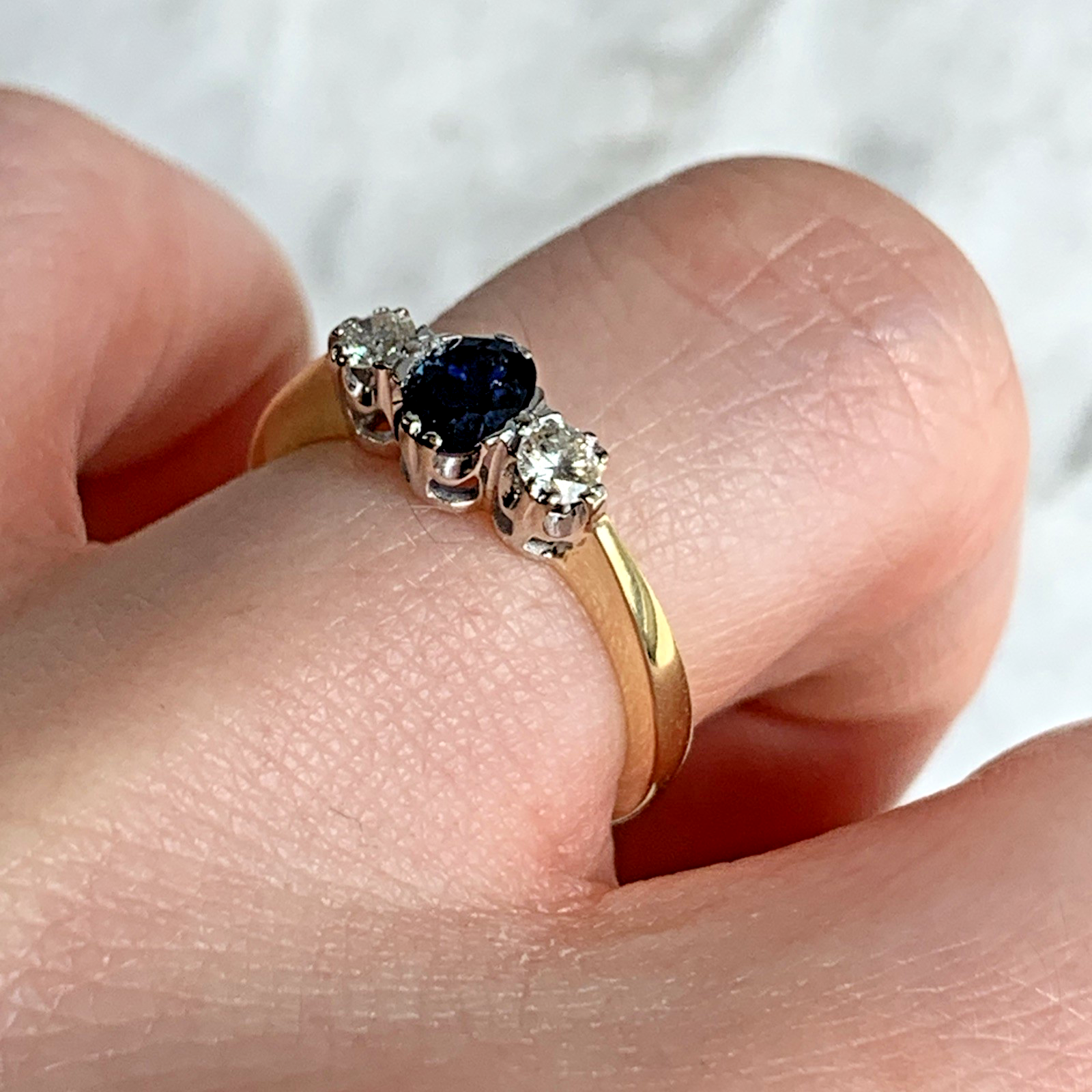18 ct Gold Sapphire & Diamond Ring Trilogy set in 750 Yellow Gold - Size J