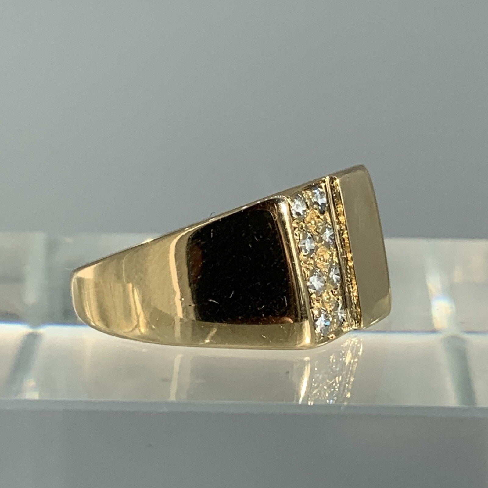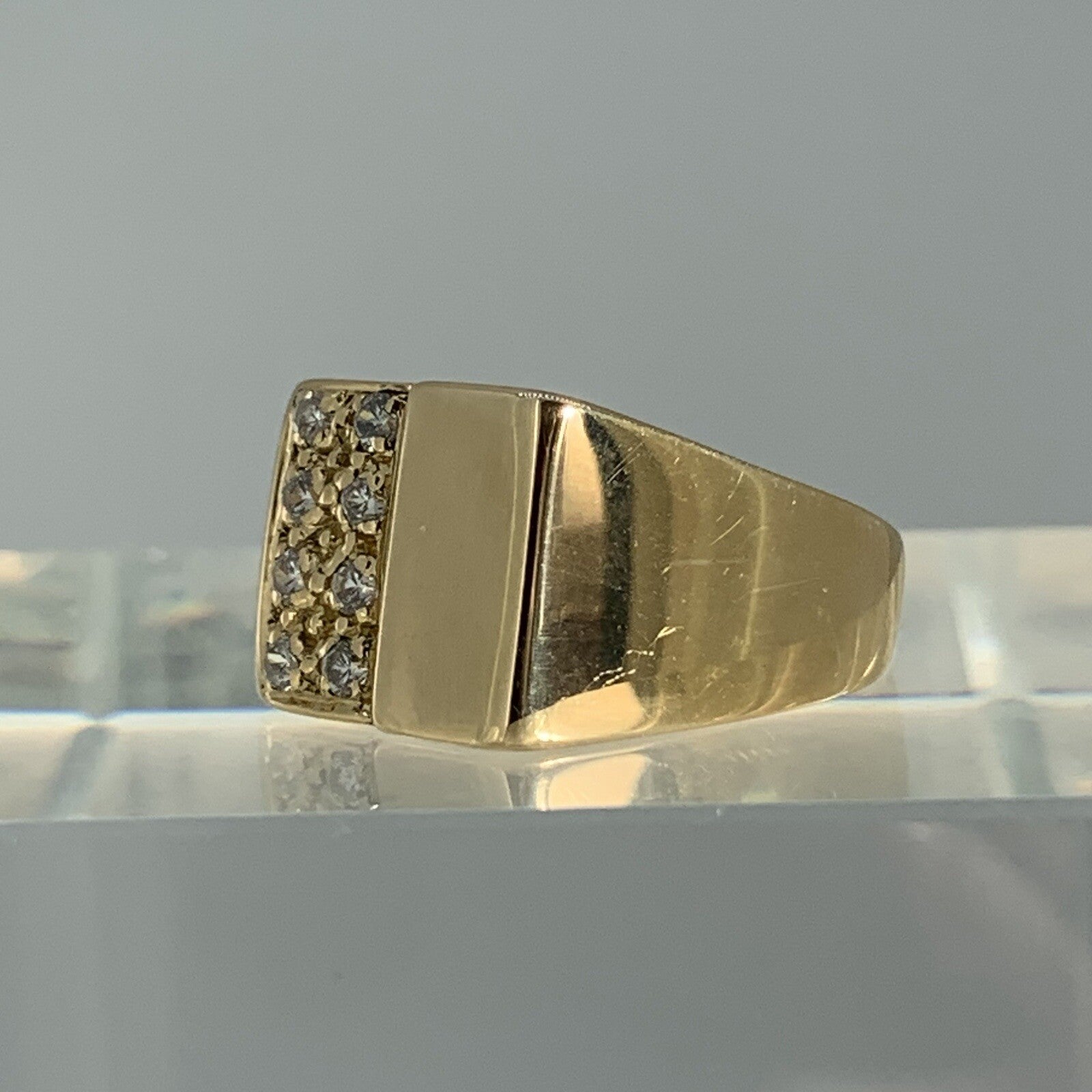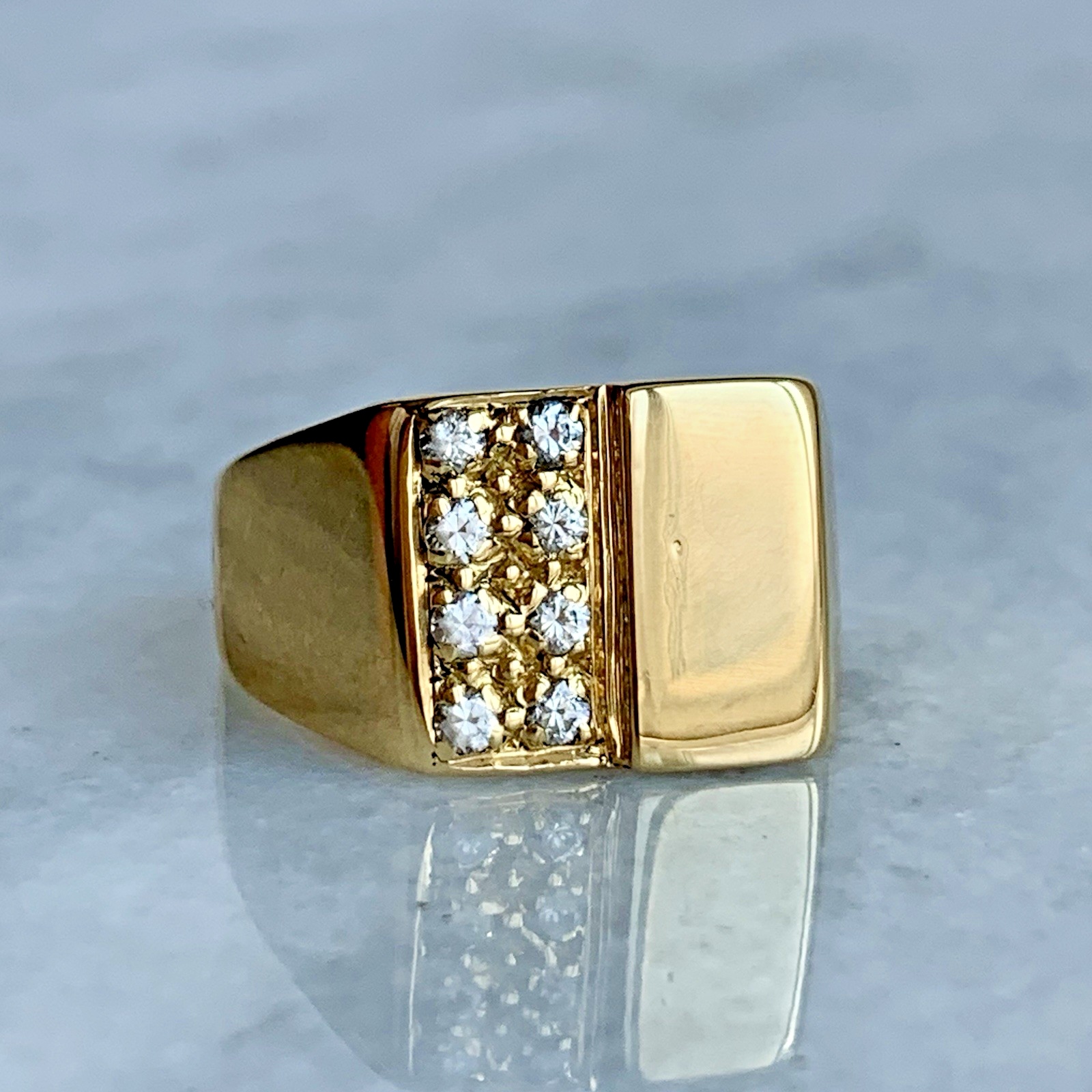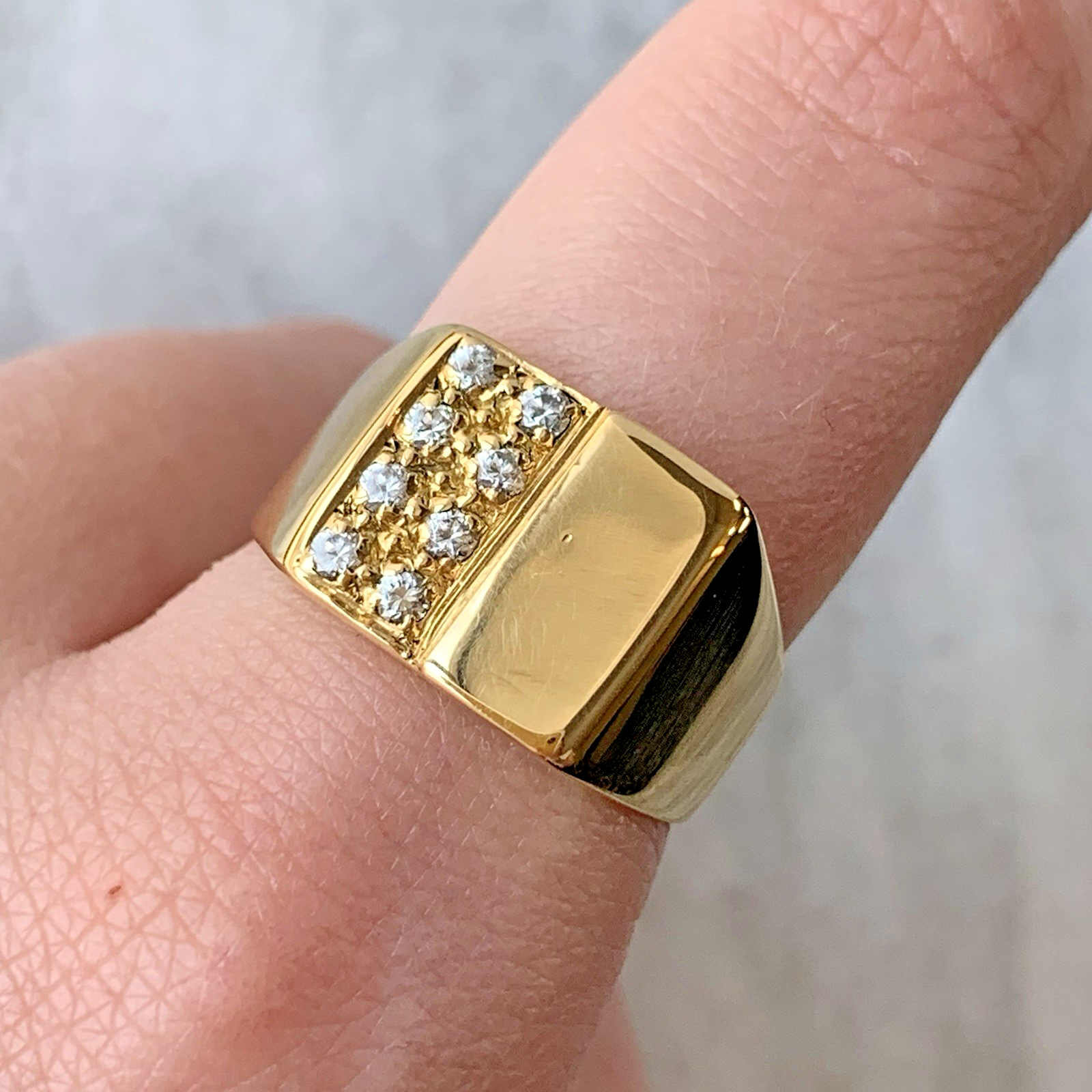 18 ct Gold Signet Ring Square With Sparkly Cluster Yellow Gold - Size Q