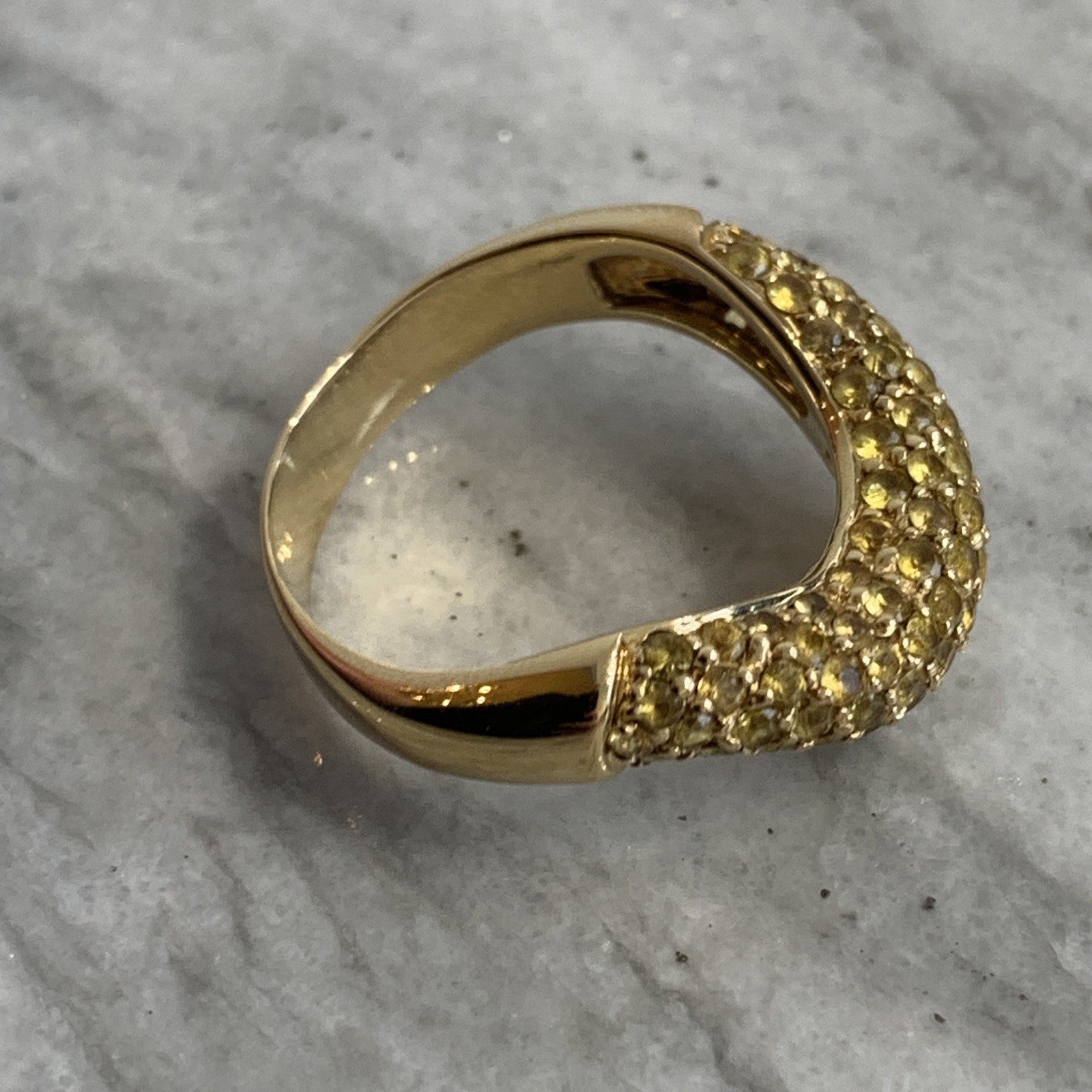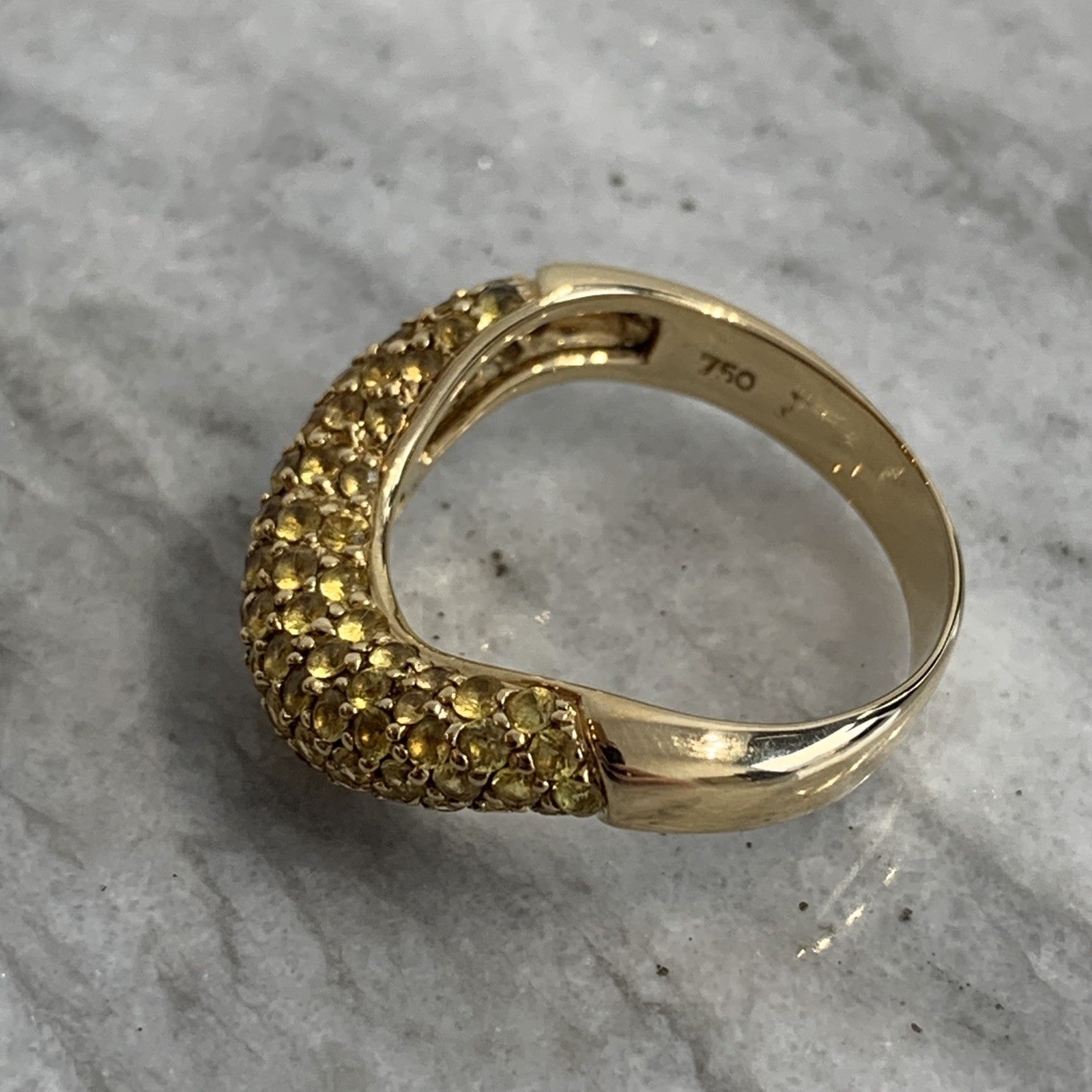 18 ct Gold Yellow Sapphire Ring Pave Curved Chunky Wishbone 750 - Size O