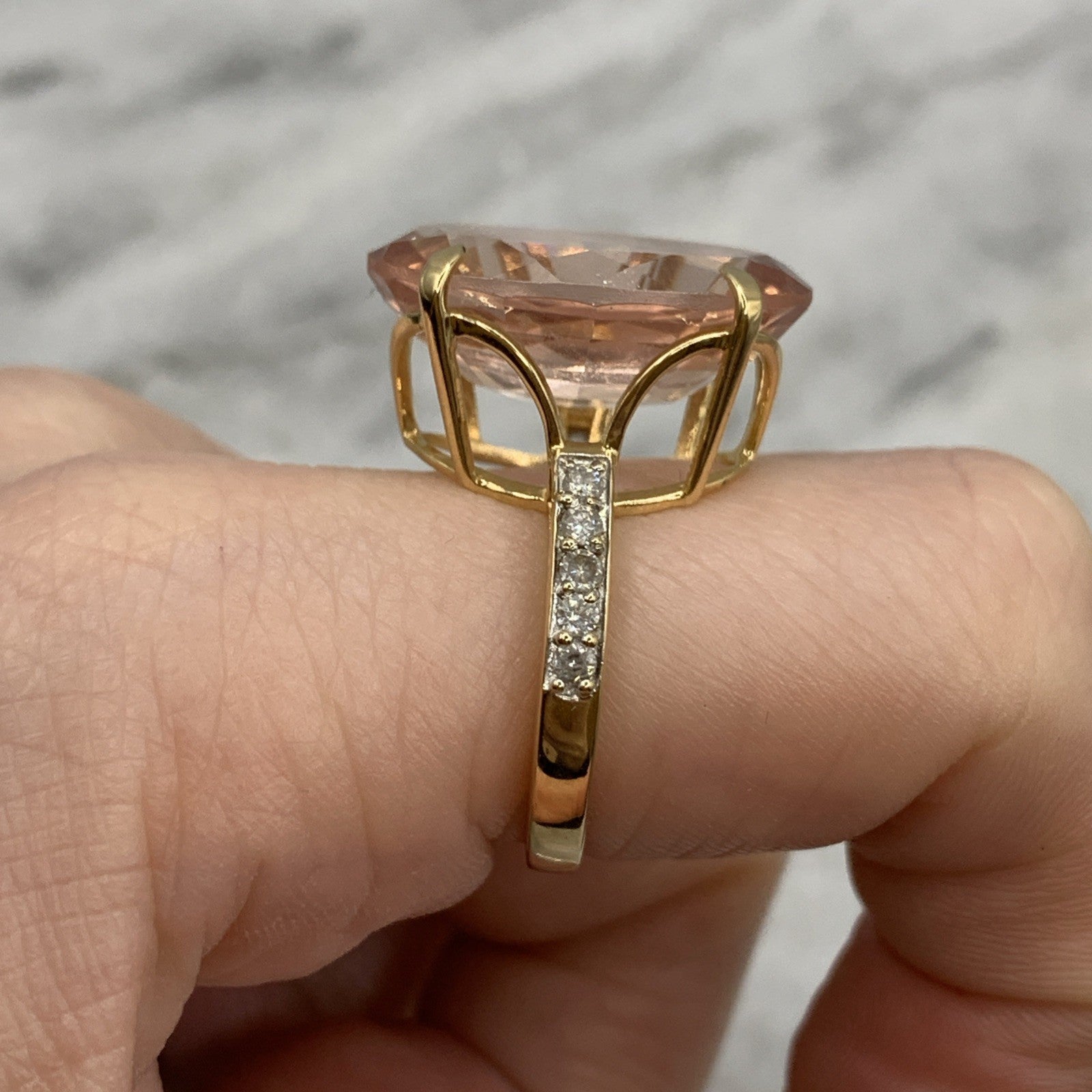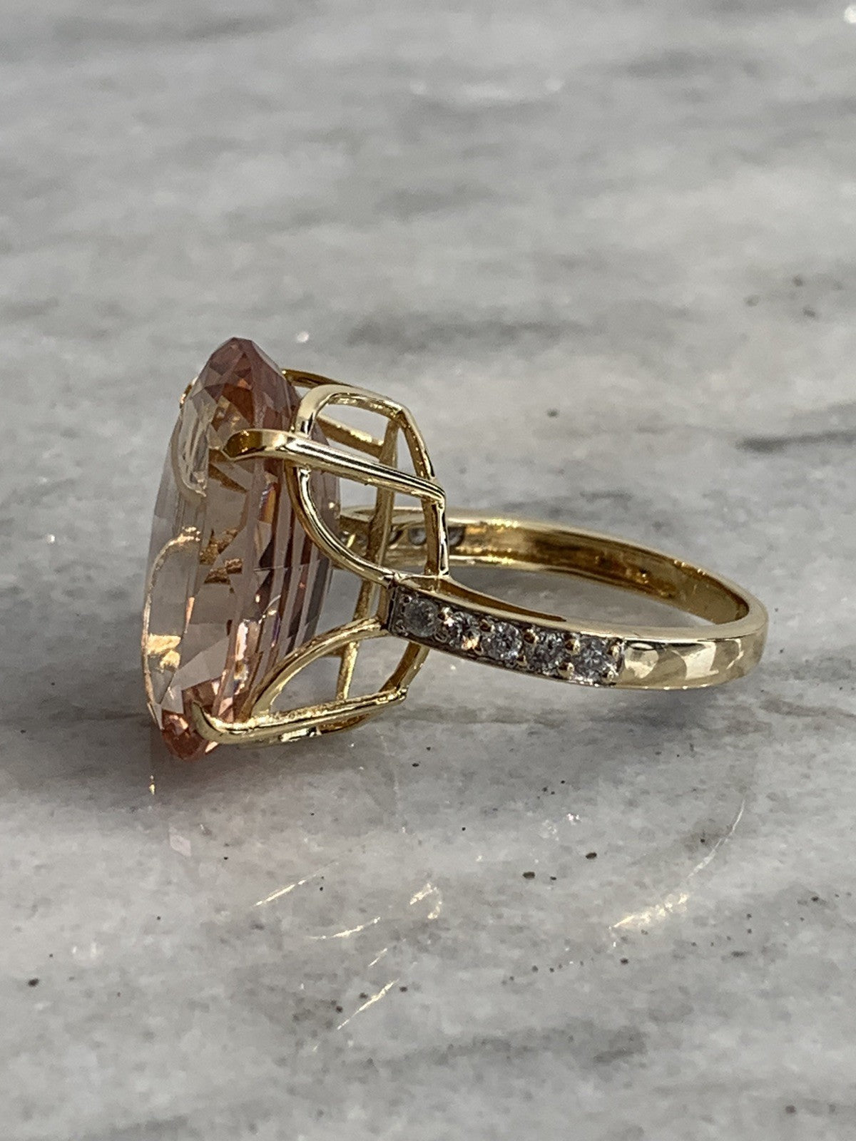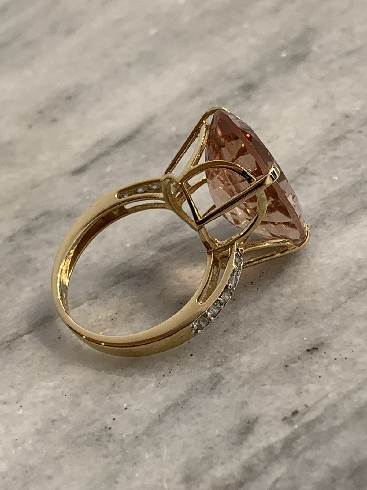 18ct Gold Morganite Diamond Ring 12.5ct Cocktail Yellow Gold - Size N 1/2