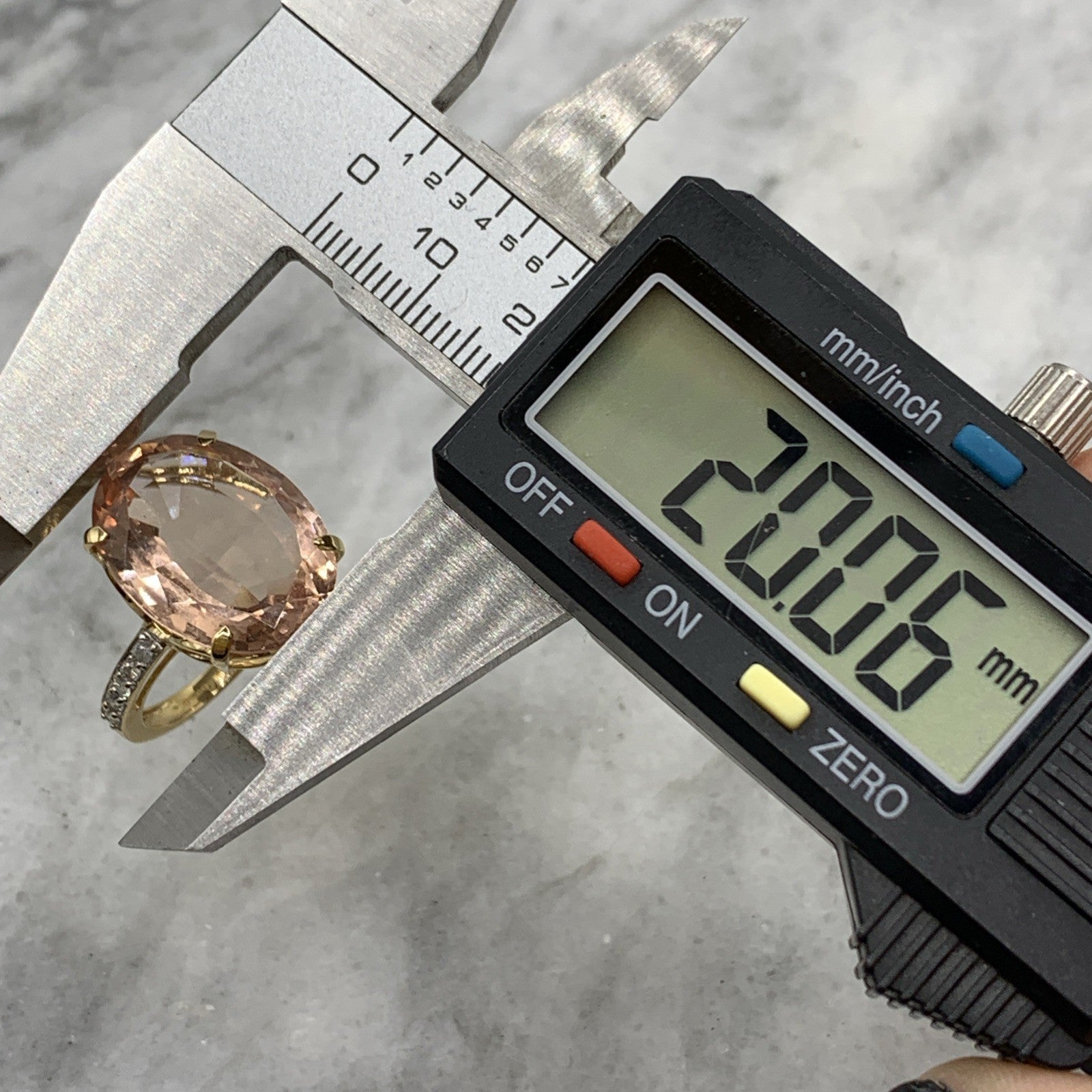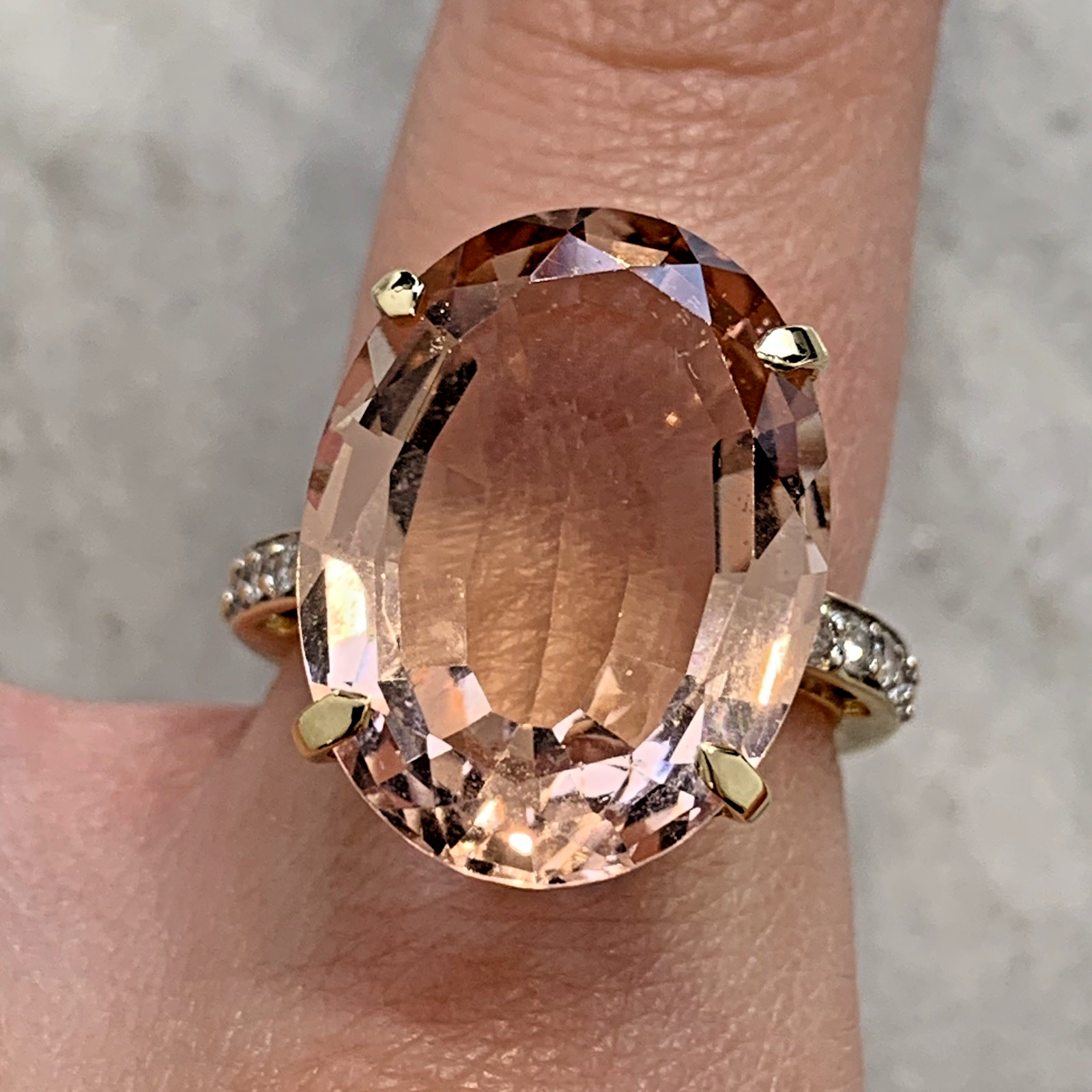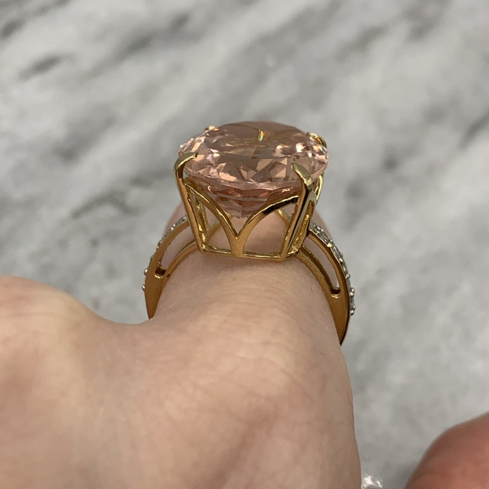 18ct Gold Morganite Diamond Ring 12.5ct Cocktail Yellow Gold - Size N 1/2