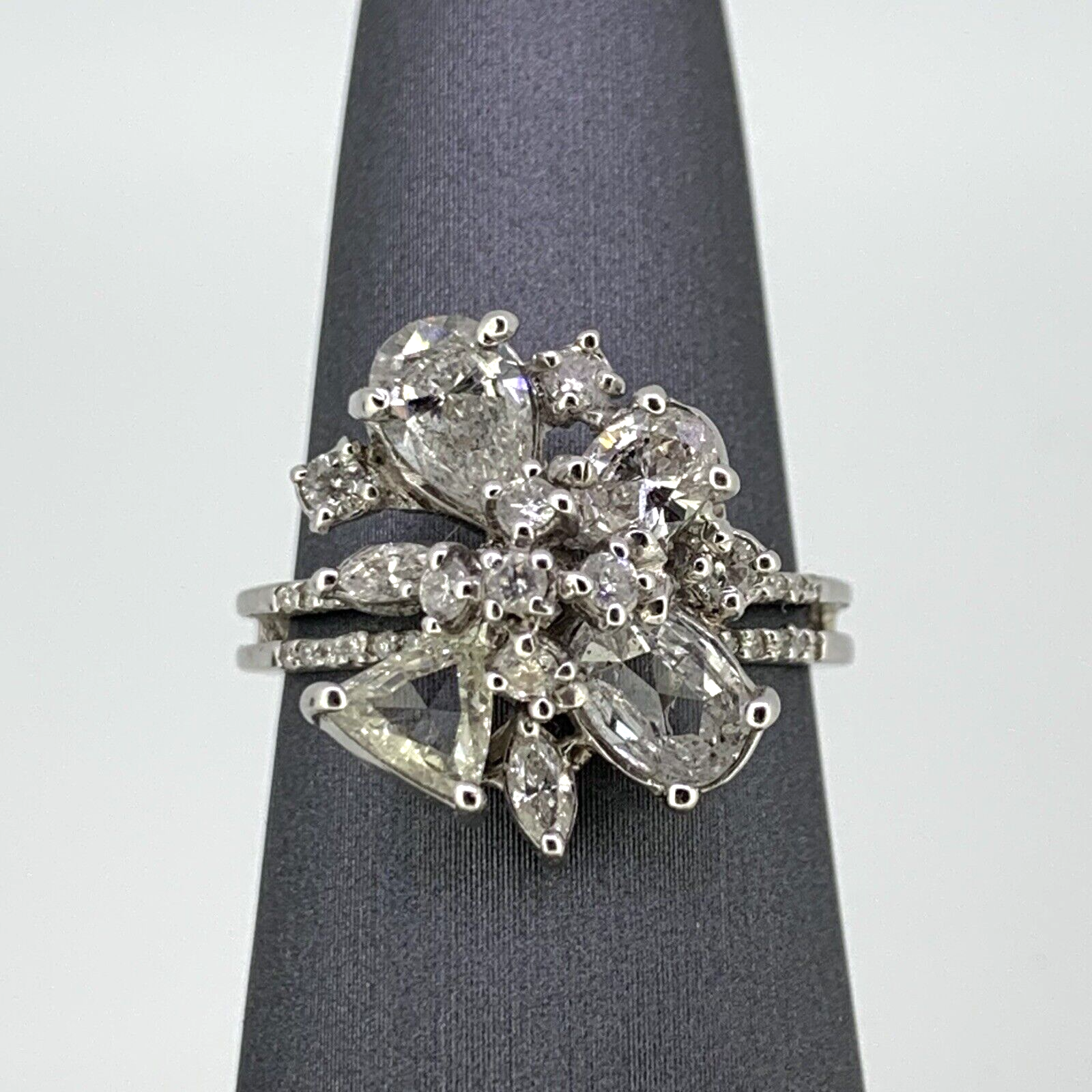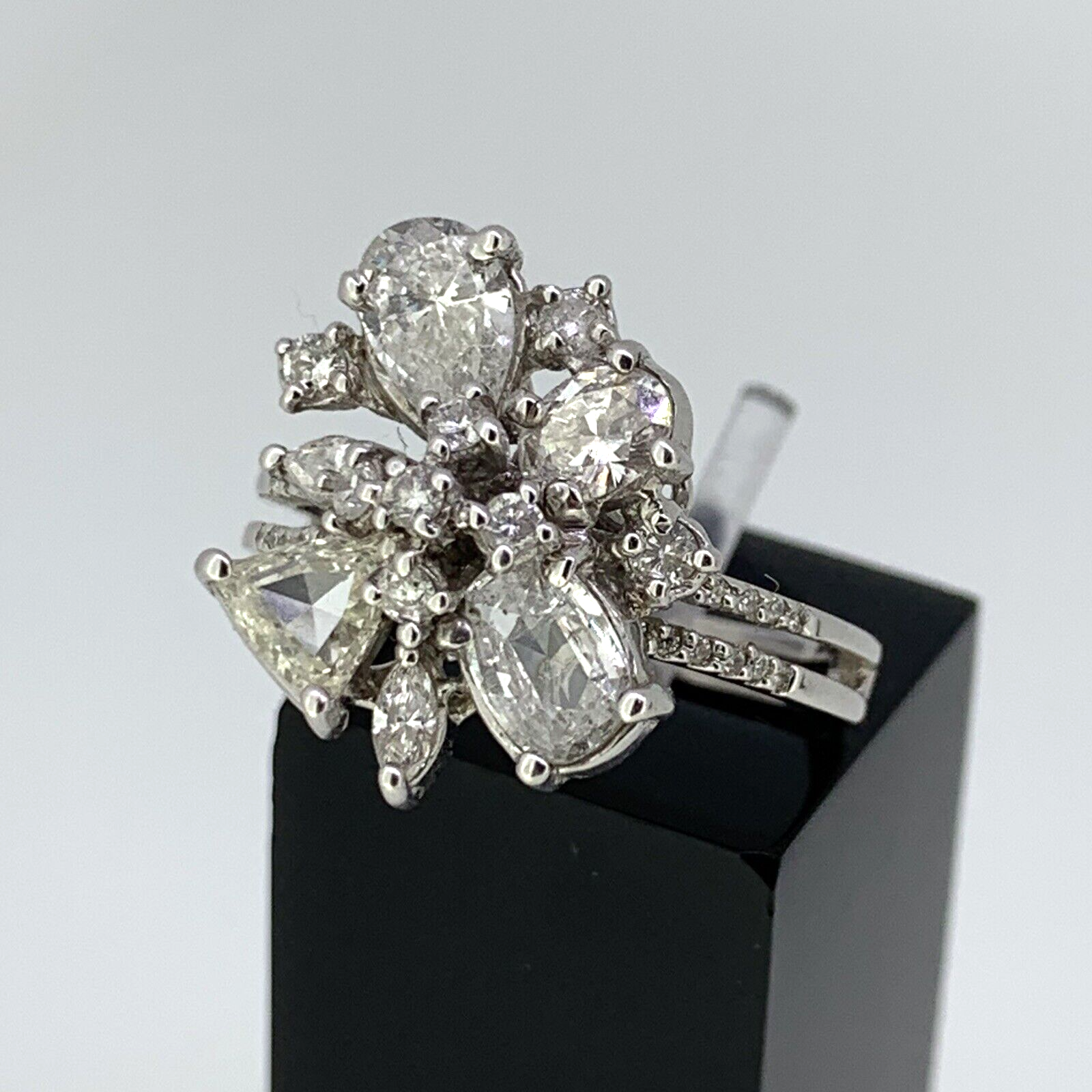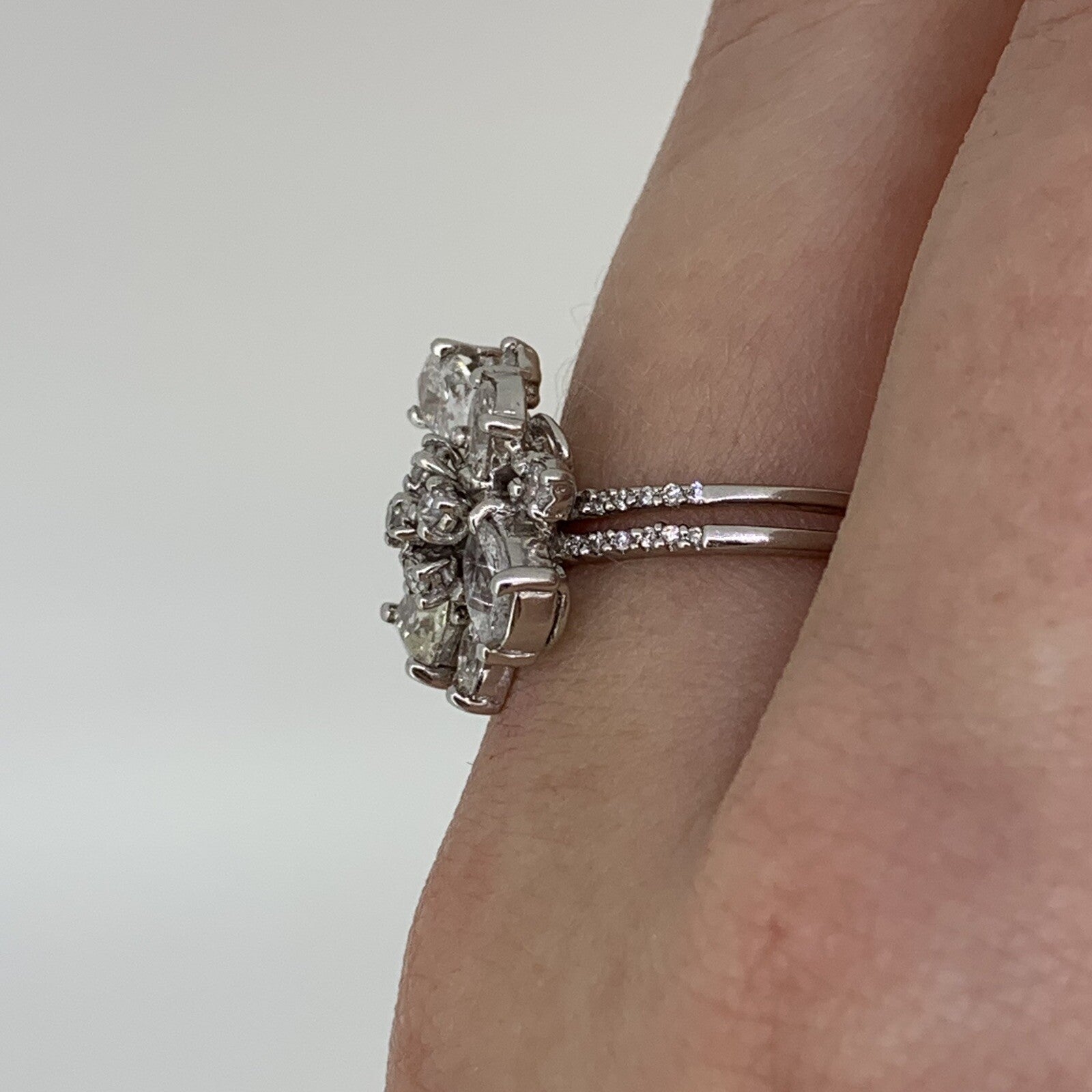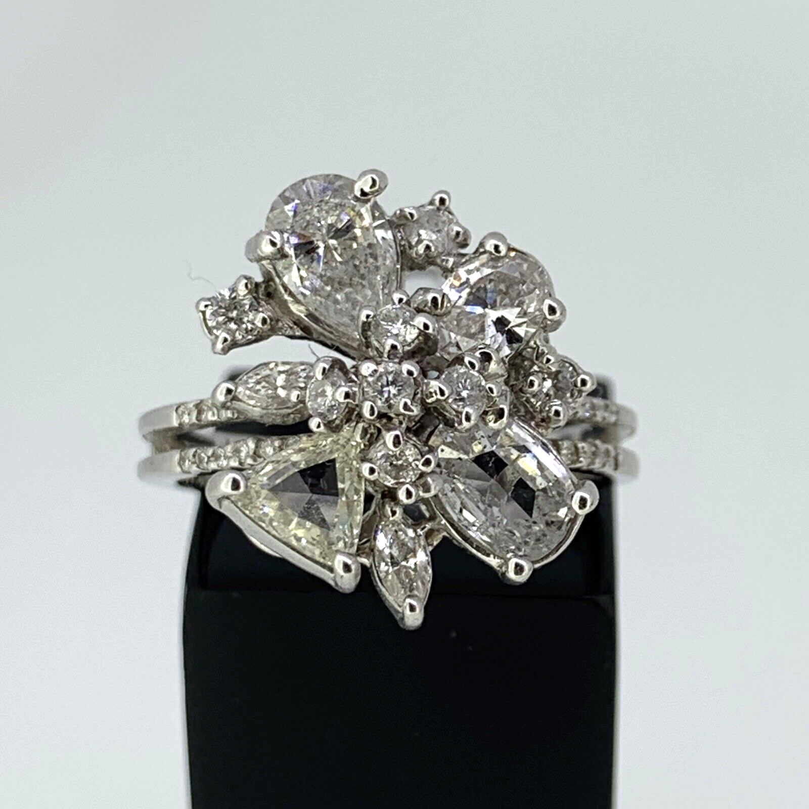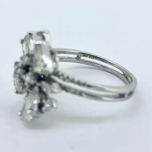 18ct White Gold Diamond 1.48ct Ring Cluster Trilliant Marquise - Size O Bespoke