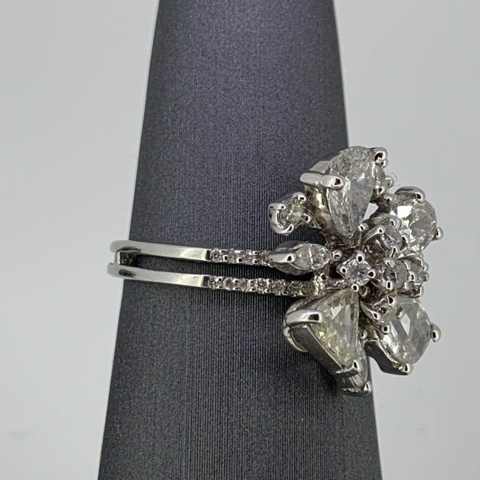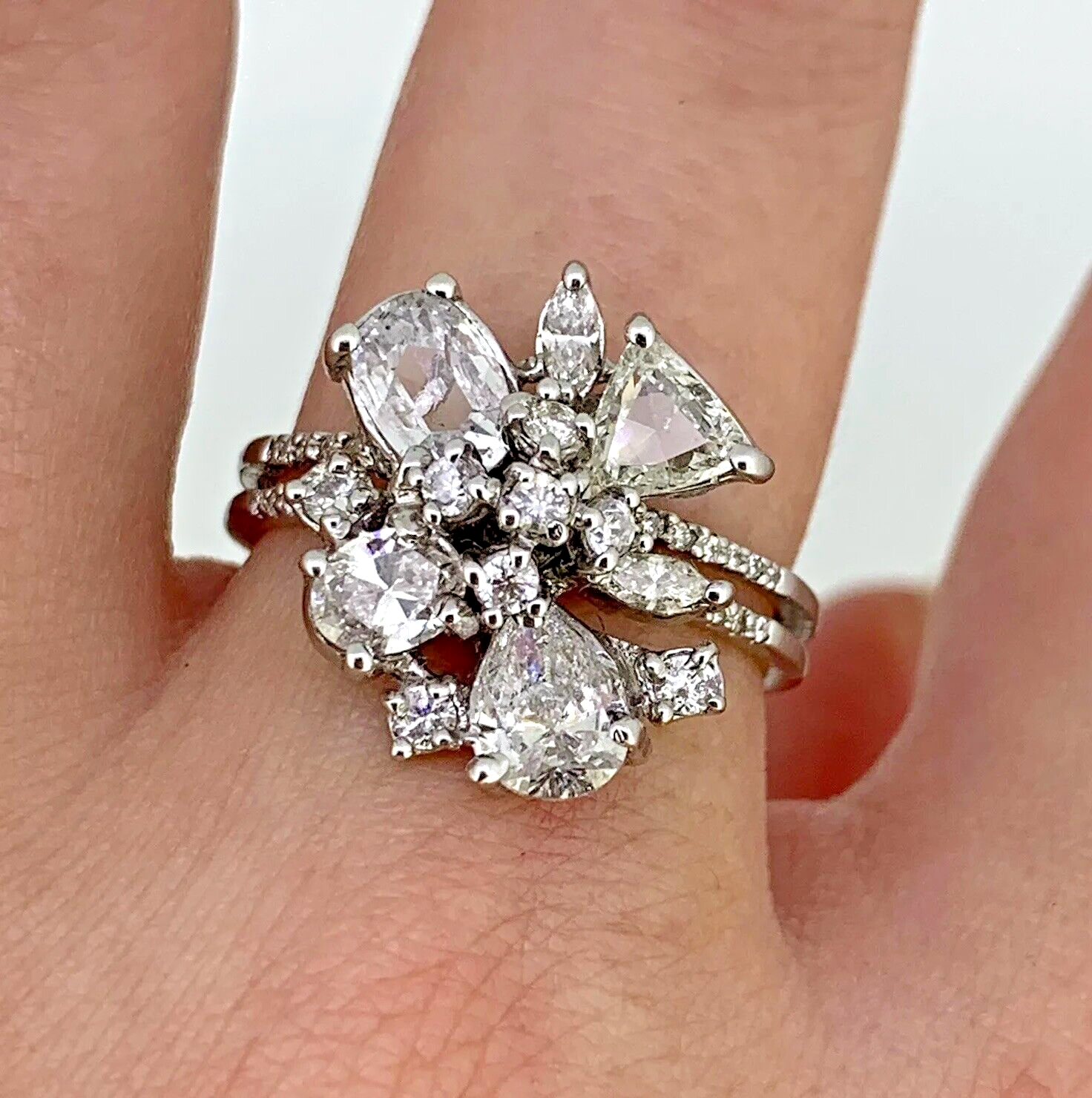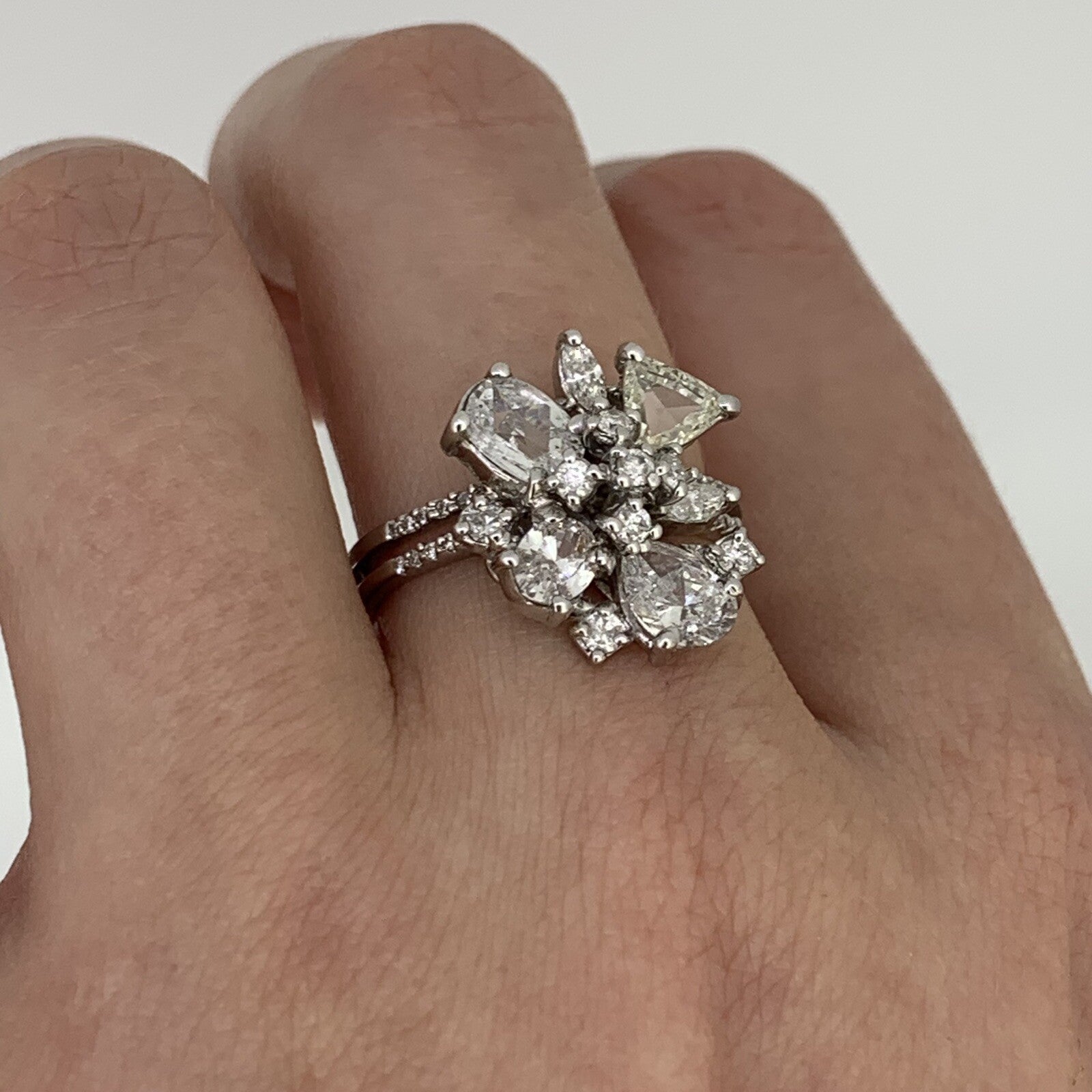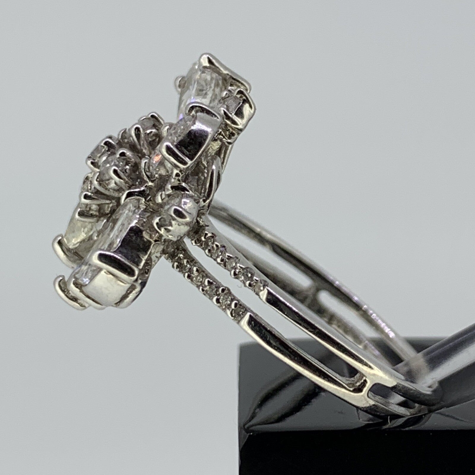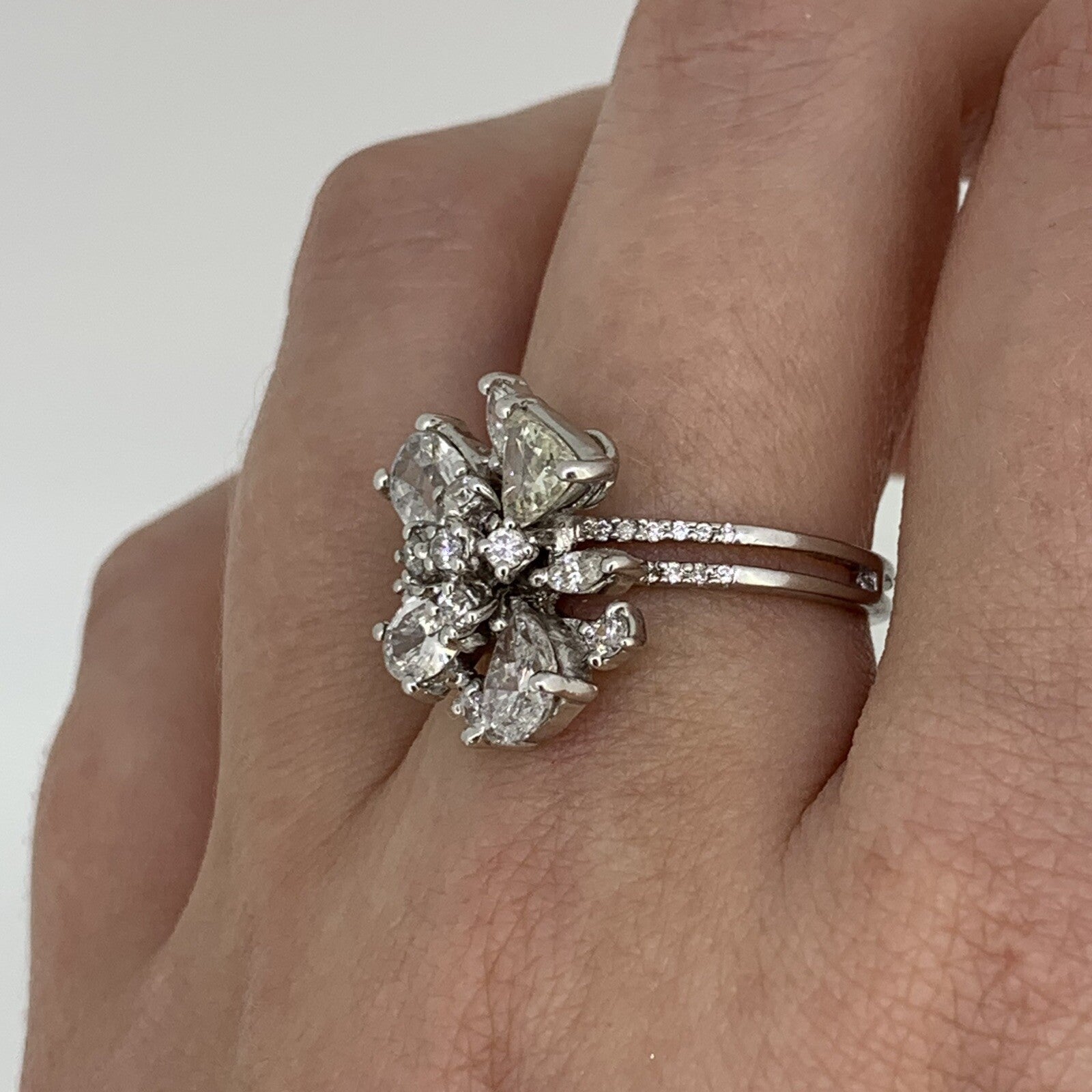 18ct White Gold Diamond 1.48ct Ring Cluster Trilliant Marquise - Size O Bespoke