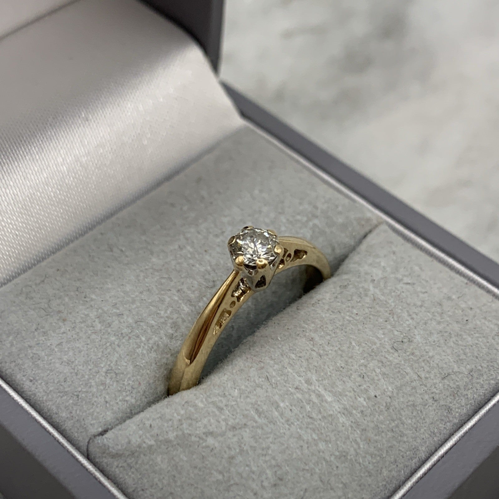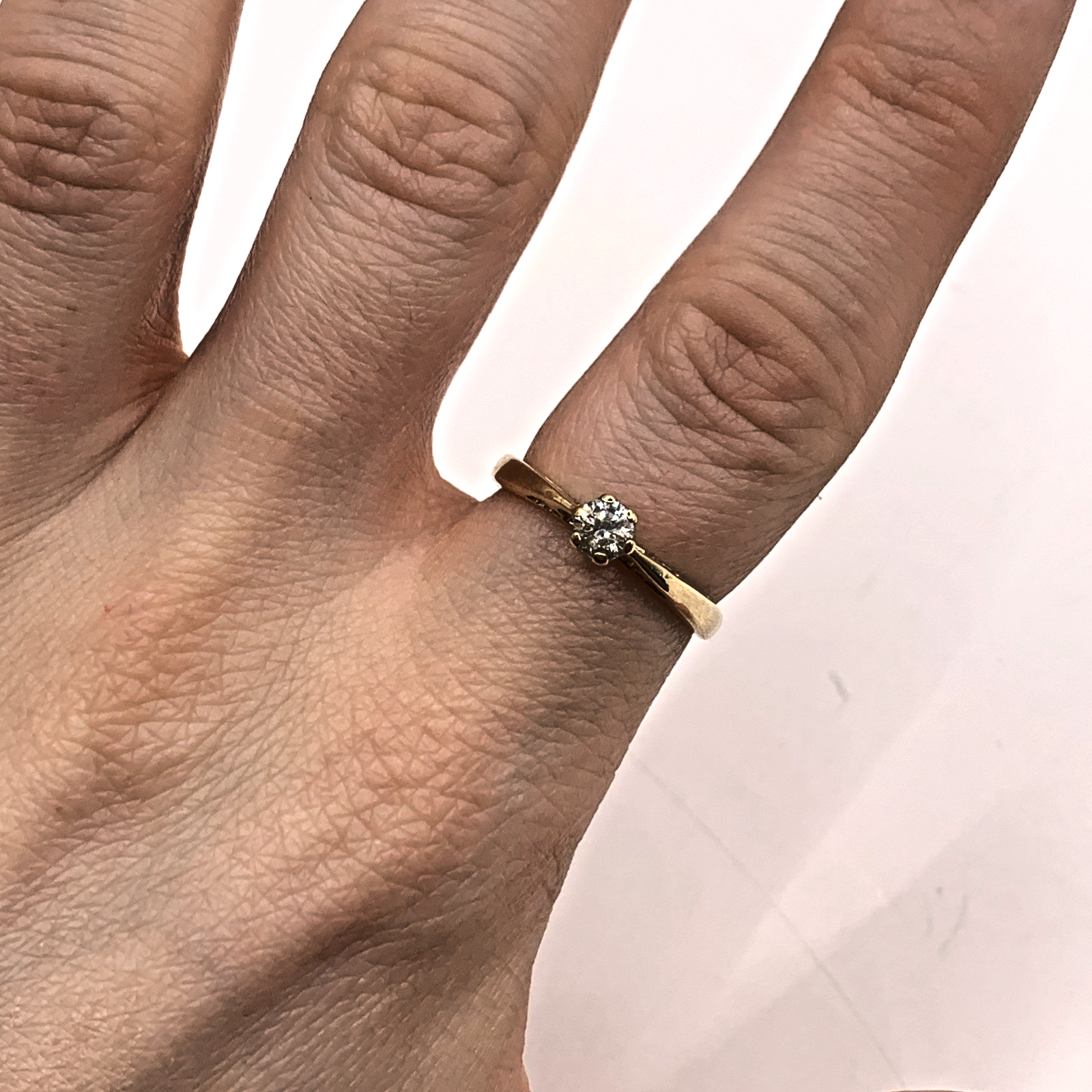 9 ct Diamond Solitaire Ring 9k 375 Yellow Gold - Size M 1/2