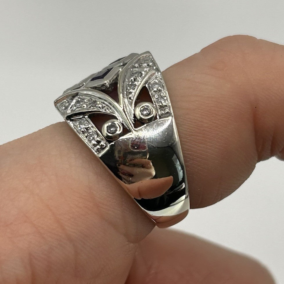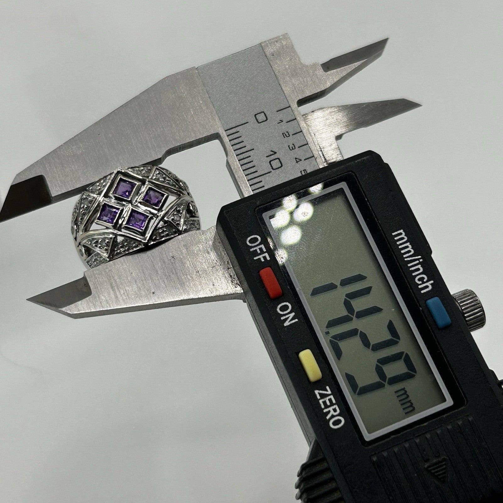 9 ct Gold Amethyst & Diamond Ornate Band Ring 9ct 9k White Gold - Size M 1/2