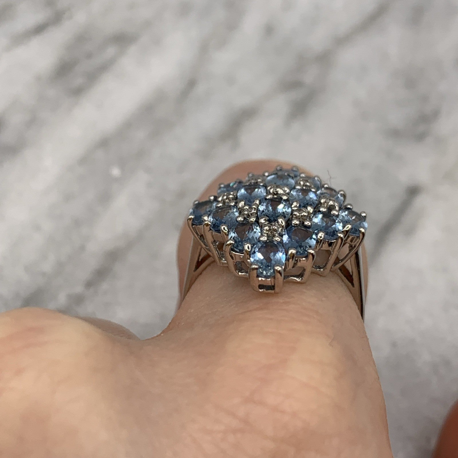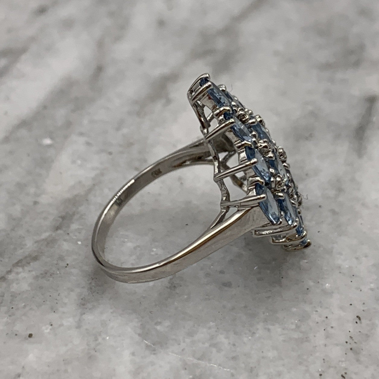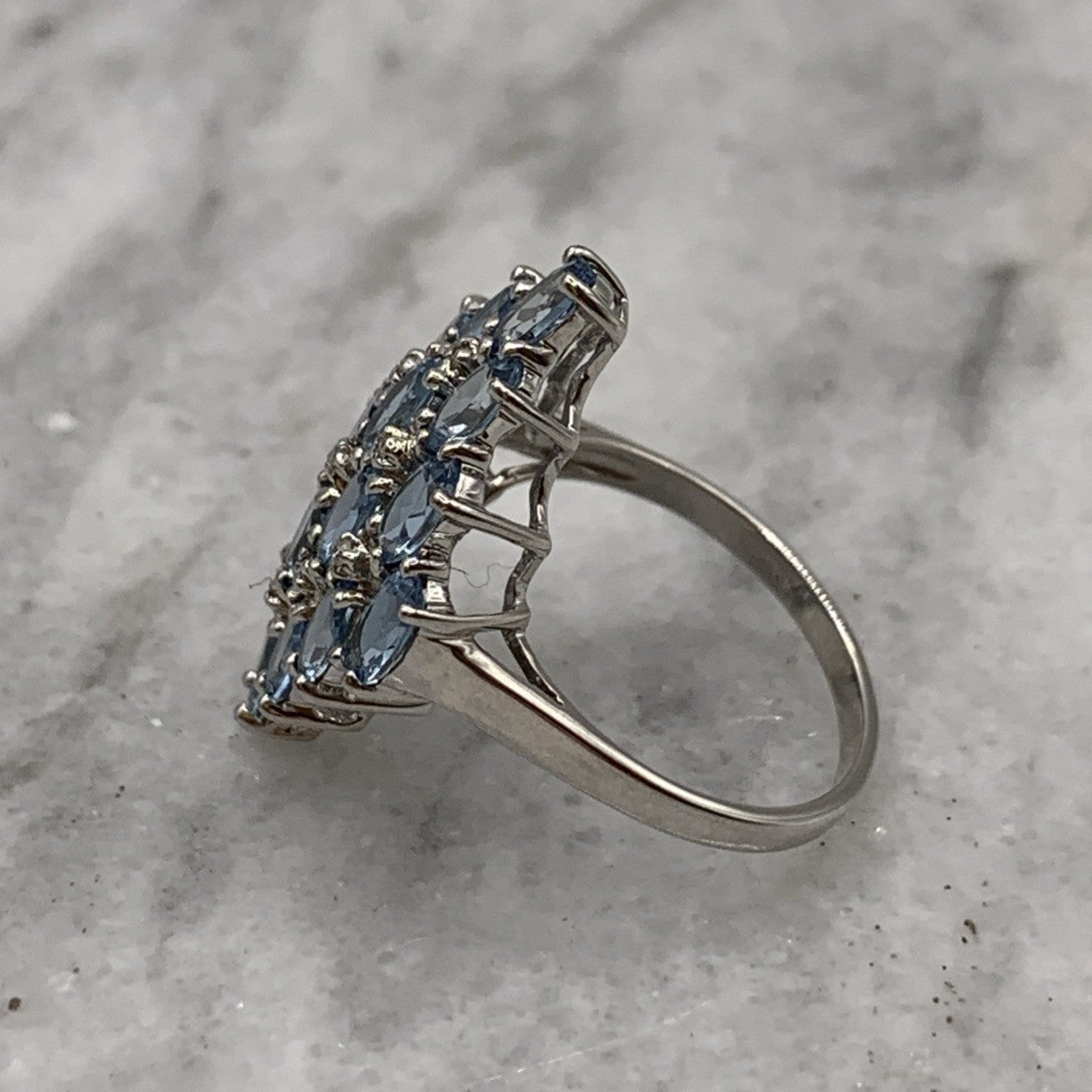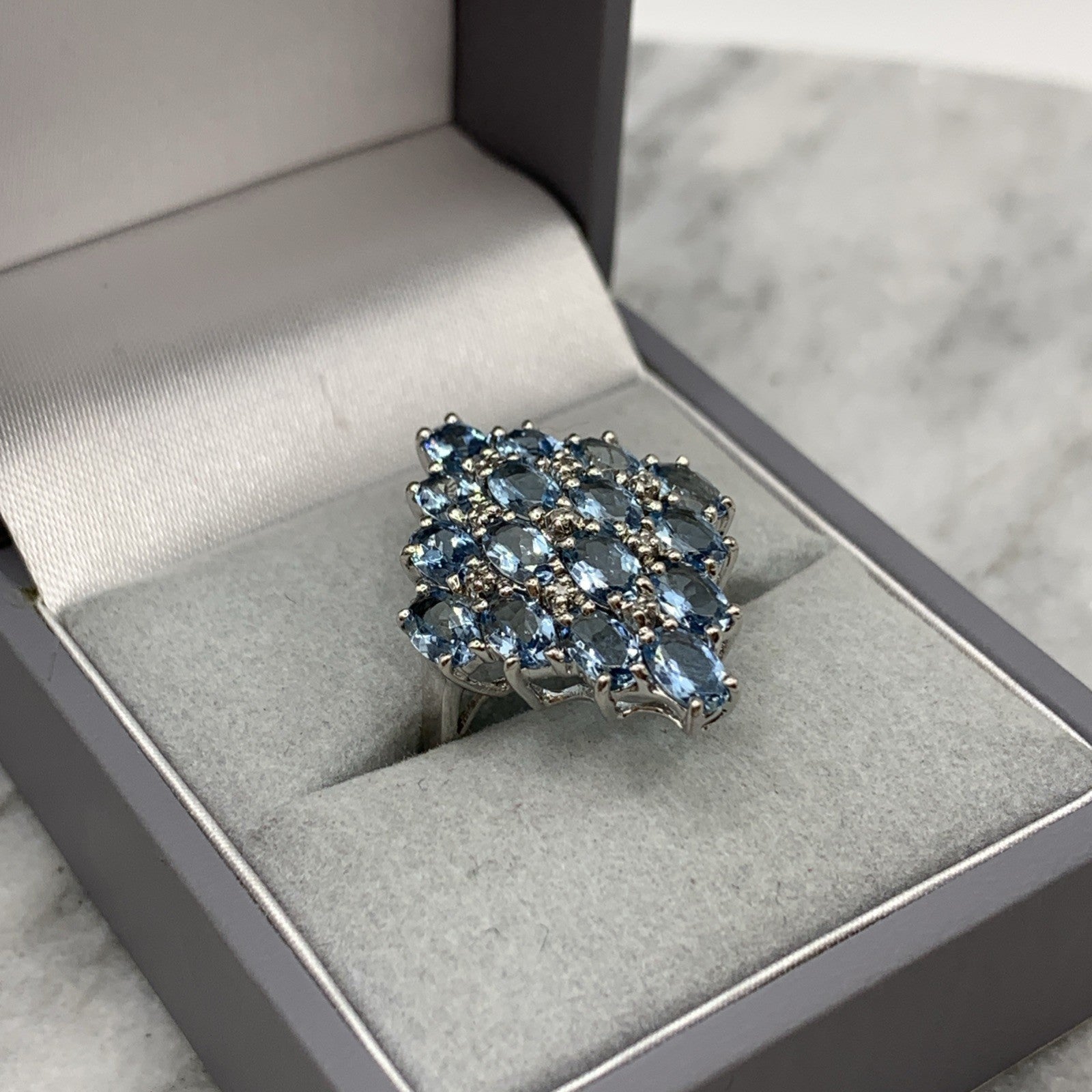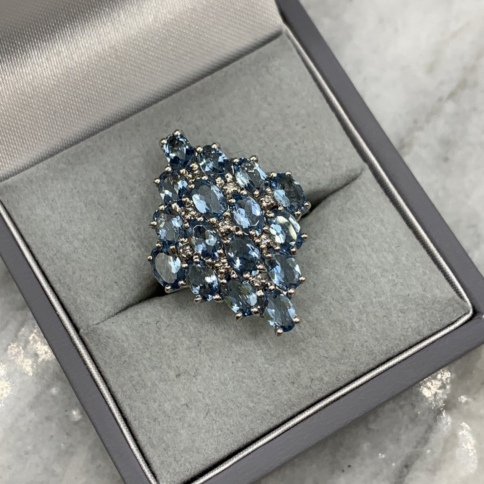 9 ct Gold Aquamarine Diamond Ring Cluster Cocktail 375 White Gold - Size N